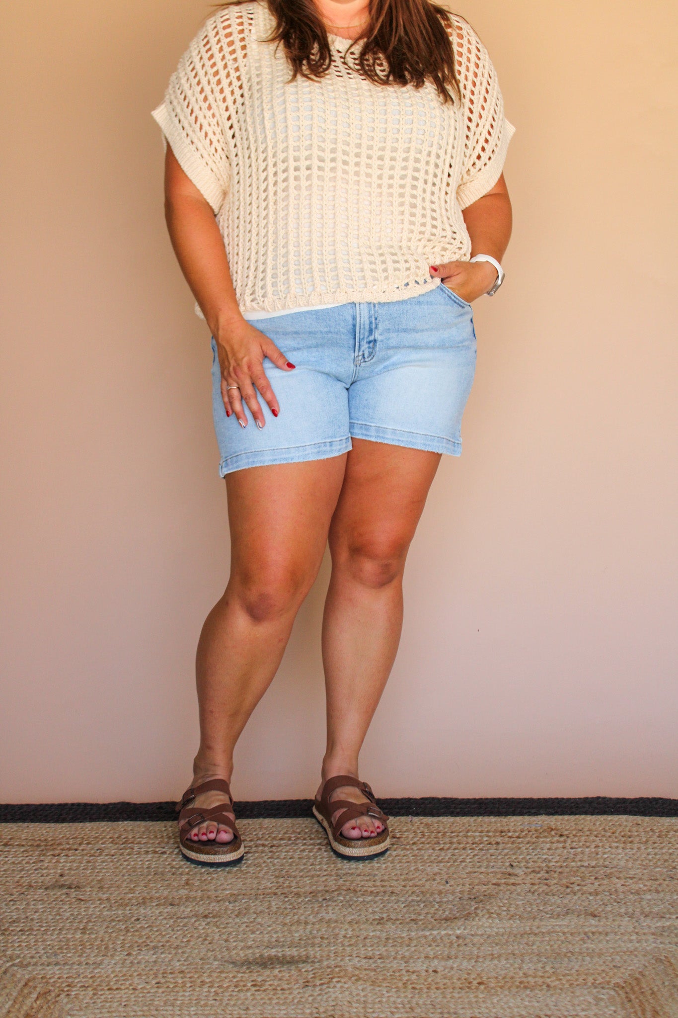 Dive into summer with KANDACE, our breezy crochet knit top! With playful open weave and carefree dolman sleeves, this top brings the fun to fashion. Ribbed edges add a touch of structure to its boxy, relaxed fit. Perfect for beach days or night outs—just layer over your favorite tank and watch heads turn!