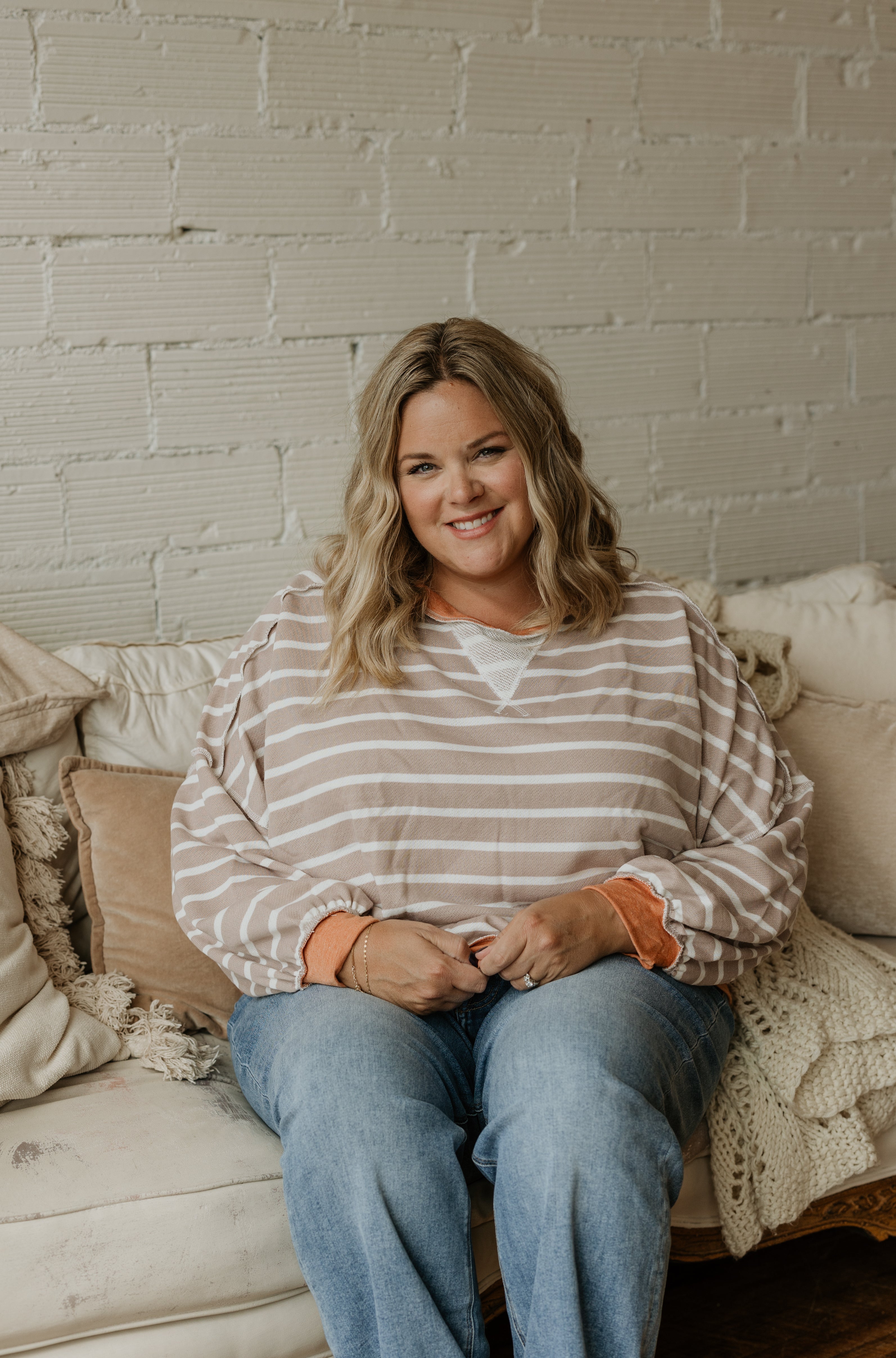 KAYSHA REG/CURVY DROP SHOULDER STRIPED SWEATSHIRT