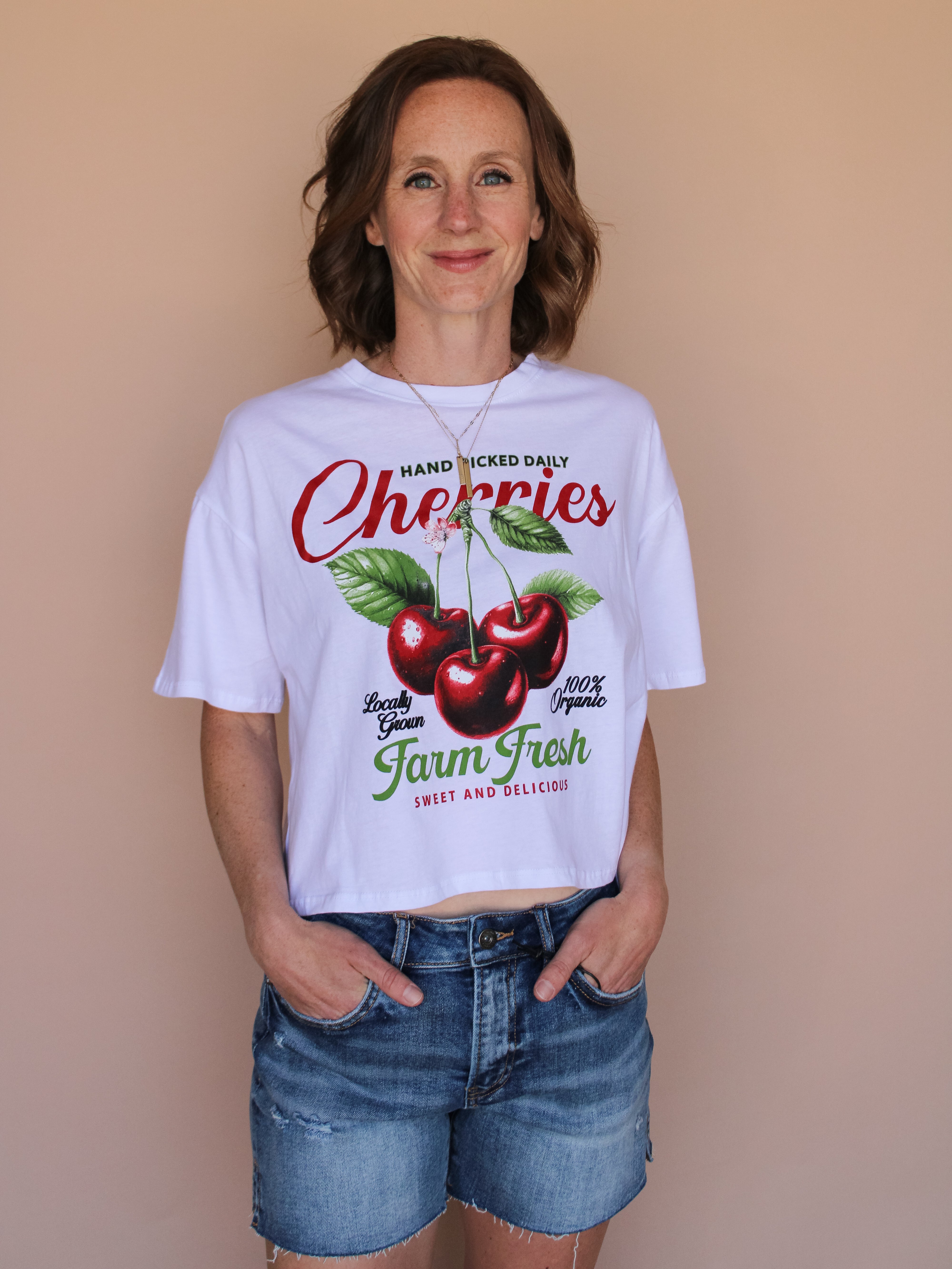 FARM FRESH CHERRIES GRAPHIC CROP TOP
