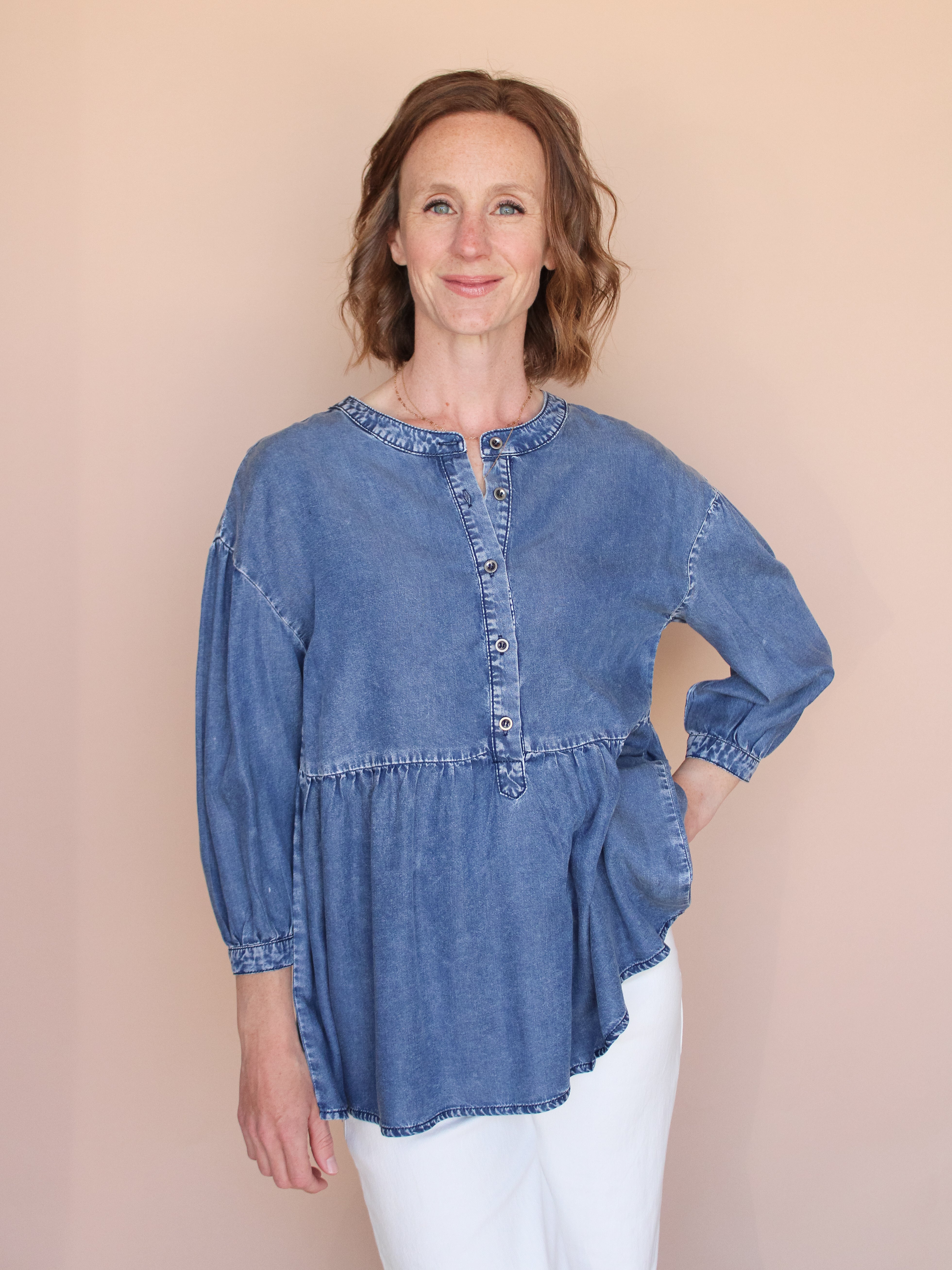 DANIELLE STRIPED CHAMBRAY BUTTON UP