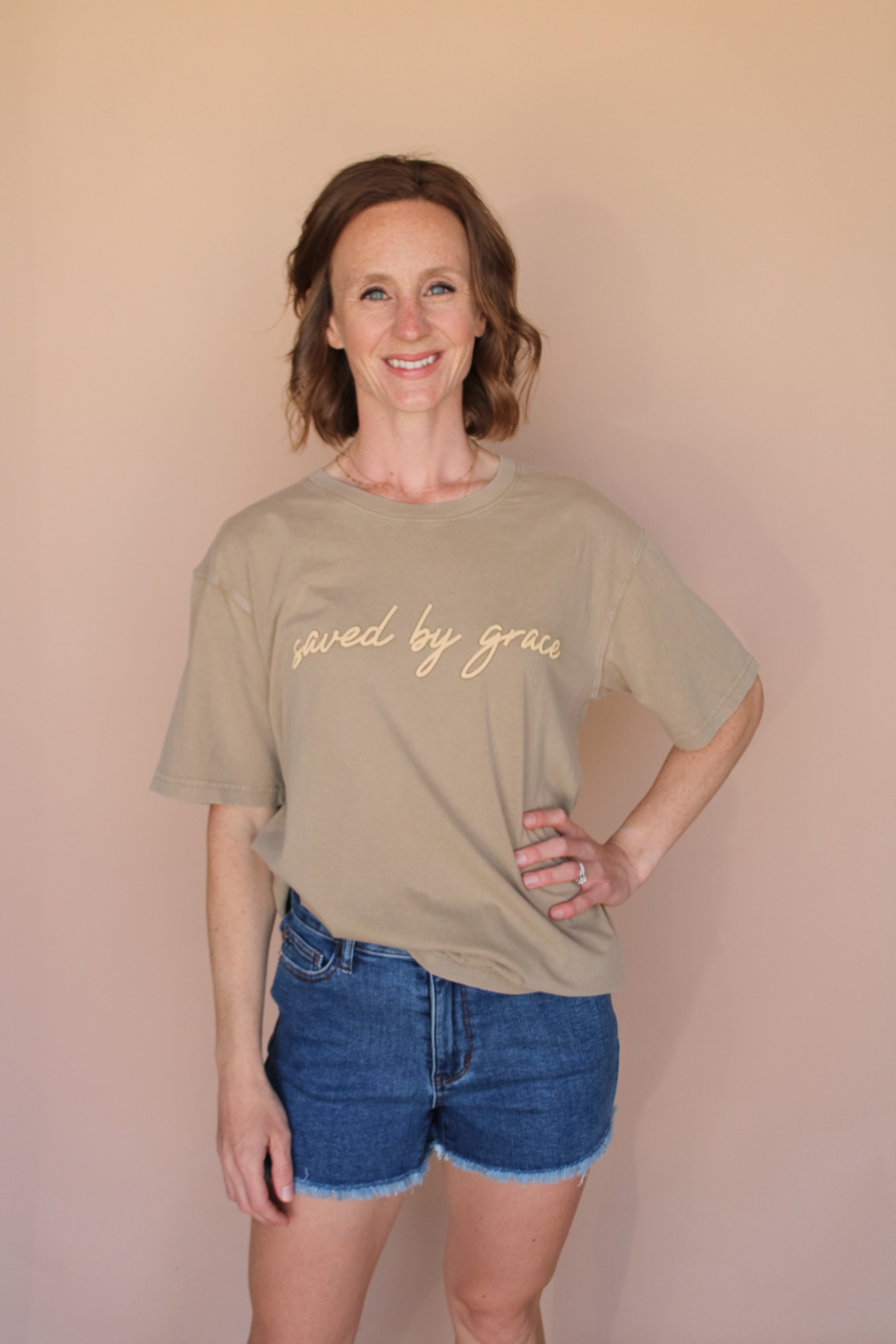 SAVED BY GRACE PUFF STITCHED GRAPHIC TEE