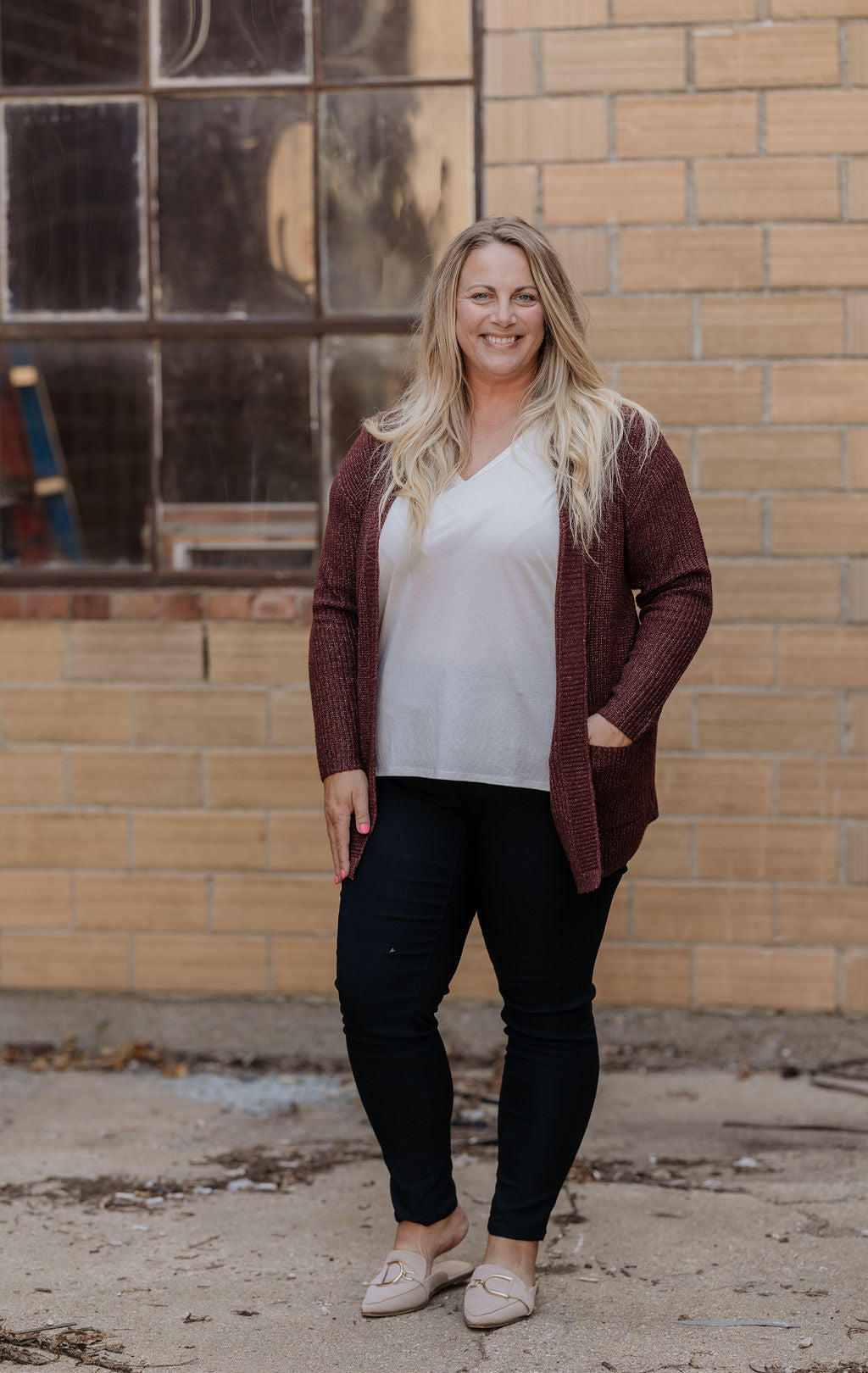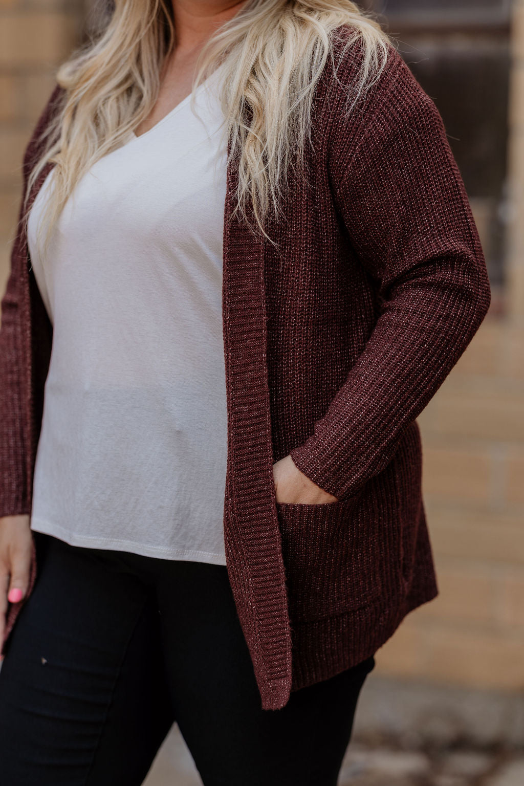 ESRA DARK BURGUNDY OPEN FRONT CARDIGAN