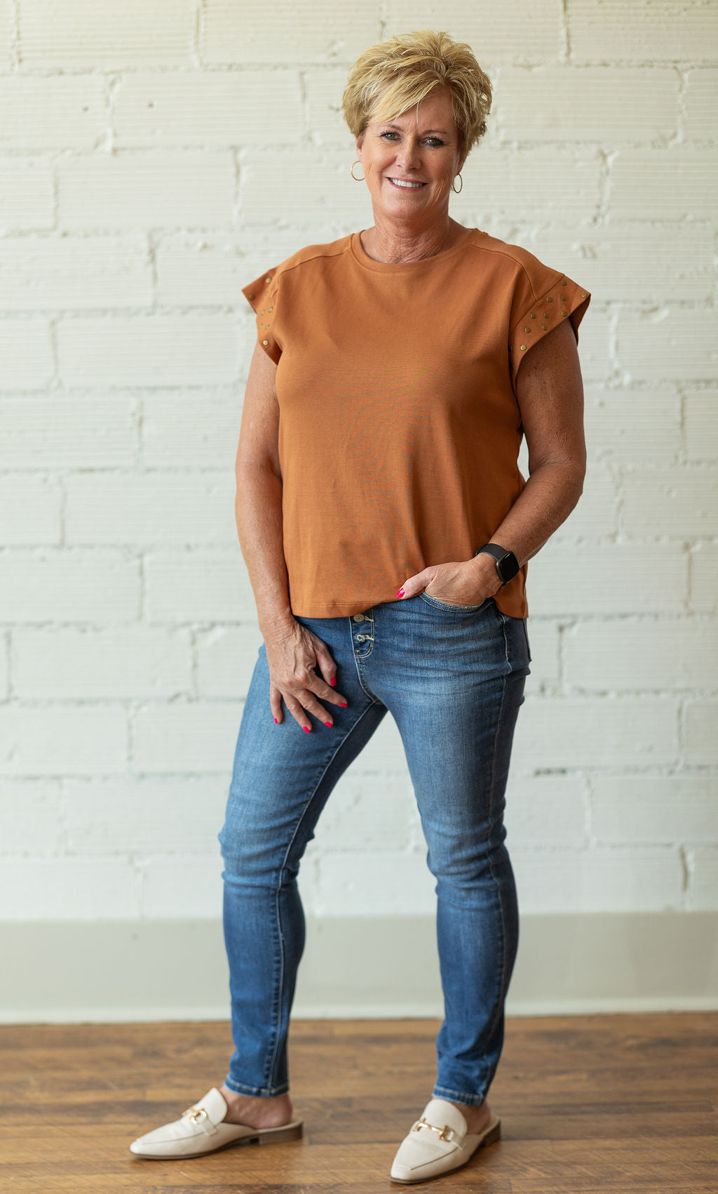 APRIL STUDDED SLEEVE TOP 3 COLOR OPTIONS