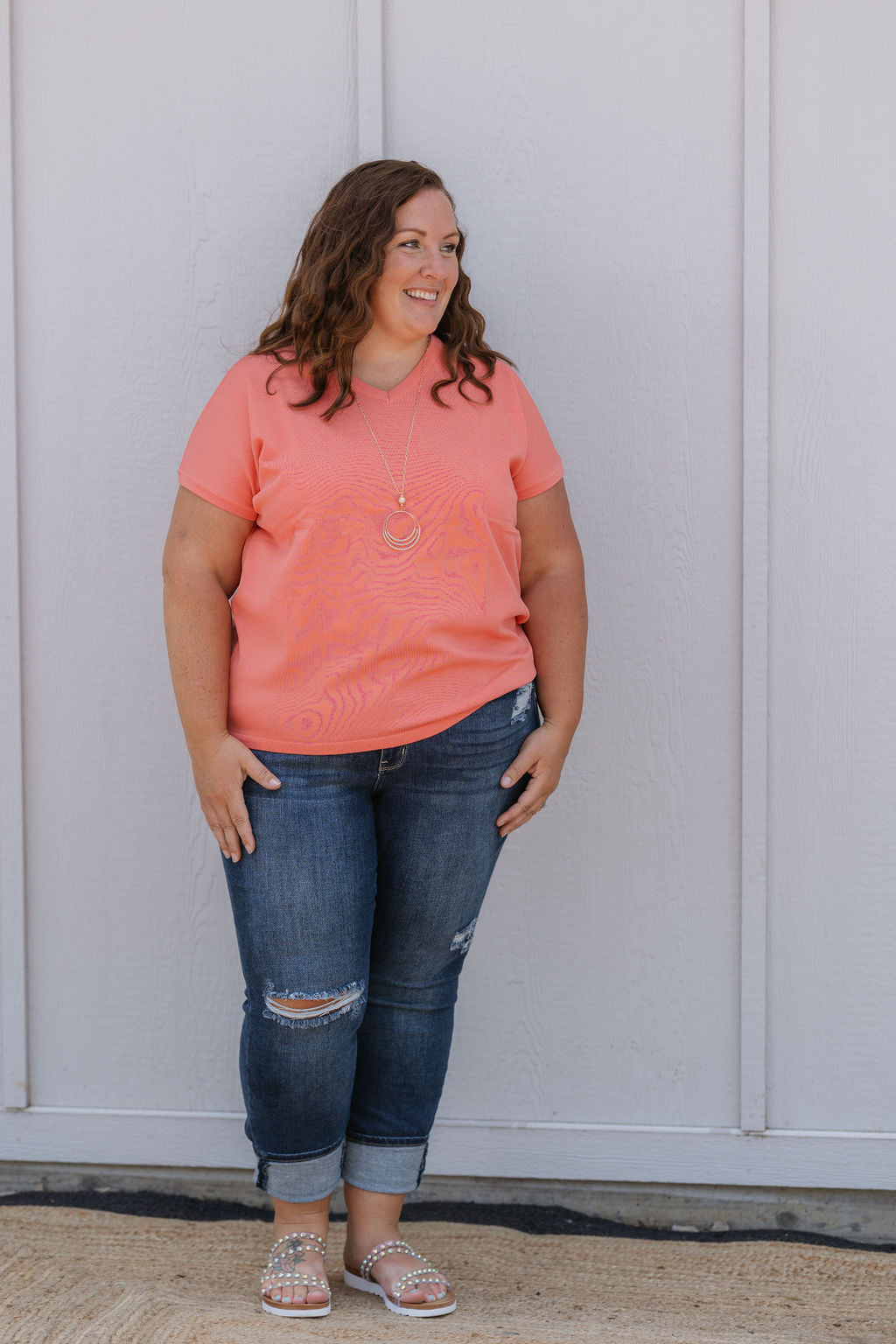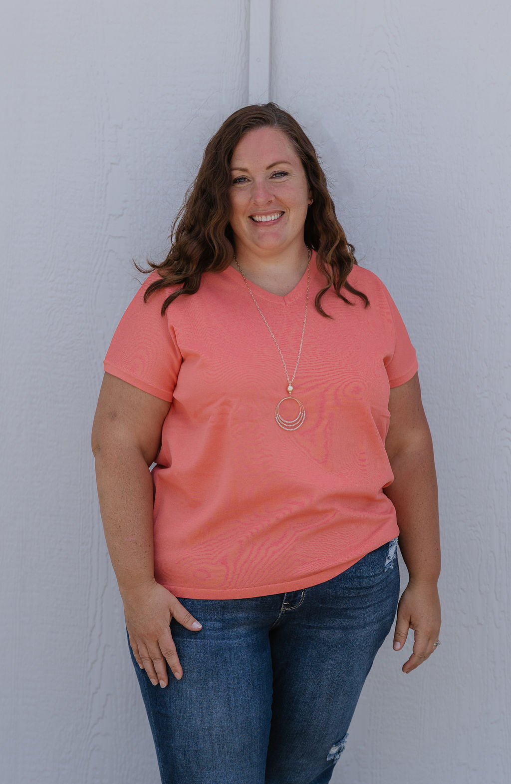 LEXI LIGHT PEACH KNIT VNECK TOP