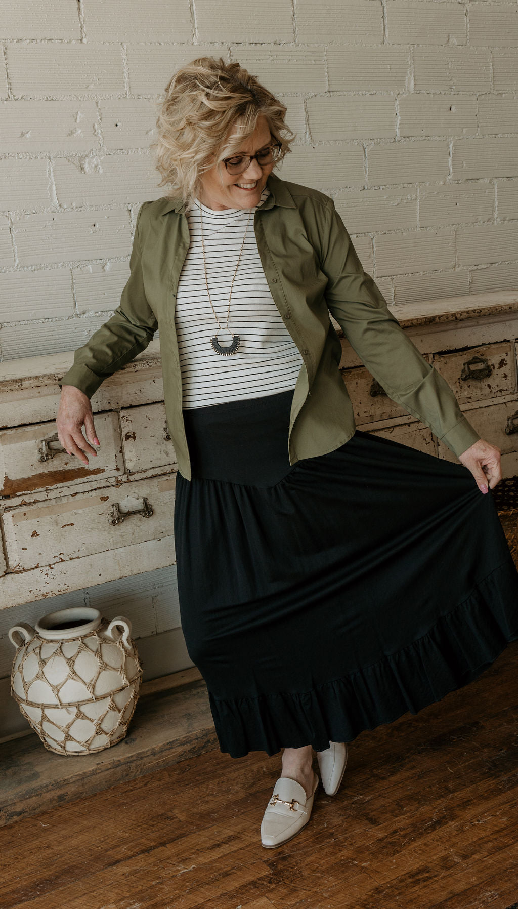 TAMIE TIERED SKIRT WITH RUFFLED END 2 COLOR OPTIONS