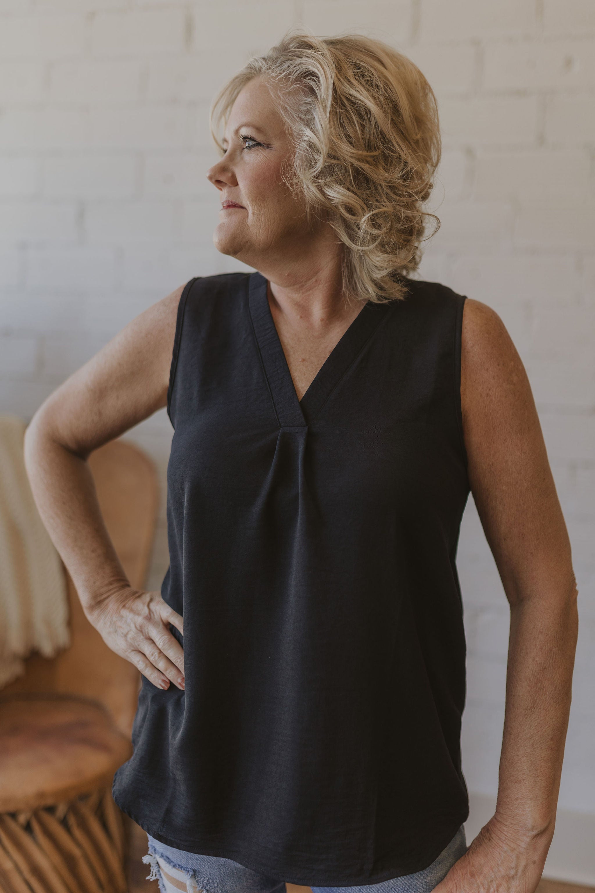 SLEEVELESS VNECK BLOUSY TANK