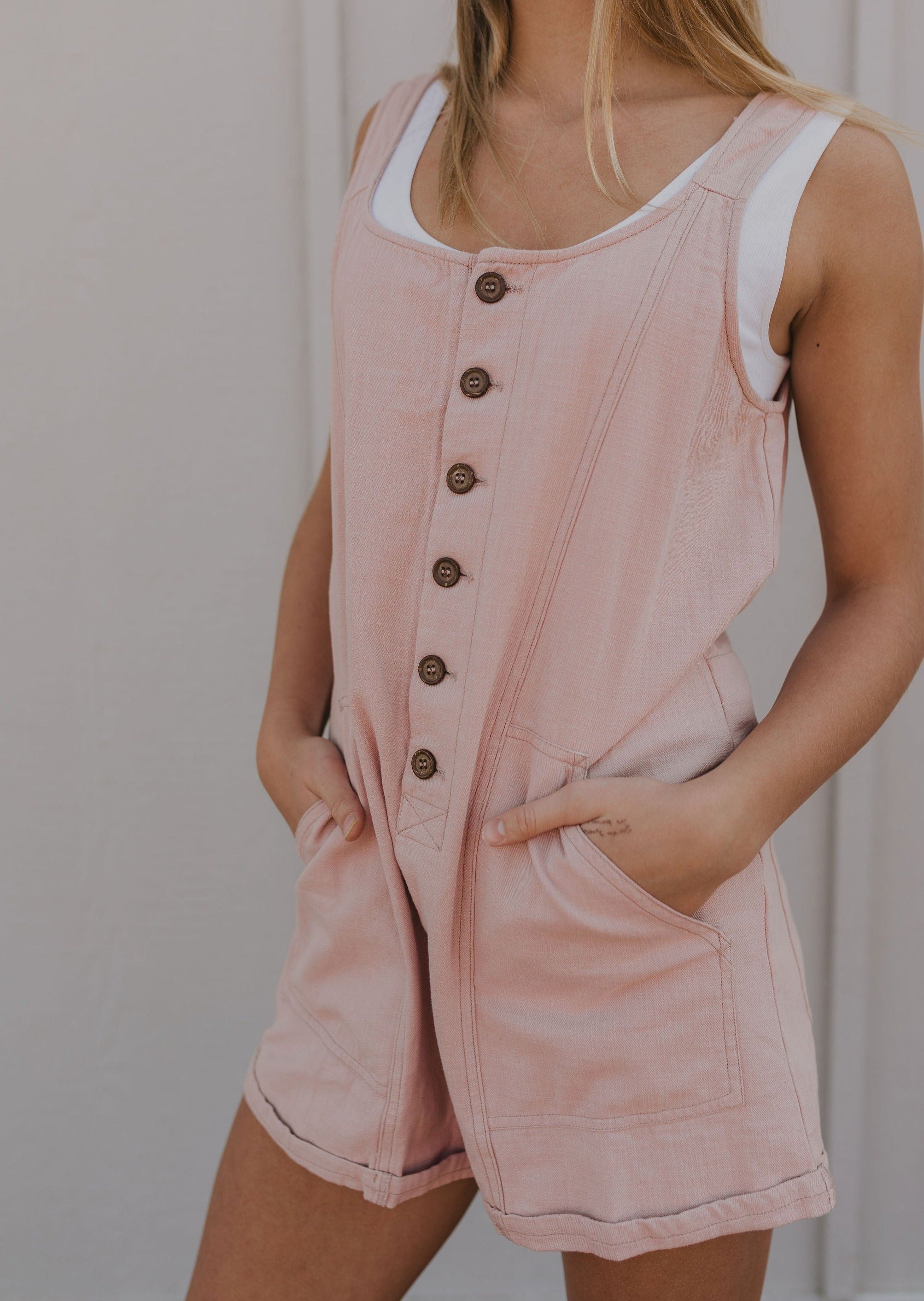 MAYA COTTON TWILL BUTTON FRONT ROMPER BY IVY & CO