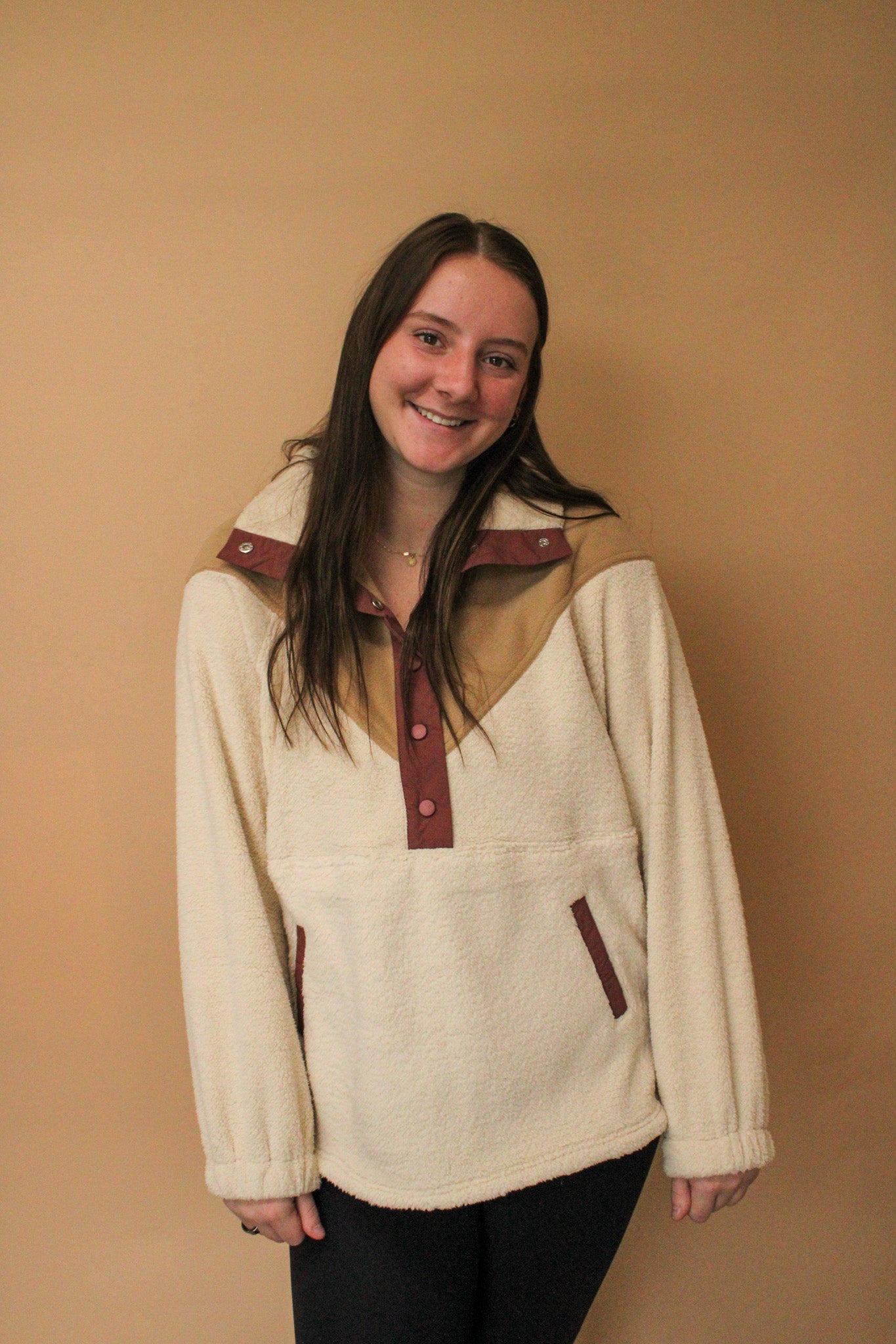GIA HALF BUTTON DOWN COLORBLOCK FLEECE TOP