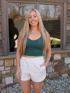 Introducing our ROWAN LONGLINE YOGA TOP. With butter soft fabric and padding, this cropped top will provide the ultimate comfort and support during your yoga practice. The V-neck adds a touch of style, making it perfect for both studio sessions and lounging. Namaste.