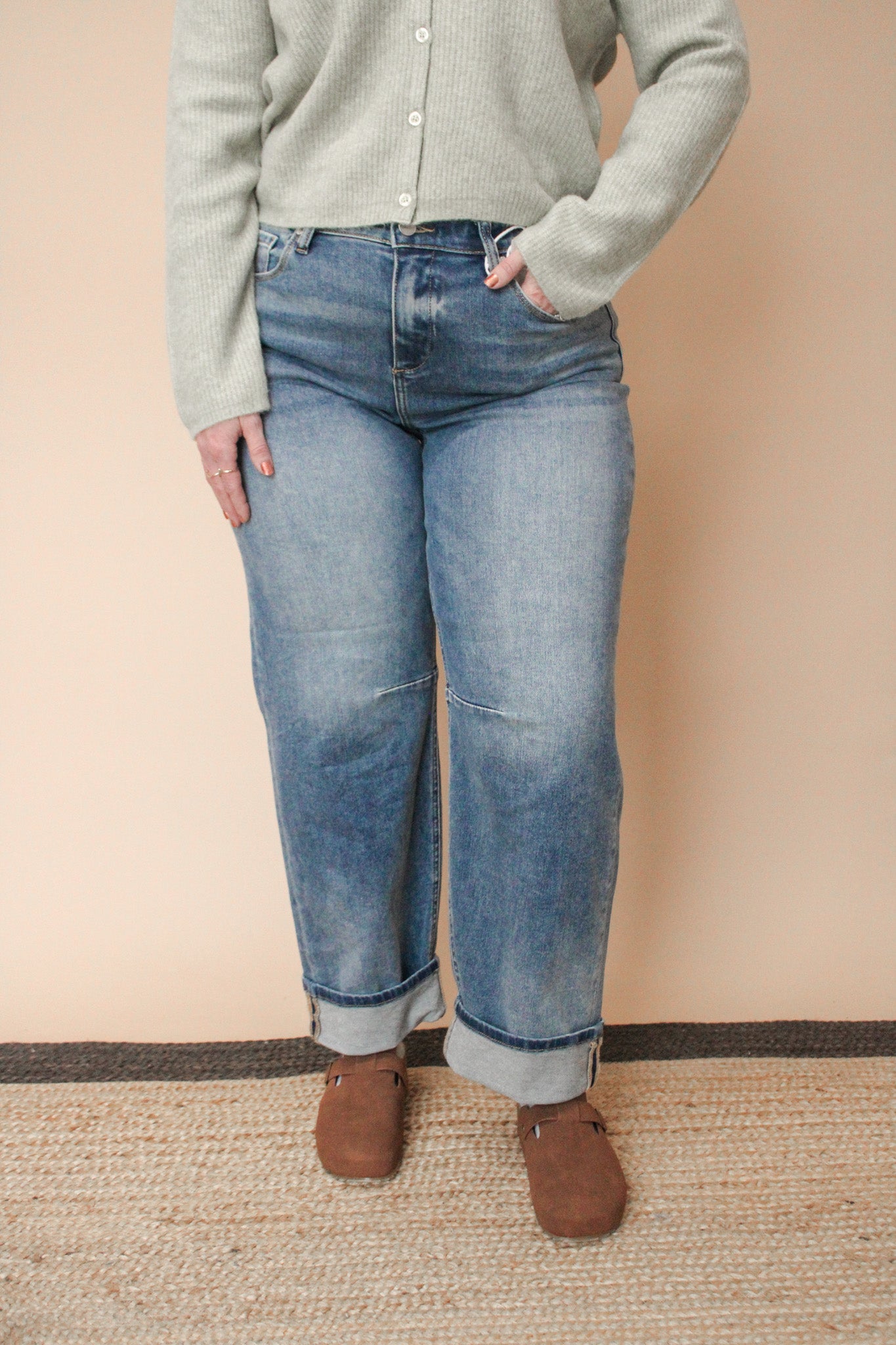 Rock that effortless vibe with these slouchy crop barrel jeans. Featuring a relaxed fit and cuffed hem that you can release for extra length, they're designed for maximum comfort and style flexibility. The 10 1/4" rise sits perfectly for a modern silhouette, while the cropped barrel cut adds an on-trend edge. Whether you keep the cuff or let it down, these jeans adapt to your mood and your wardrobe.