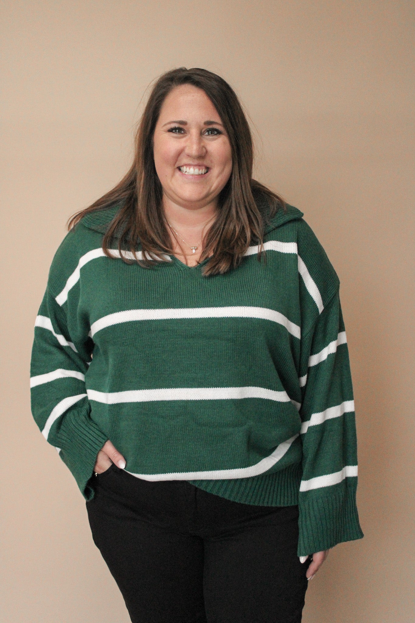 PAYLYN REG/CURVY COLLAR NOTCHED LOOSE FIT SWEATER