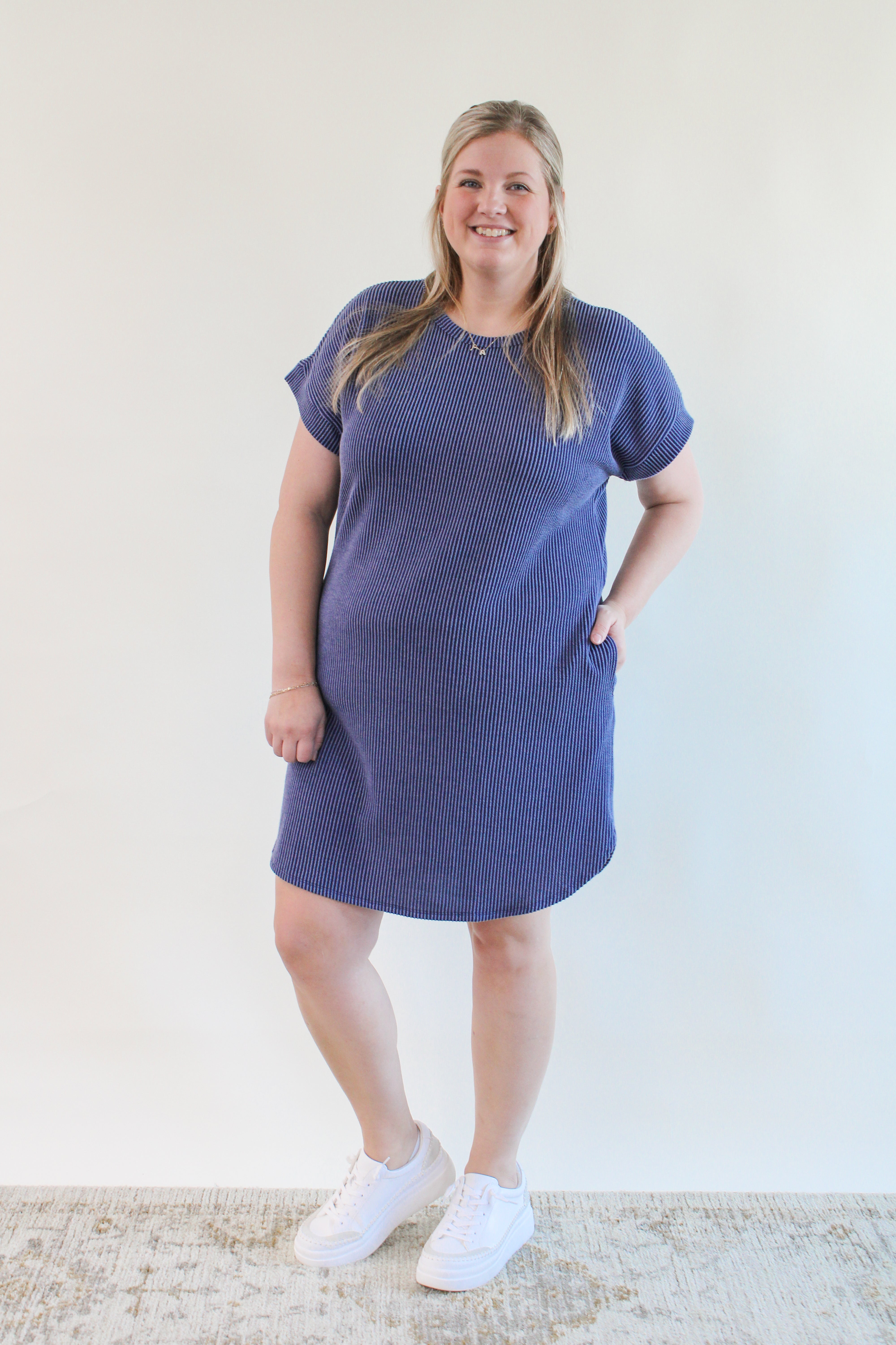 Get ready to rock this versatile dress made from 95% polyester and 5% spandex for ultimate comfort. The ribbed texture adds a touch of urban style, while the side pocket and round hem detail make it practical and trendy. Perfect for any occasion, this plus size dress will be your new go-to with its short sleeves and round neck.