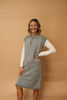 CAPRICE STRIPED KNIT MIDI SWEATER DRESS