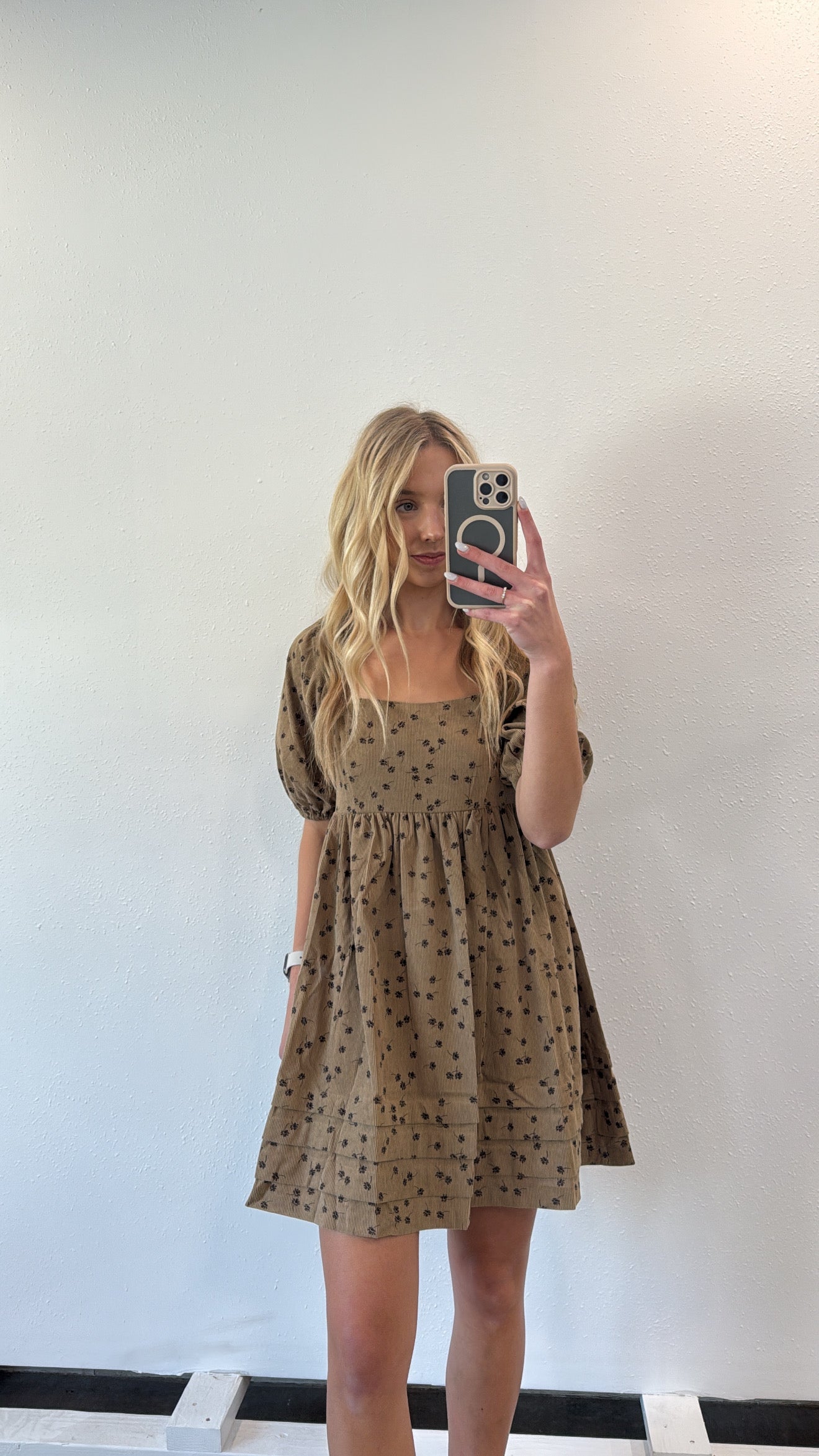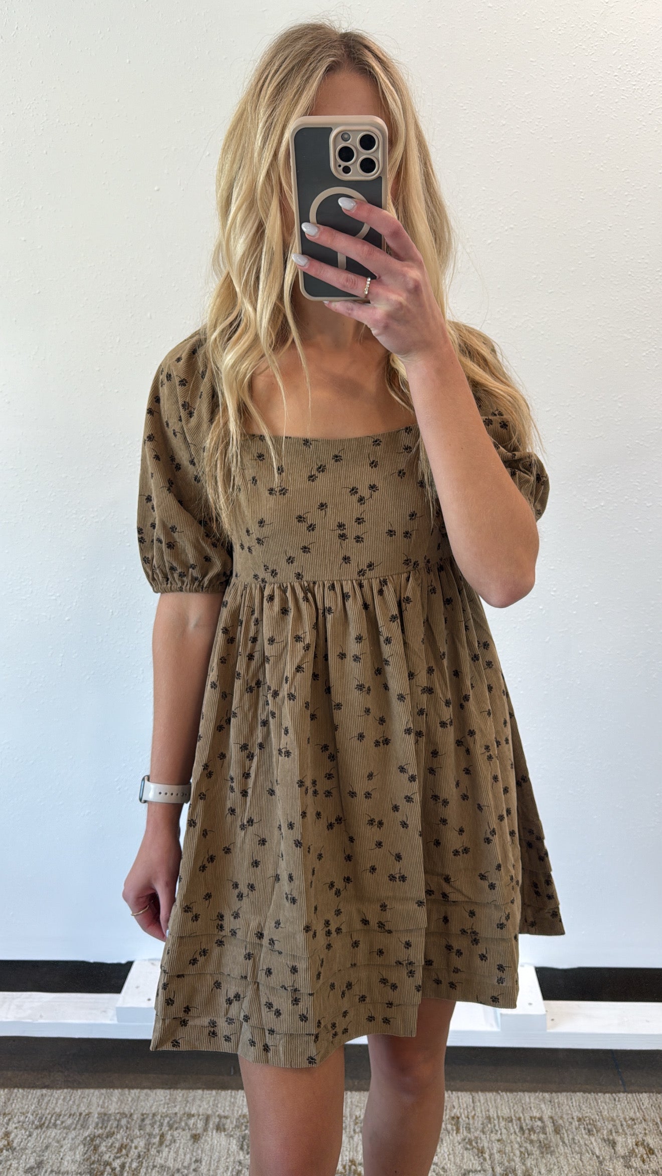 PEYTON FLORAL CORDUROY BABYDOLL MINI DRESS