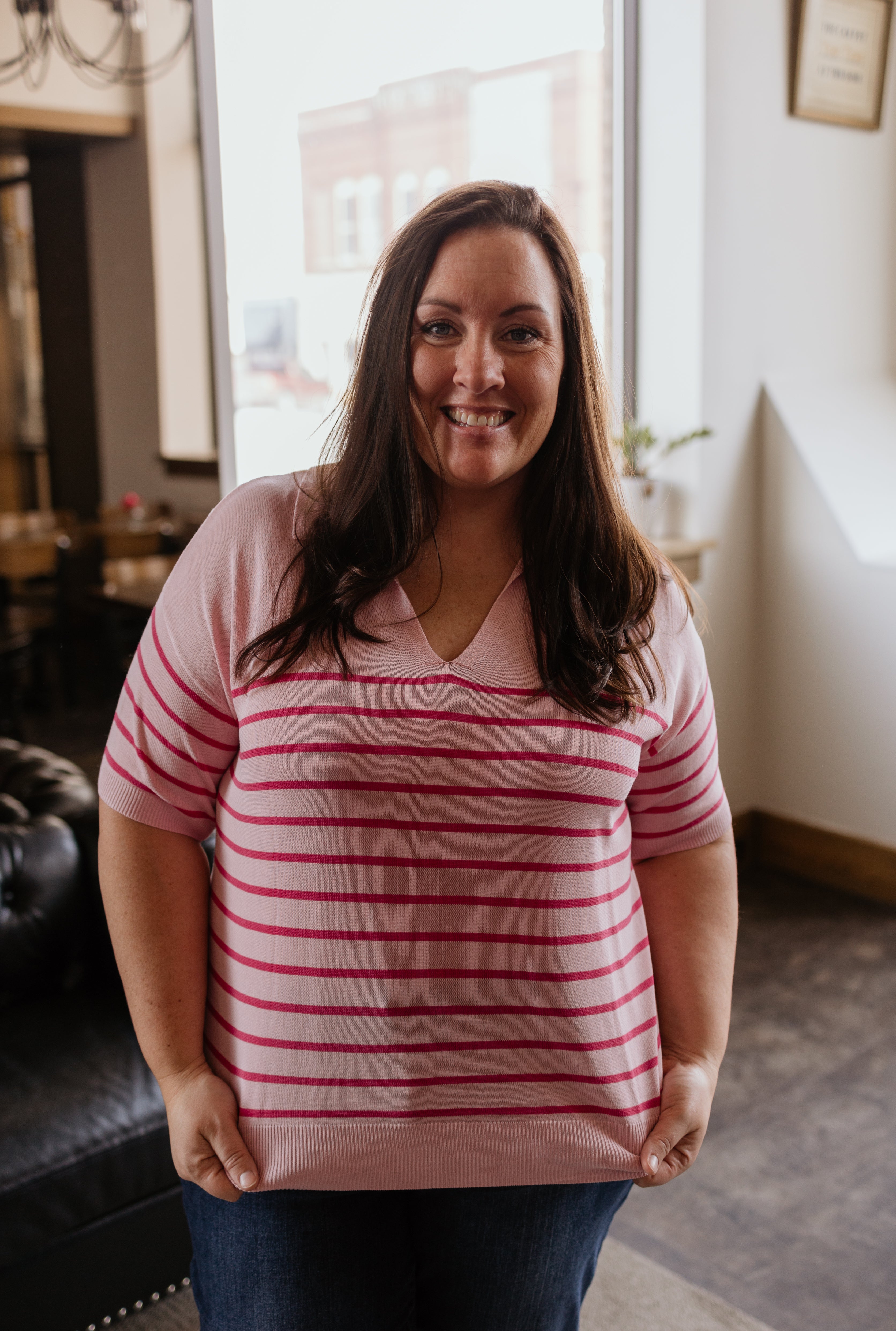 KIT CURVY STRIPED COLLAR KNIT TOP