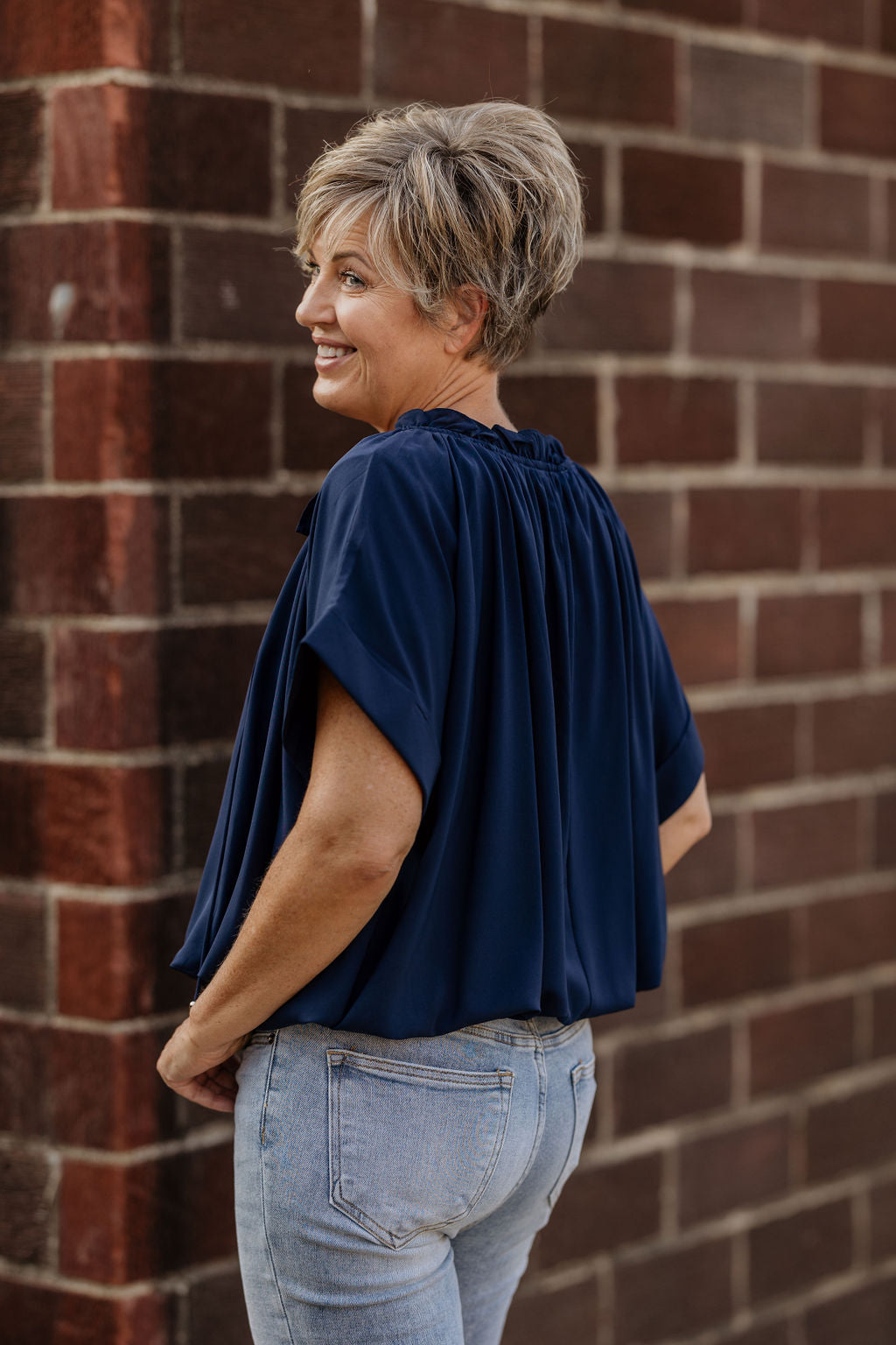 MARYN NAVY BLOUSE WITH TIE FRONT DETAIL