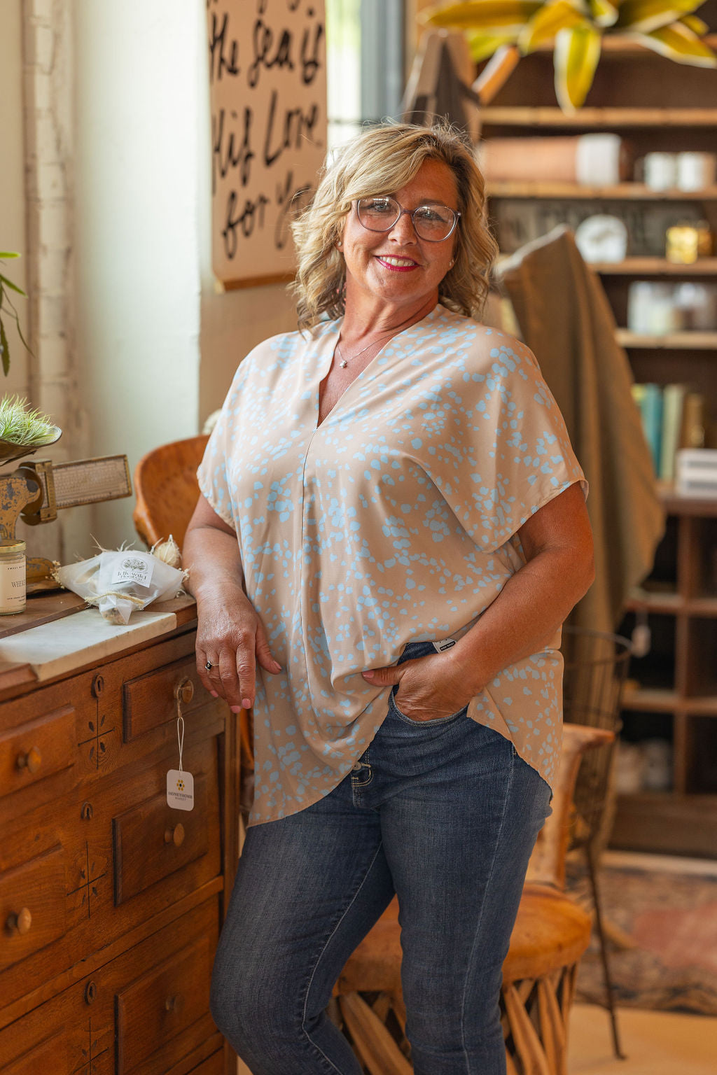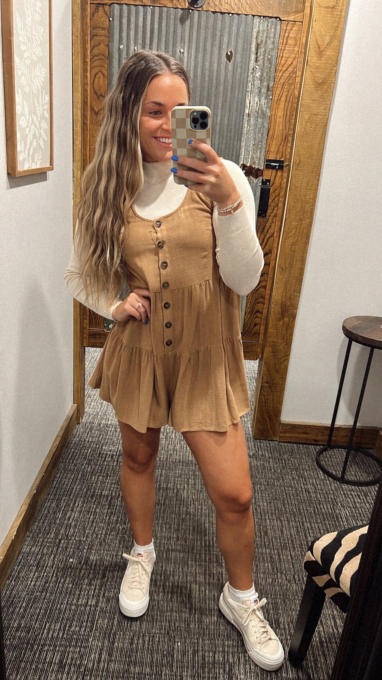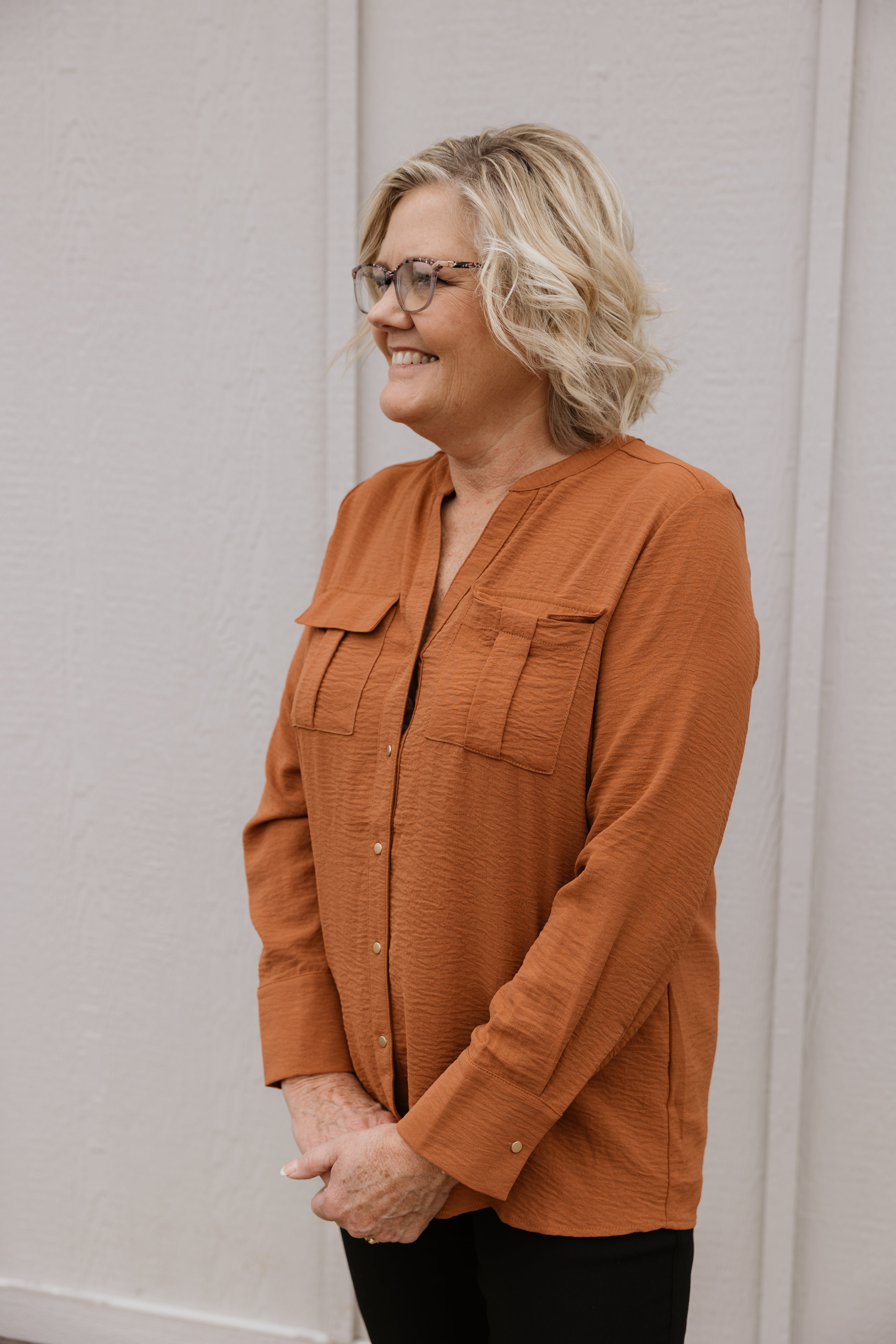 CAITLYN BUTTON DOWN CAMEL BLOUSE