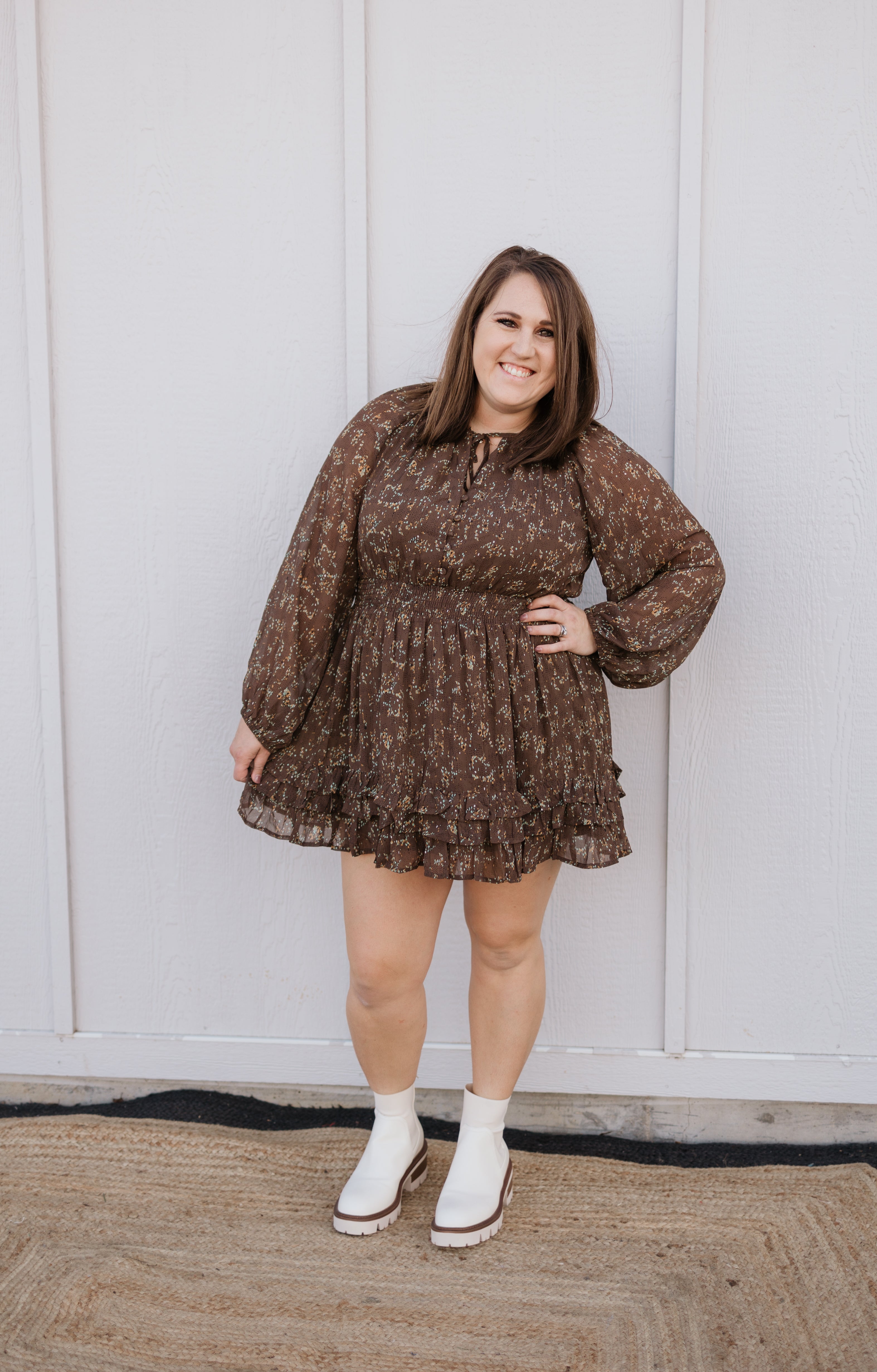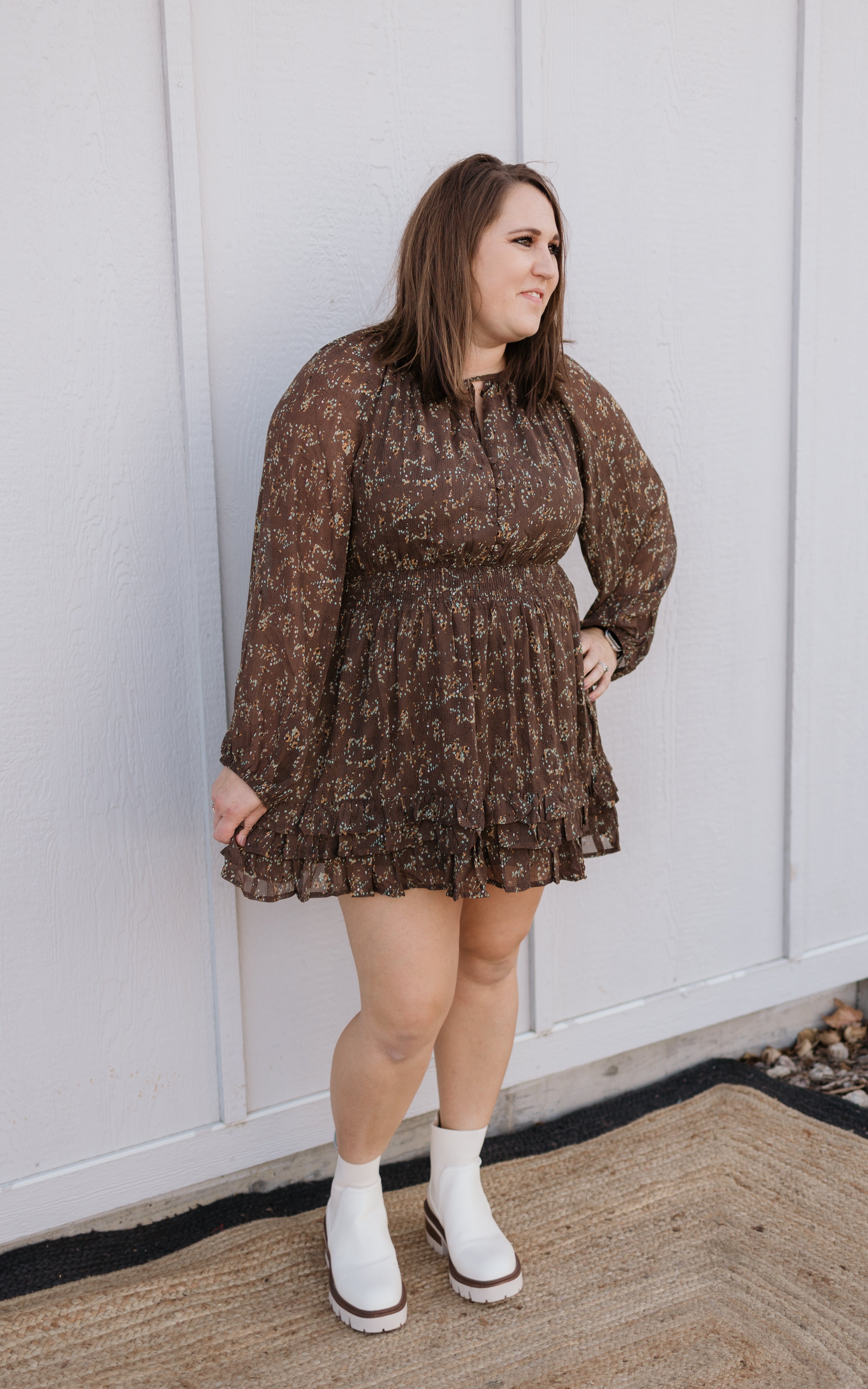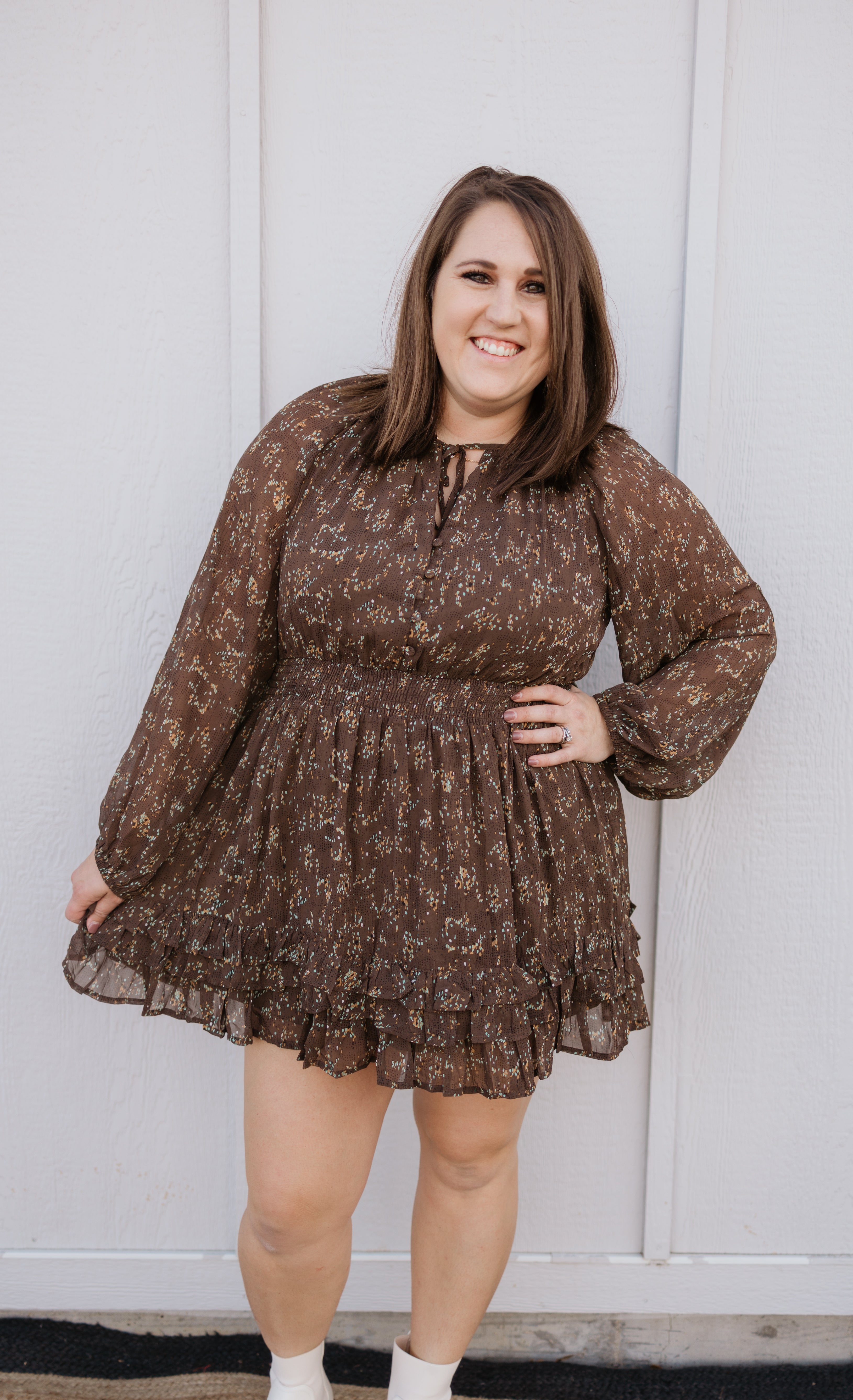 KASEY BROWN SHEER SLEEVE SHORT DRESS