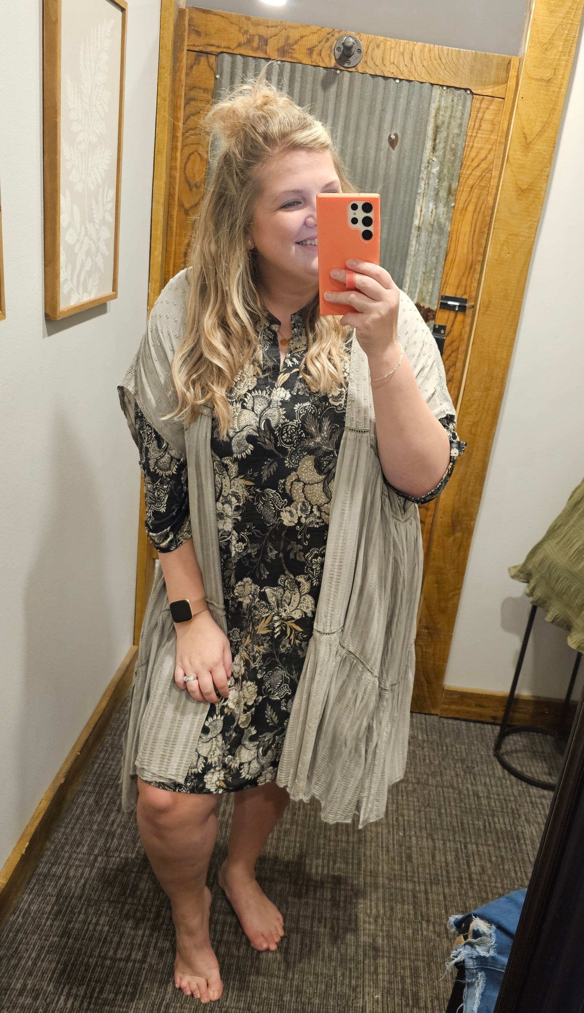MELANY CURVY ASH GREY SHORT SLEEVE KIMONO