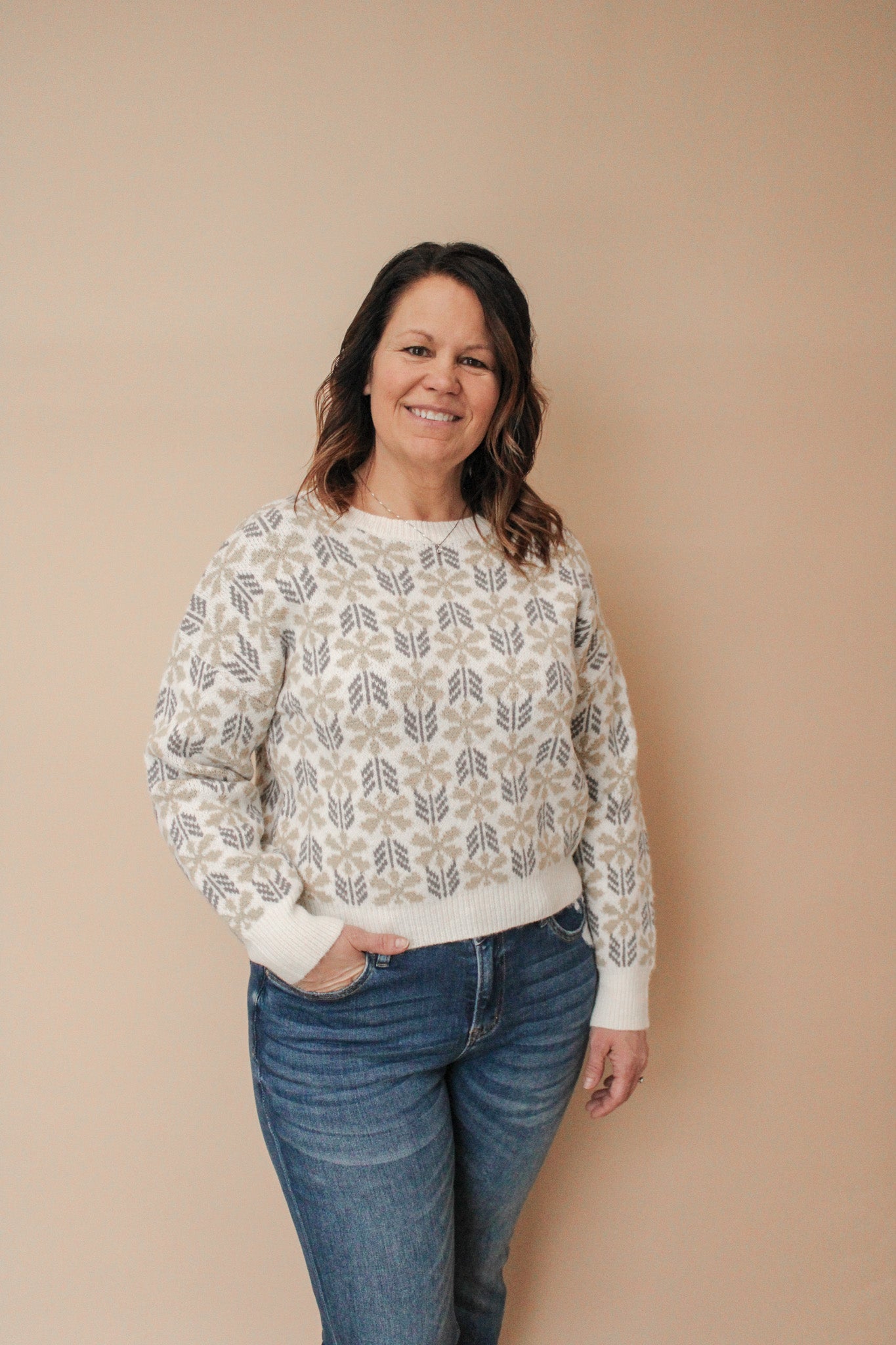 Elevate your everyday style with the Deedrick Floral Pattern Sweater—a cozy knit that blends geometric florals with timeless charm. Long sleeves keep you warm while the intricate pattern adds visual interest to any outfit. Perfect for layering or wearing solo, this sweater brings a playful pop of personality to your wardrobe. Soft, comfortable, and endlessly versatile, it's the piece you'll reach for again and again.