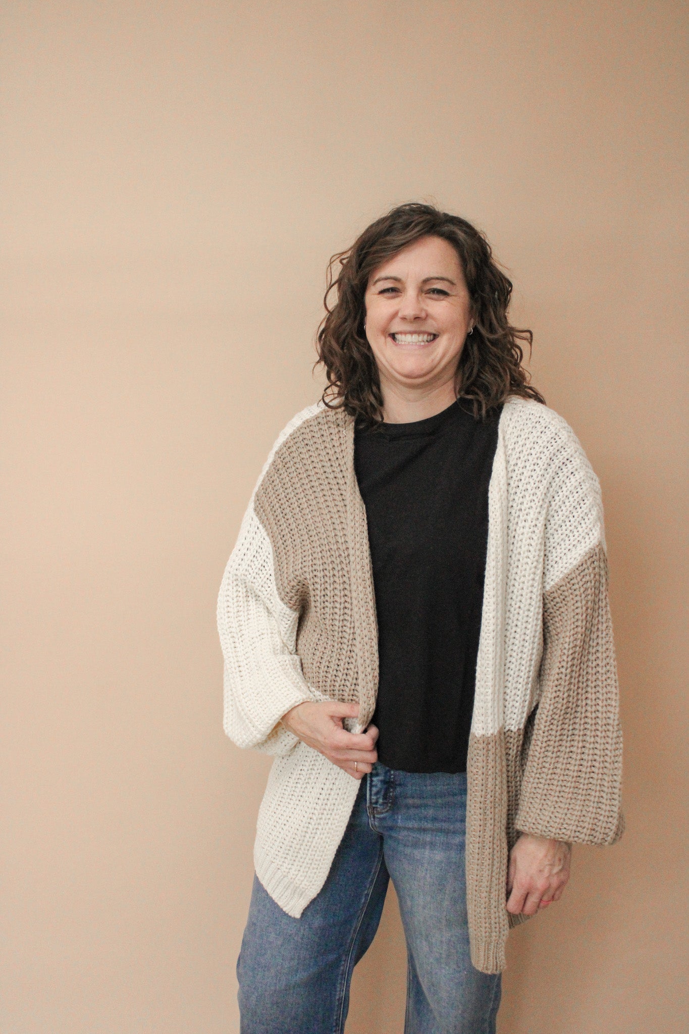 Layer up in style with the Lorens Colorblock Chunky Cardigan—your new go-to for effortless cool. This oversized long-sleeve stunner features bold, contrasting colorblocks that make a statement without trying too hard. The chunky knit keeps things cozy while the open front gives you endless styling options. Perfect for throwing over everything from tees to dresses, it's the kind of piece that instantly elevates your vibe. Playful, comfortable, and undeniably fierce.