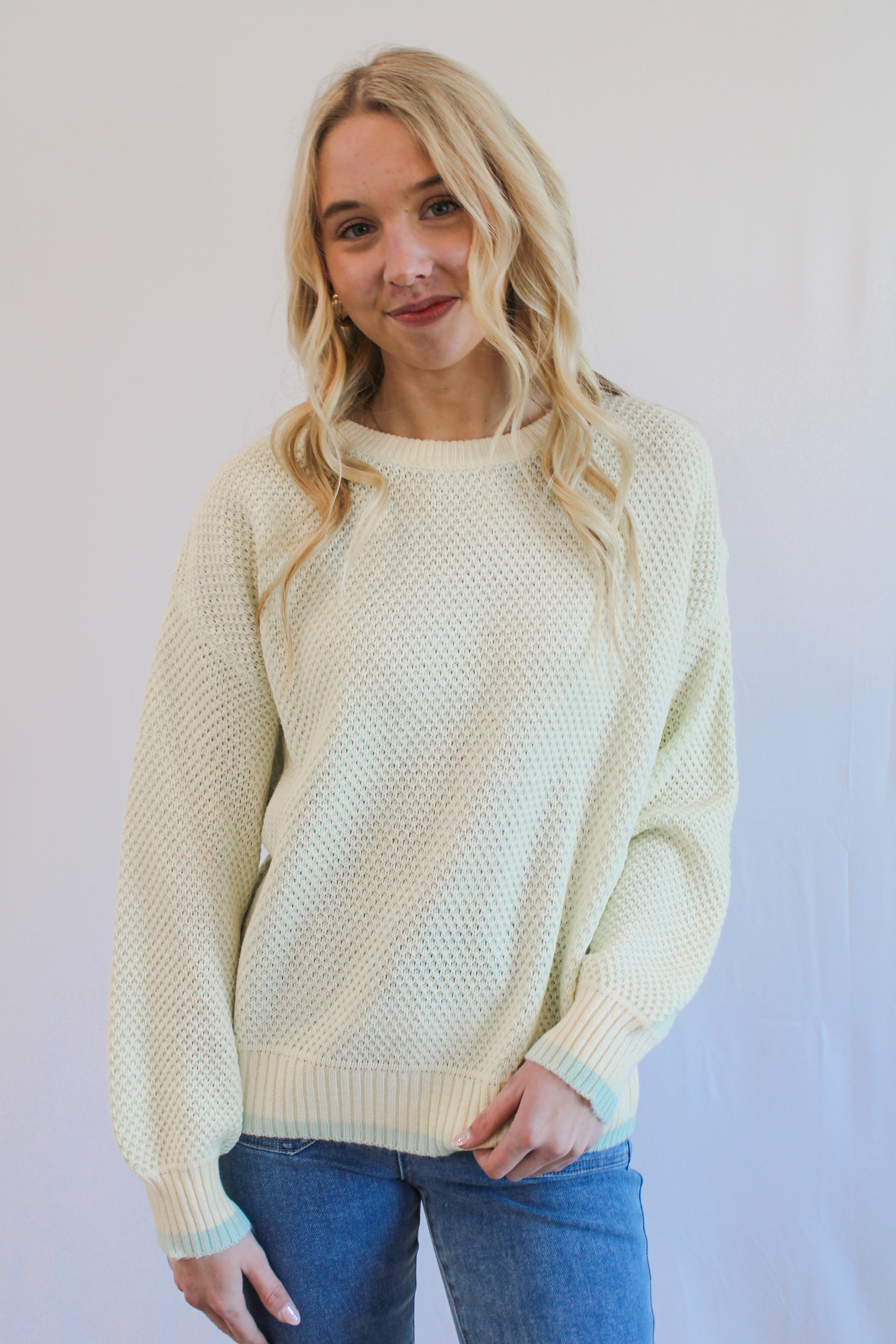 HARPER MINT & CREAM KNIT SWEATER