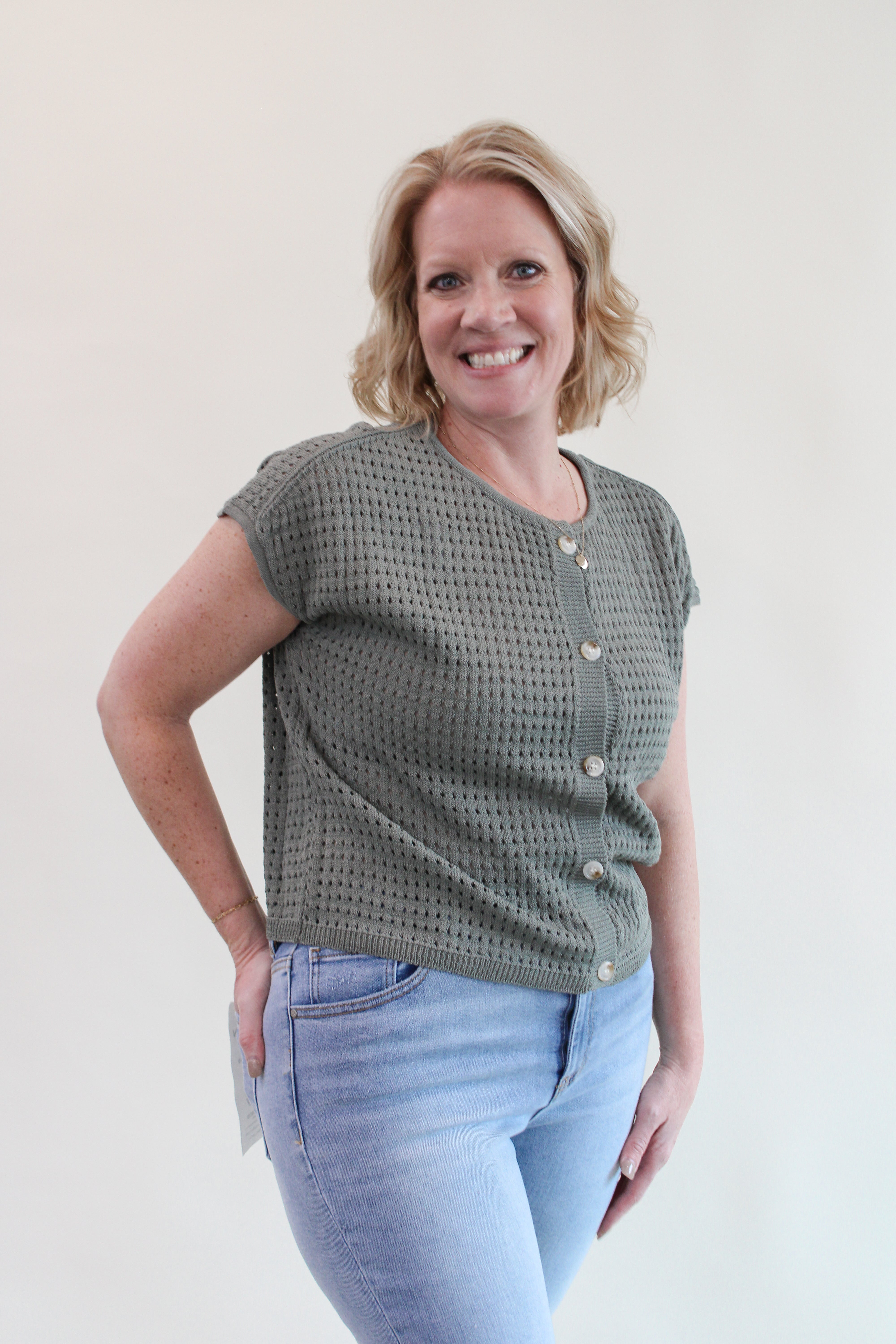 TIFF BUTTON-UP SWEATER TOP