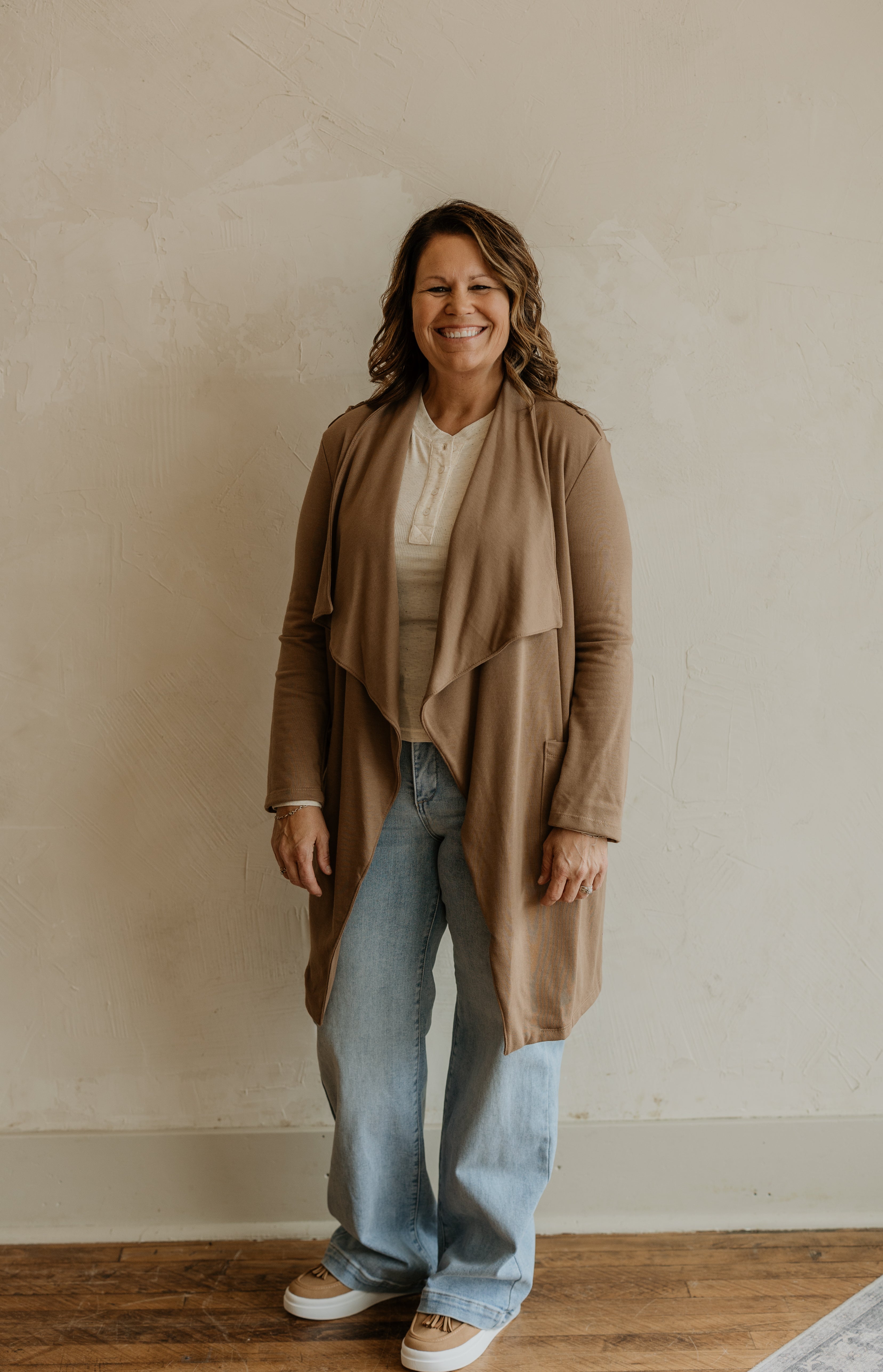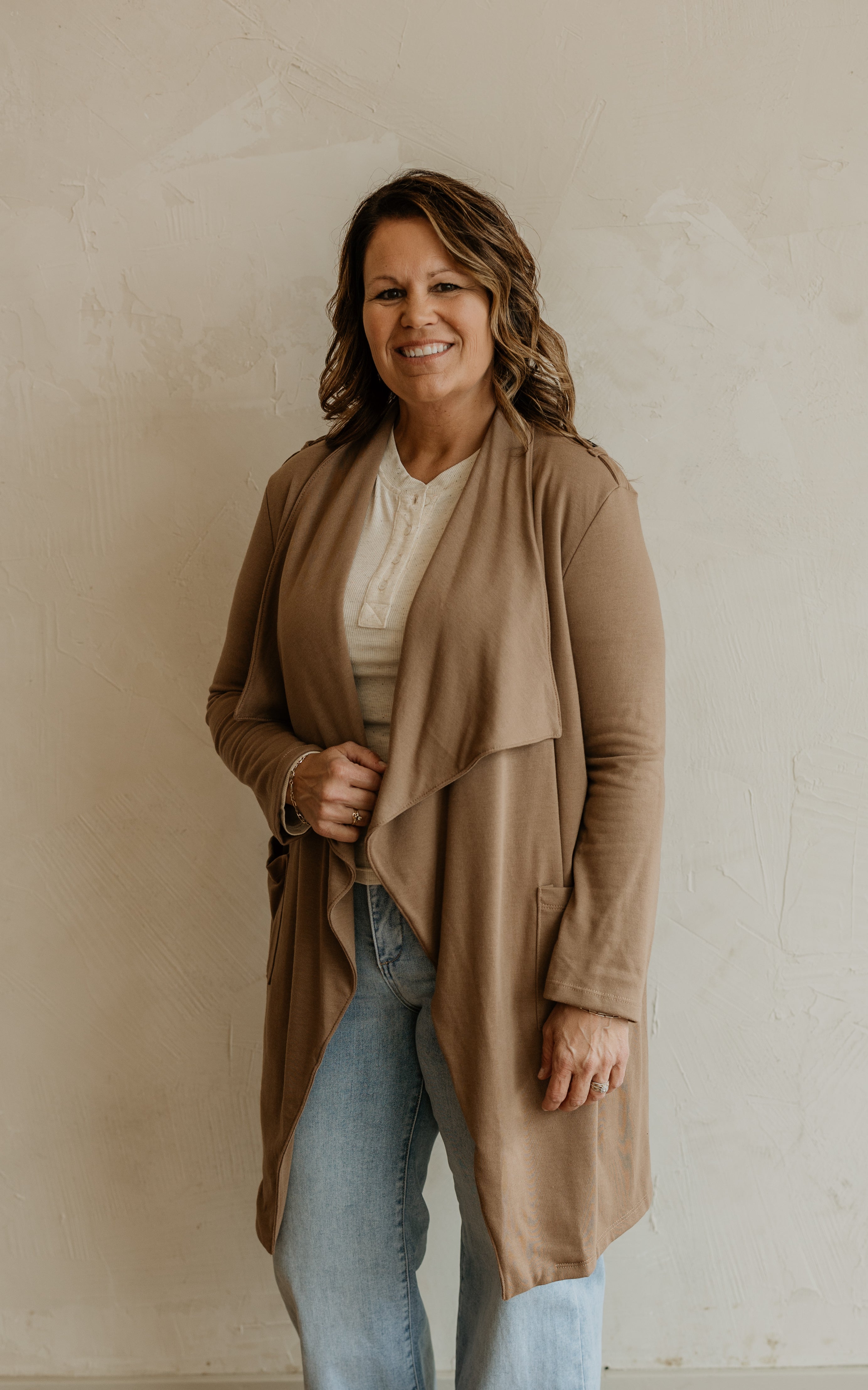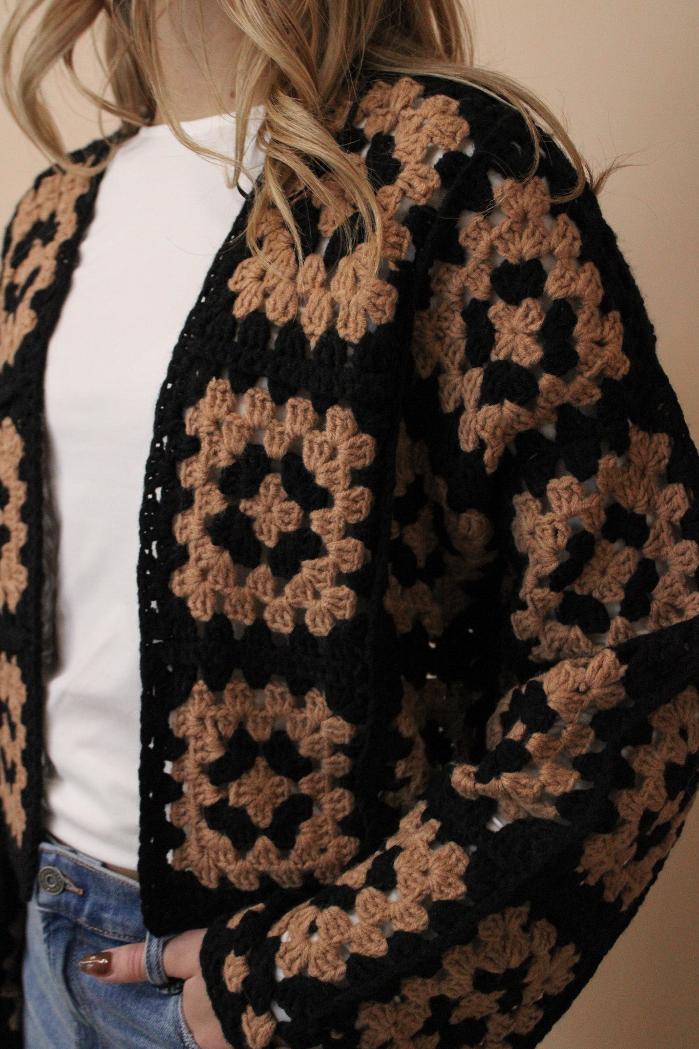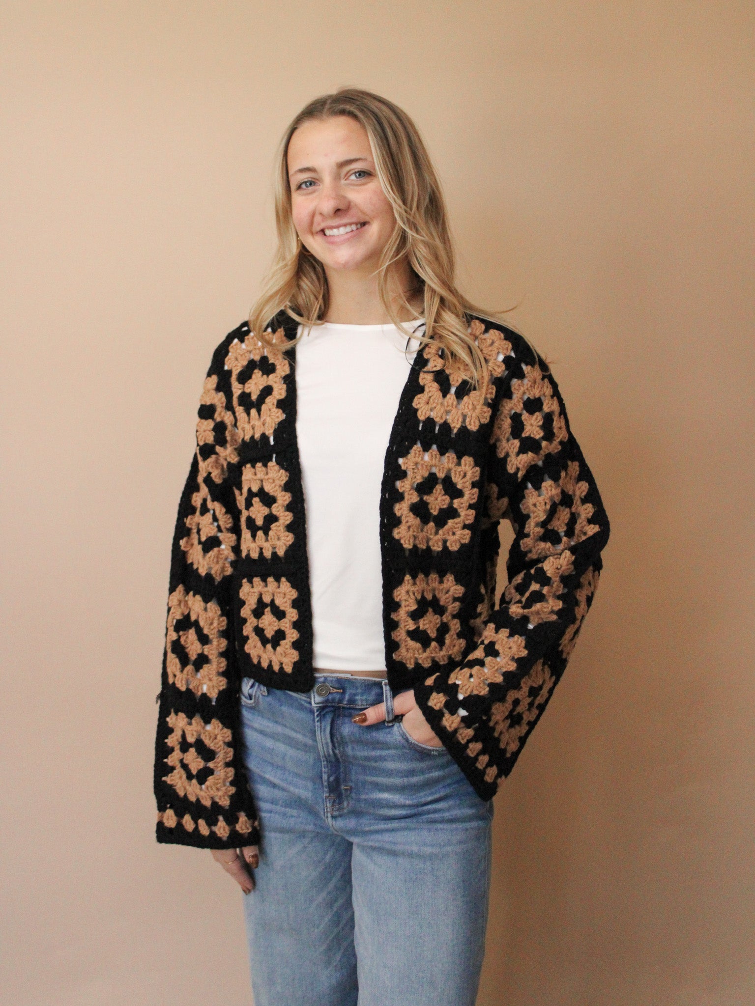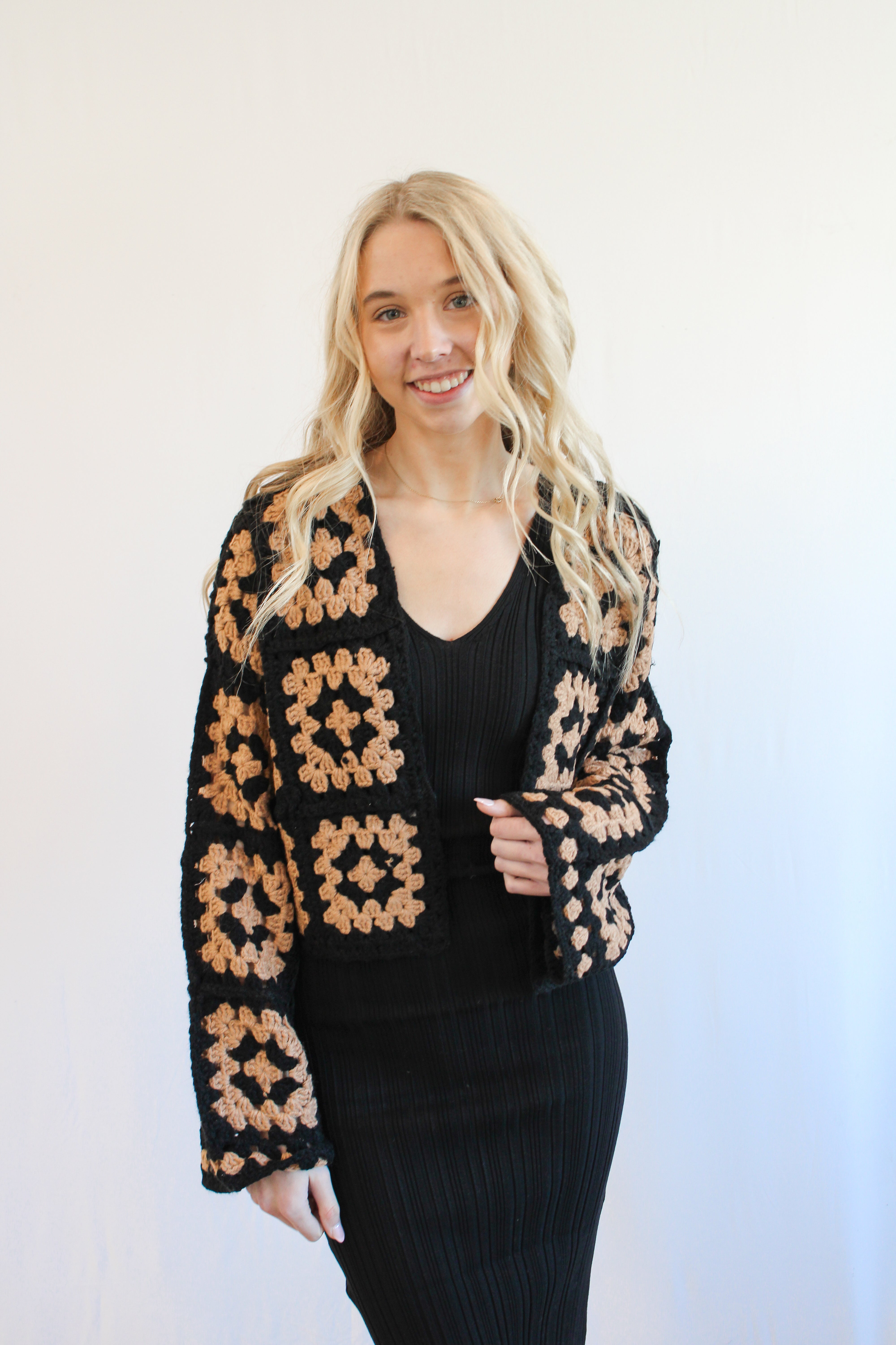 CLEO BLACK & CAMEL CROCHET KNIT CARDIGAN