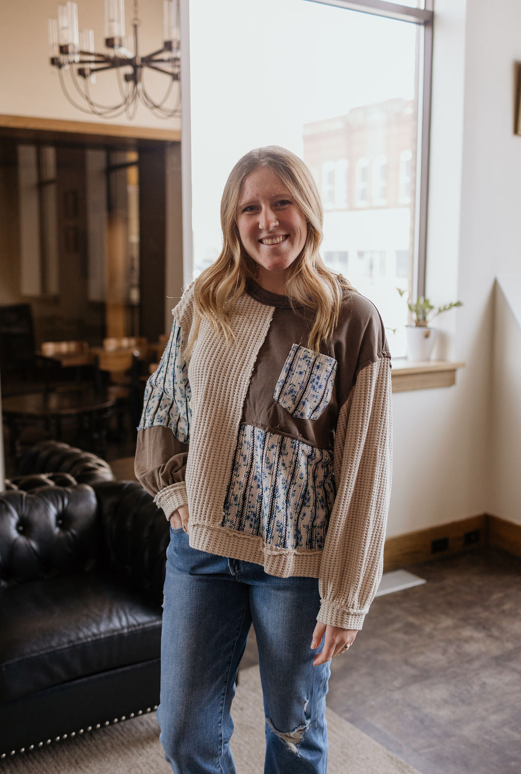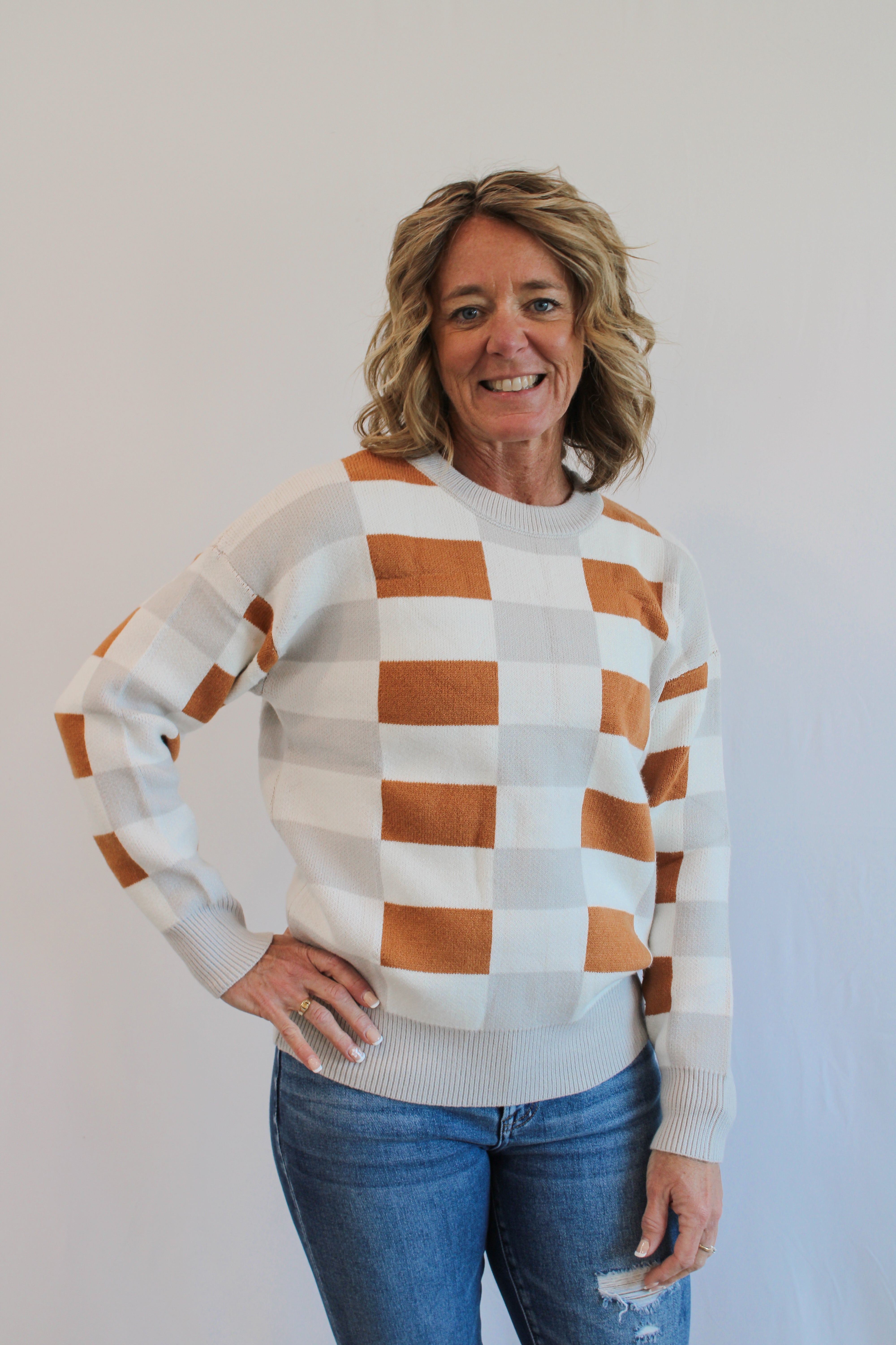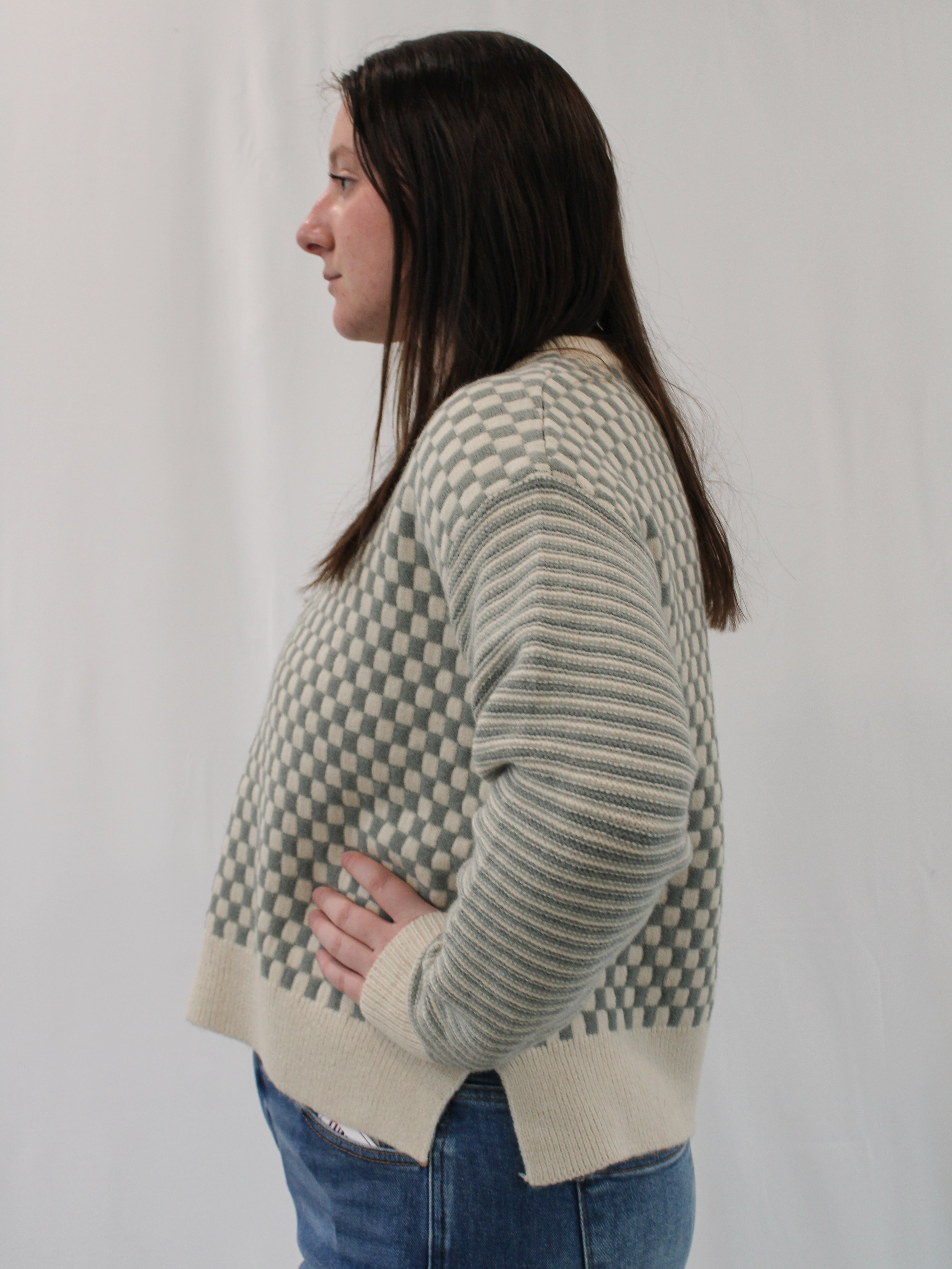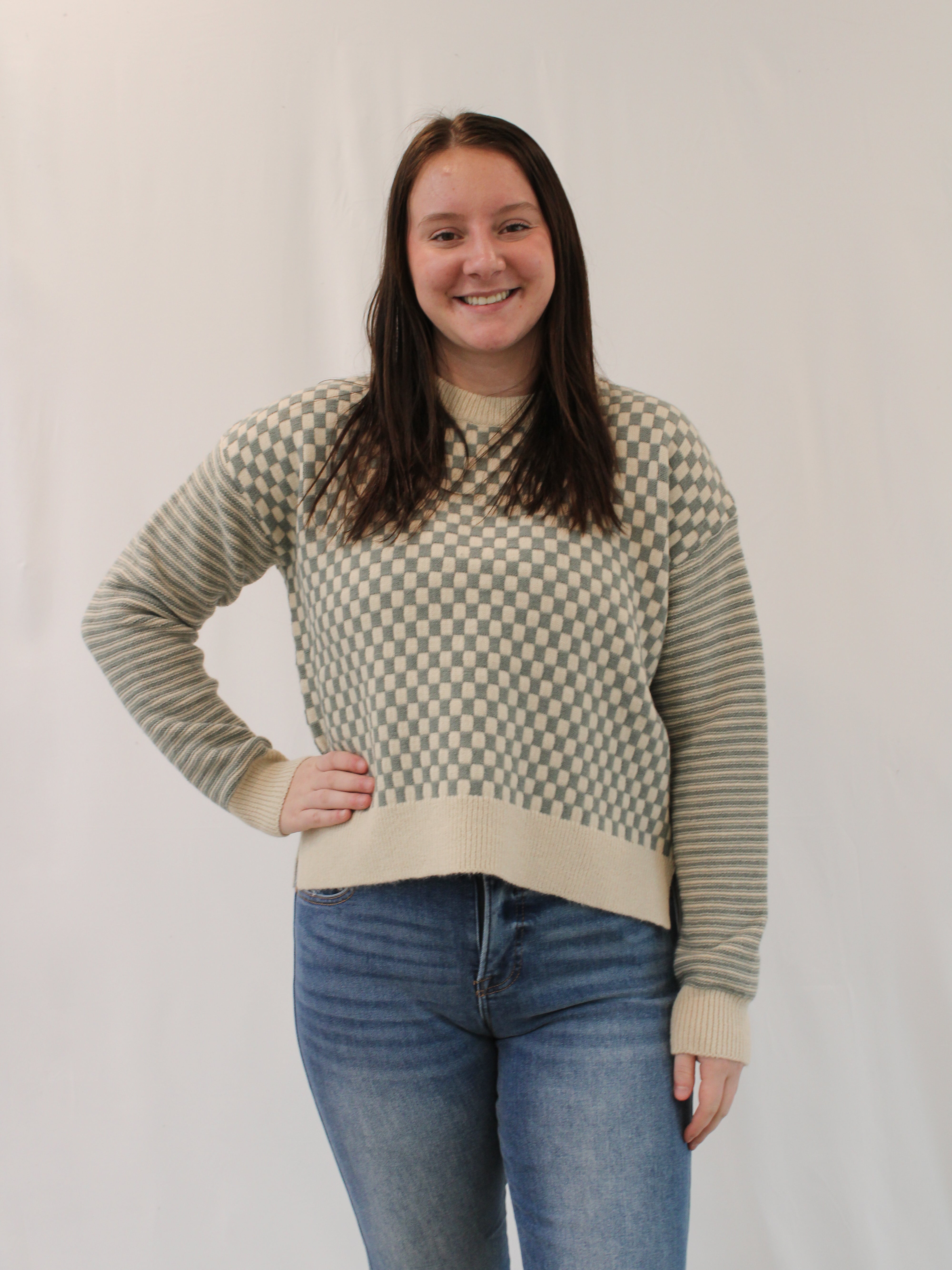 ATLEE CHECKERED RIBBED BLOCK SWEATER