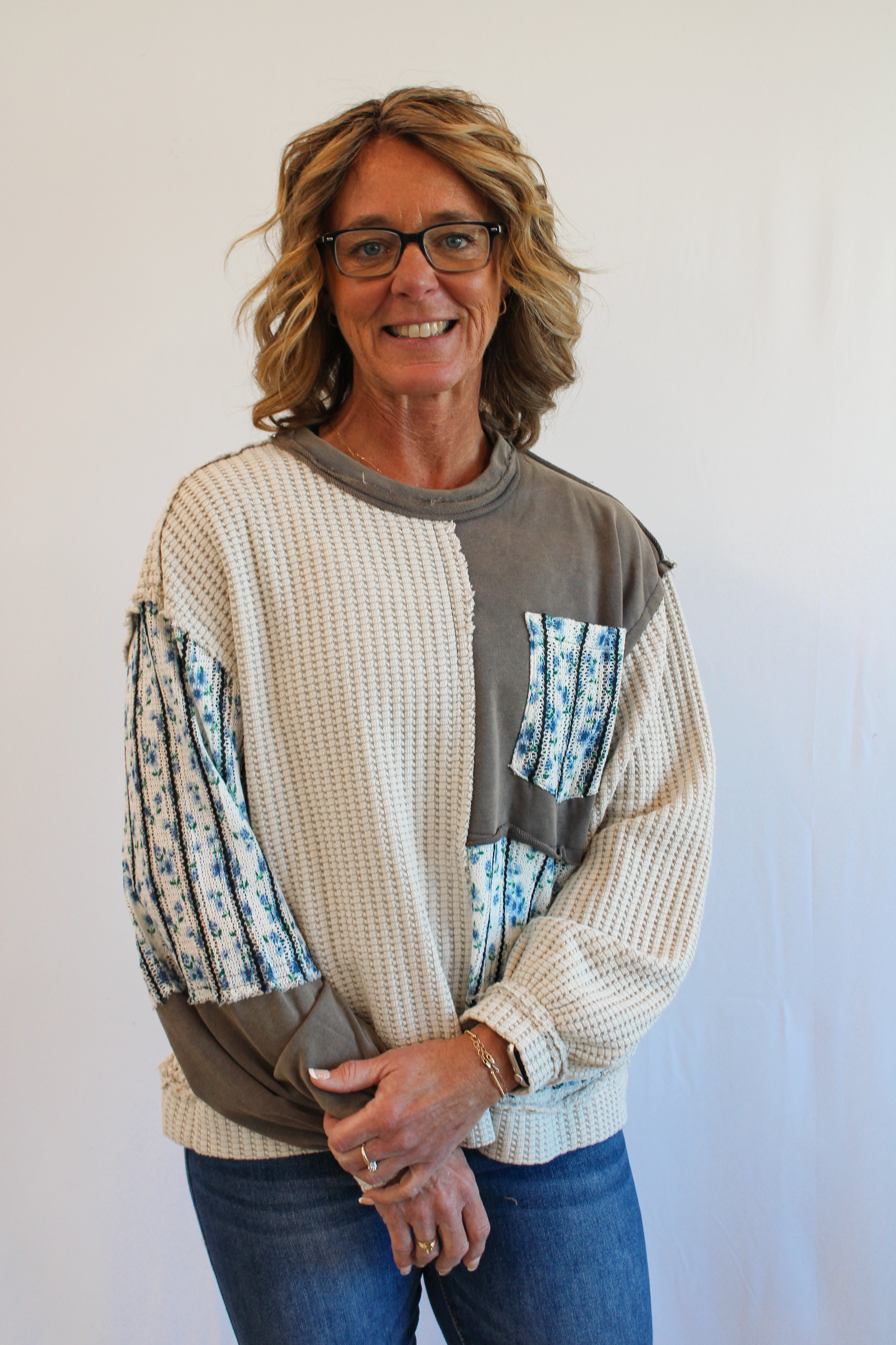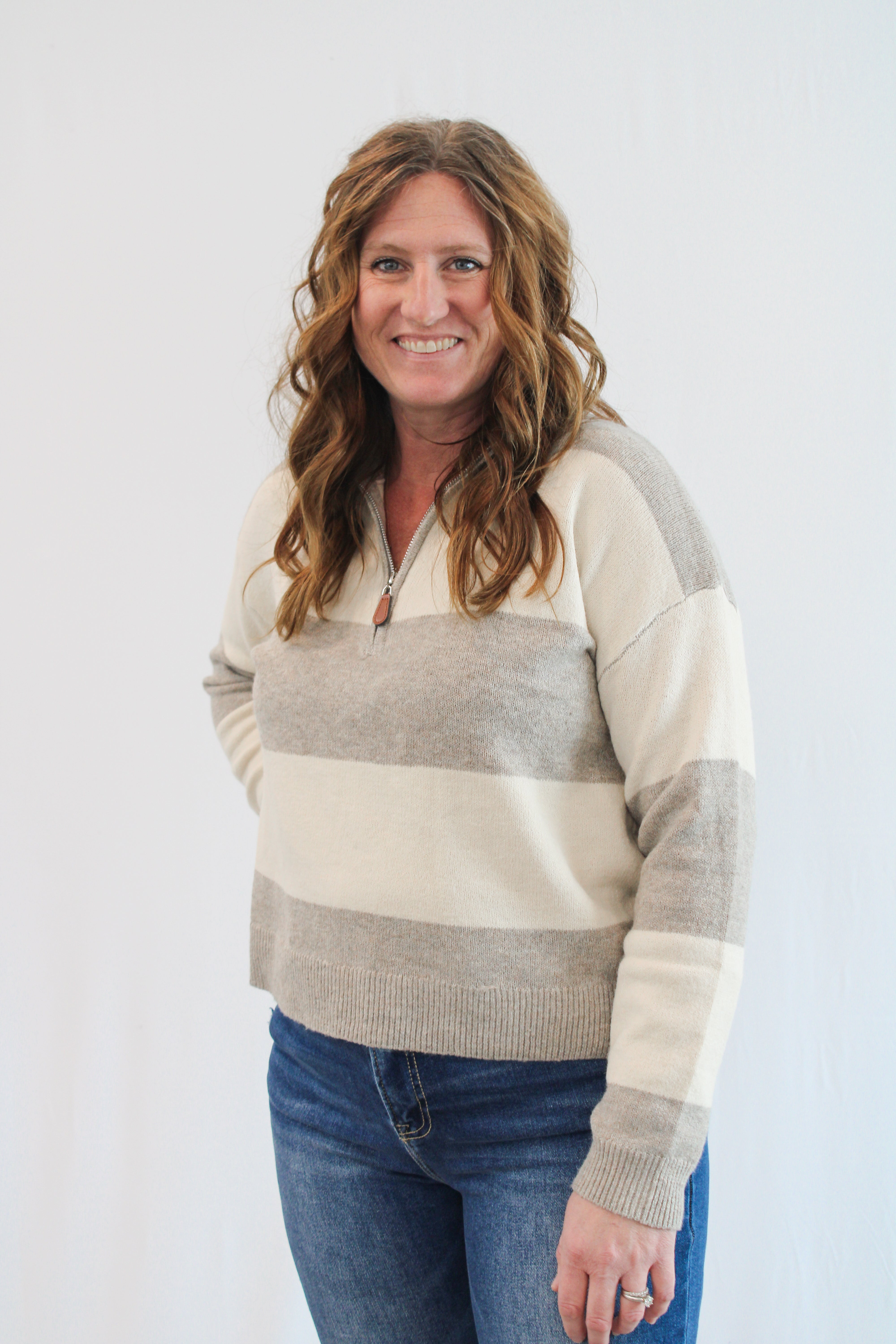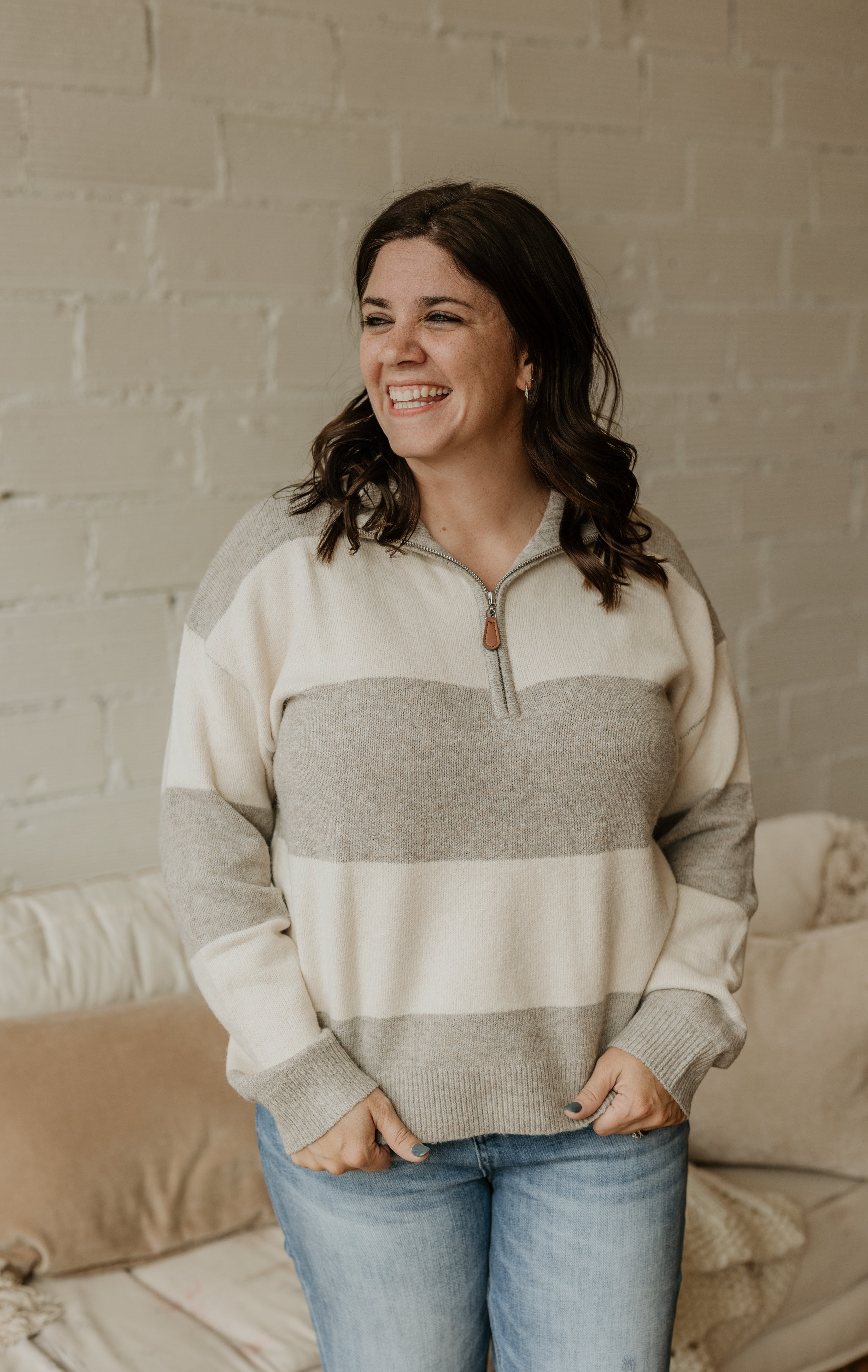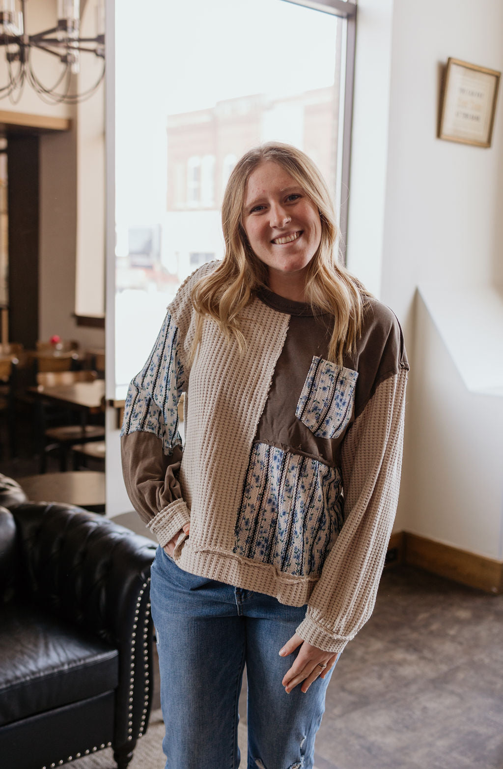 ATLEE CHECKERED RIBBED BLOCK SWEATER