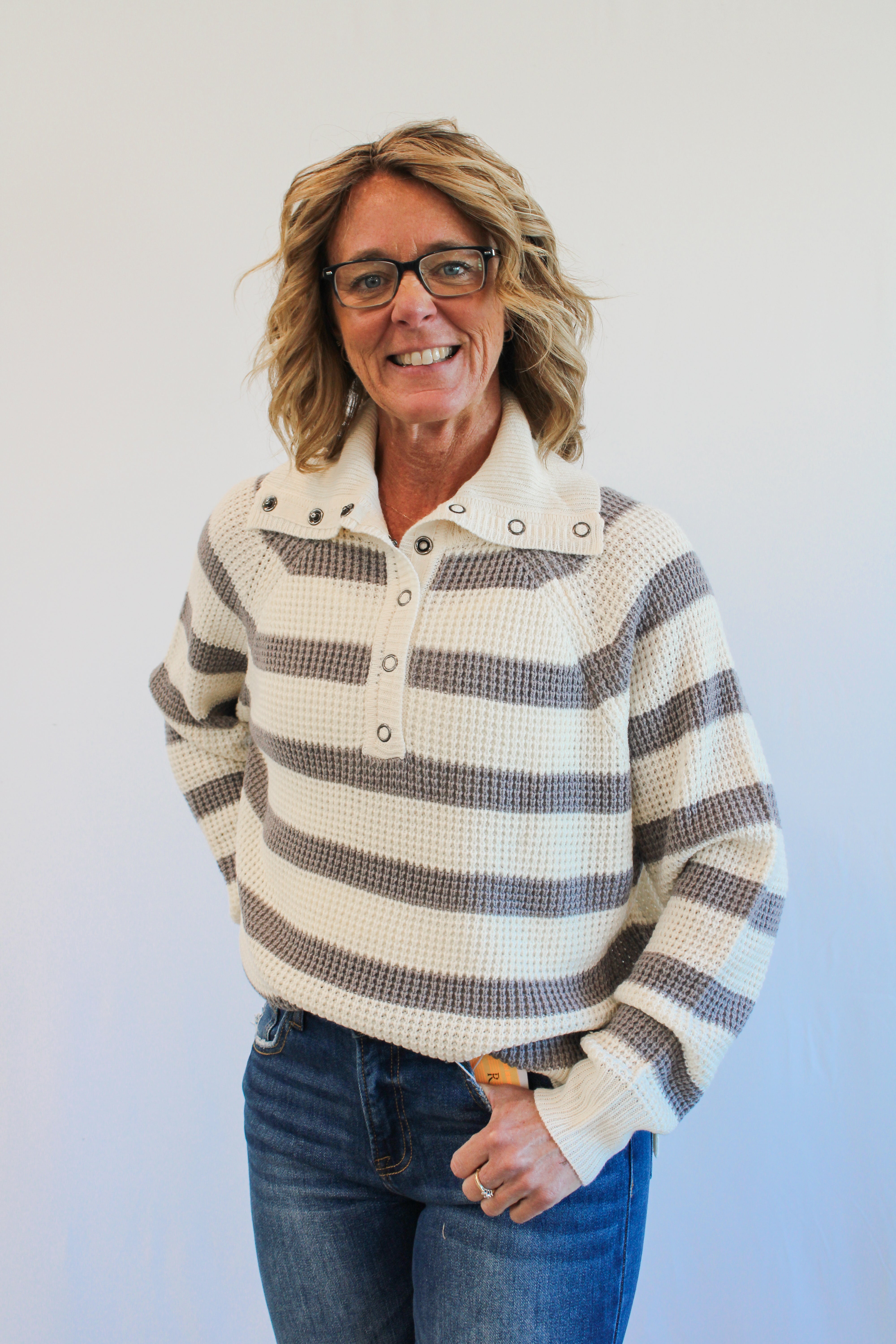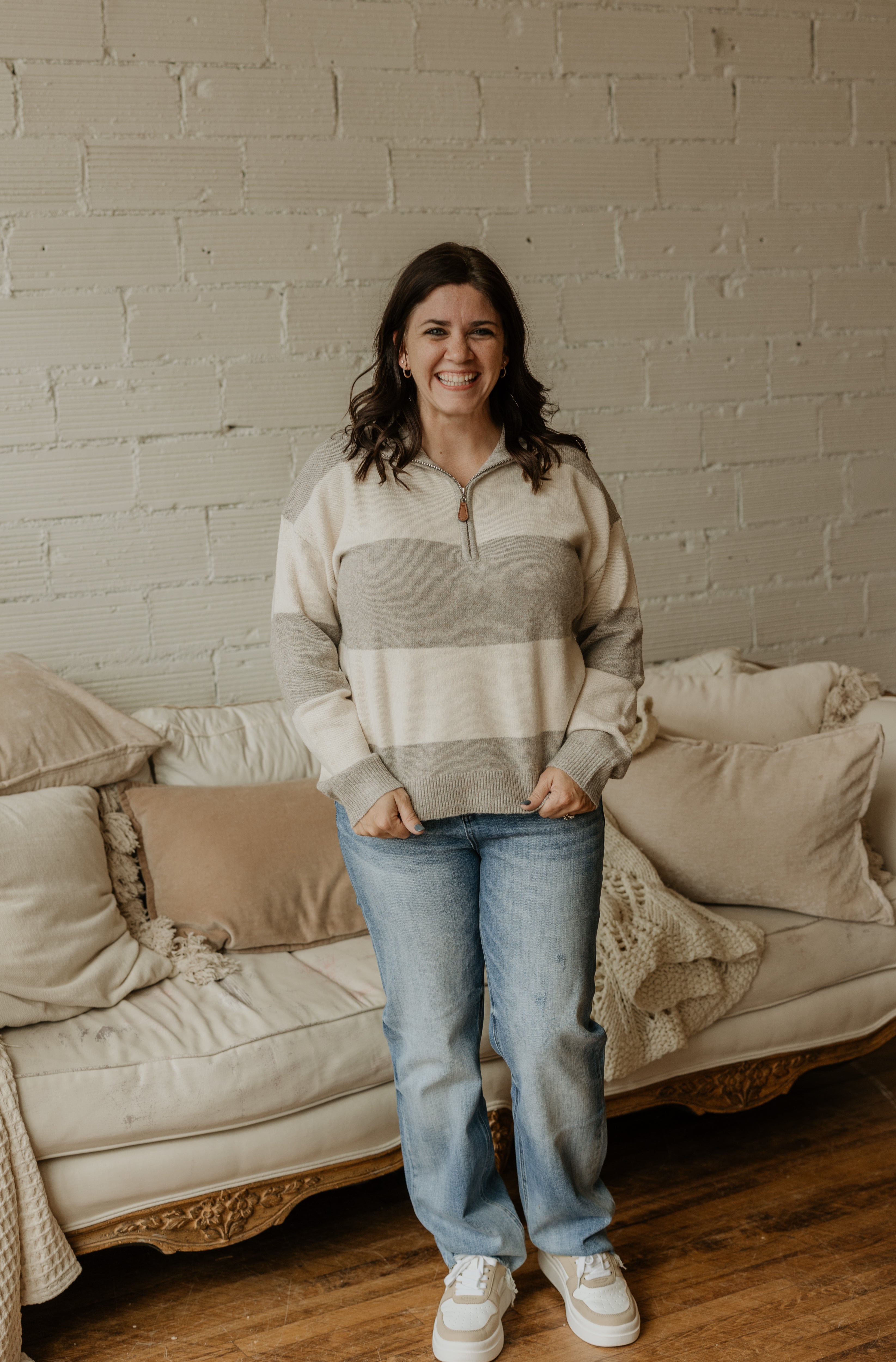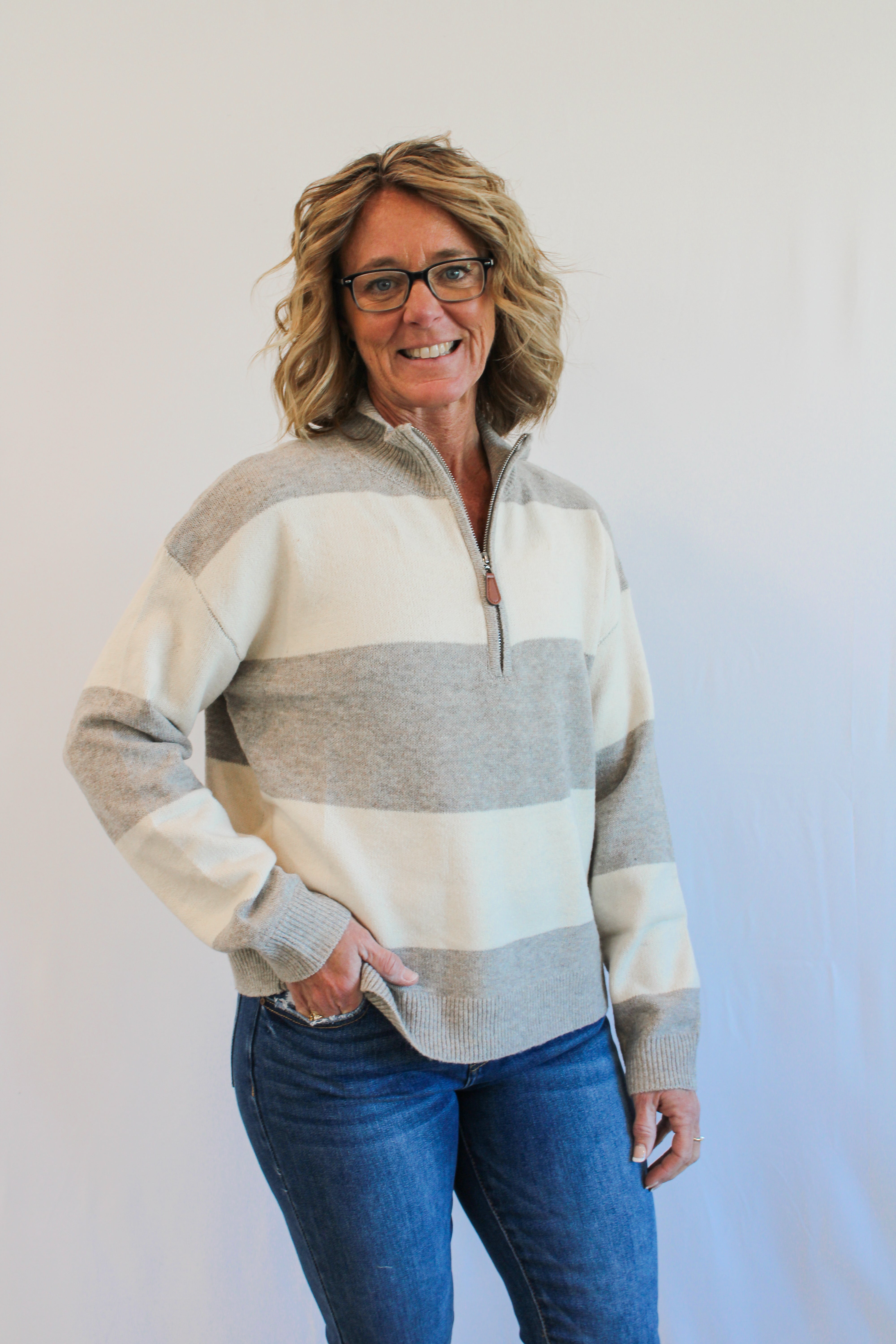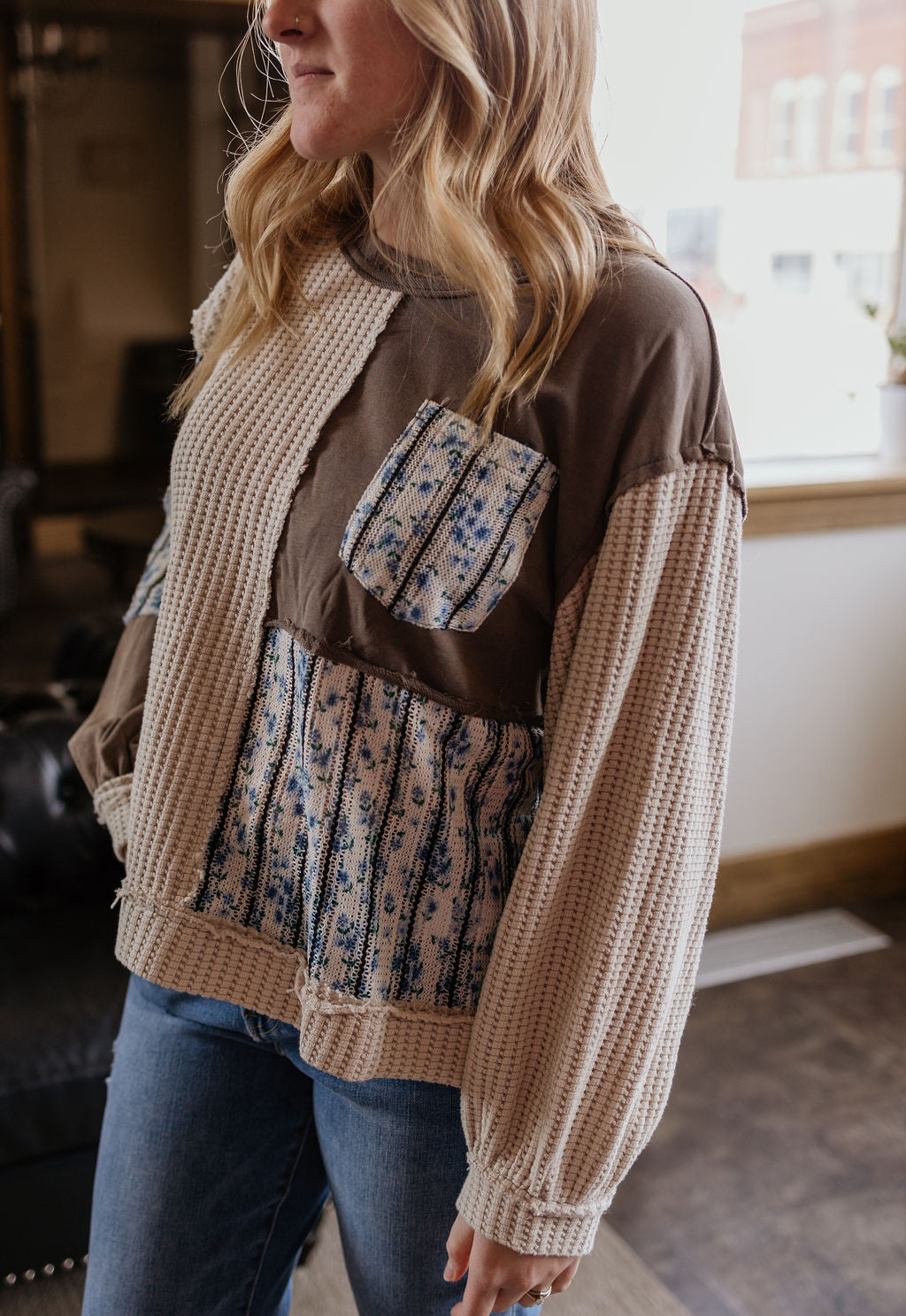 ATLEE CHECKERED RIBBED BLOCK SWEATER