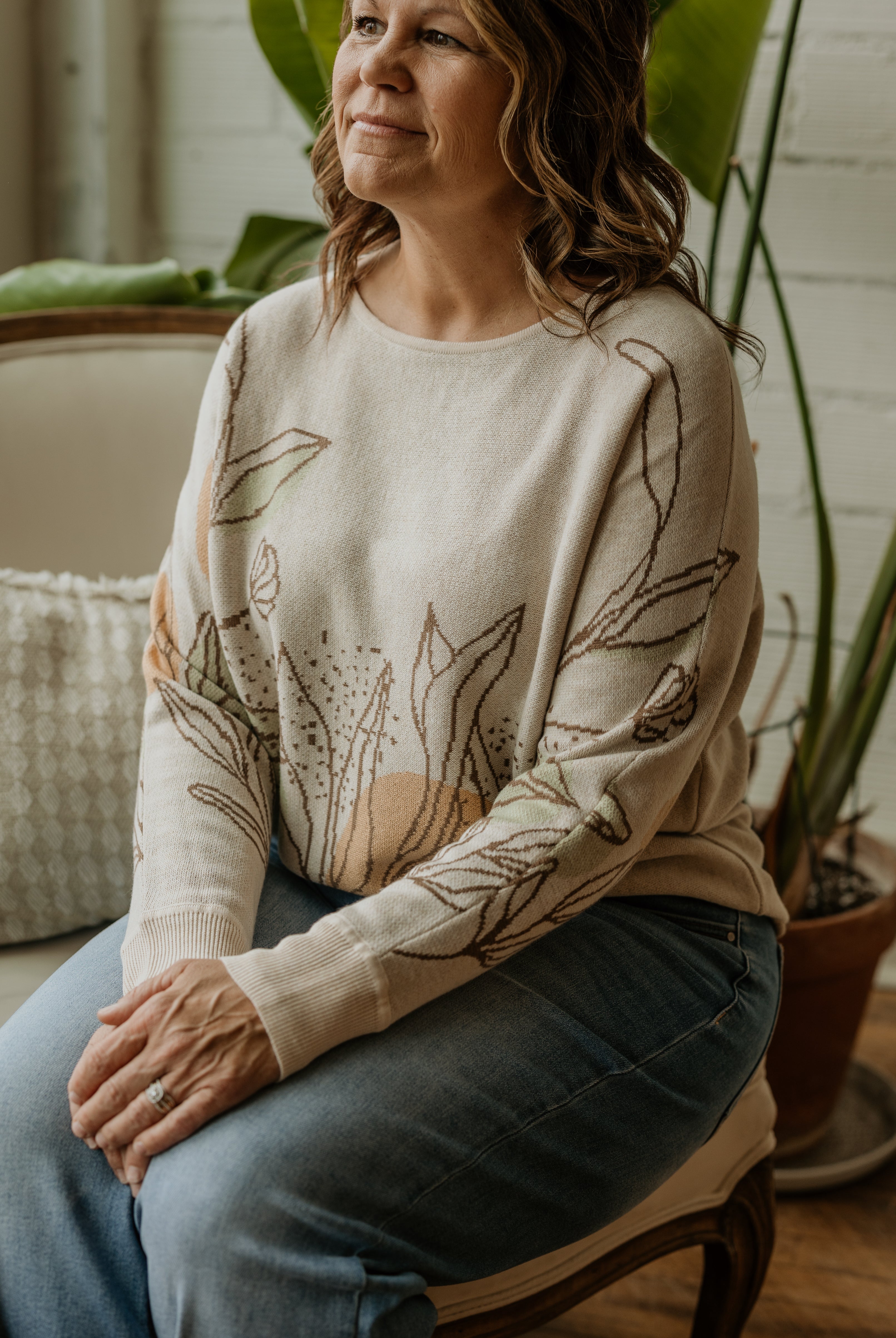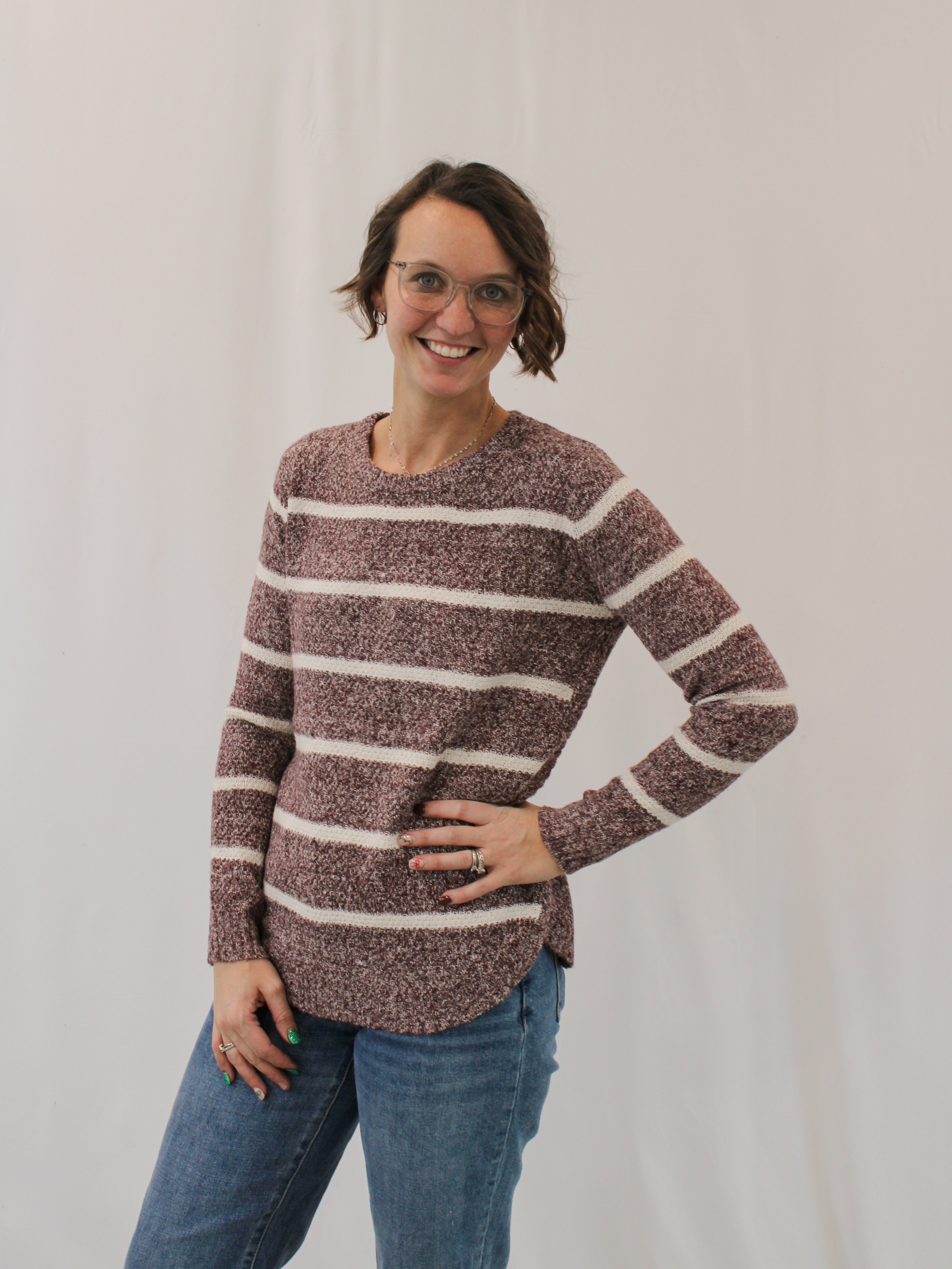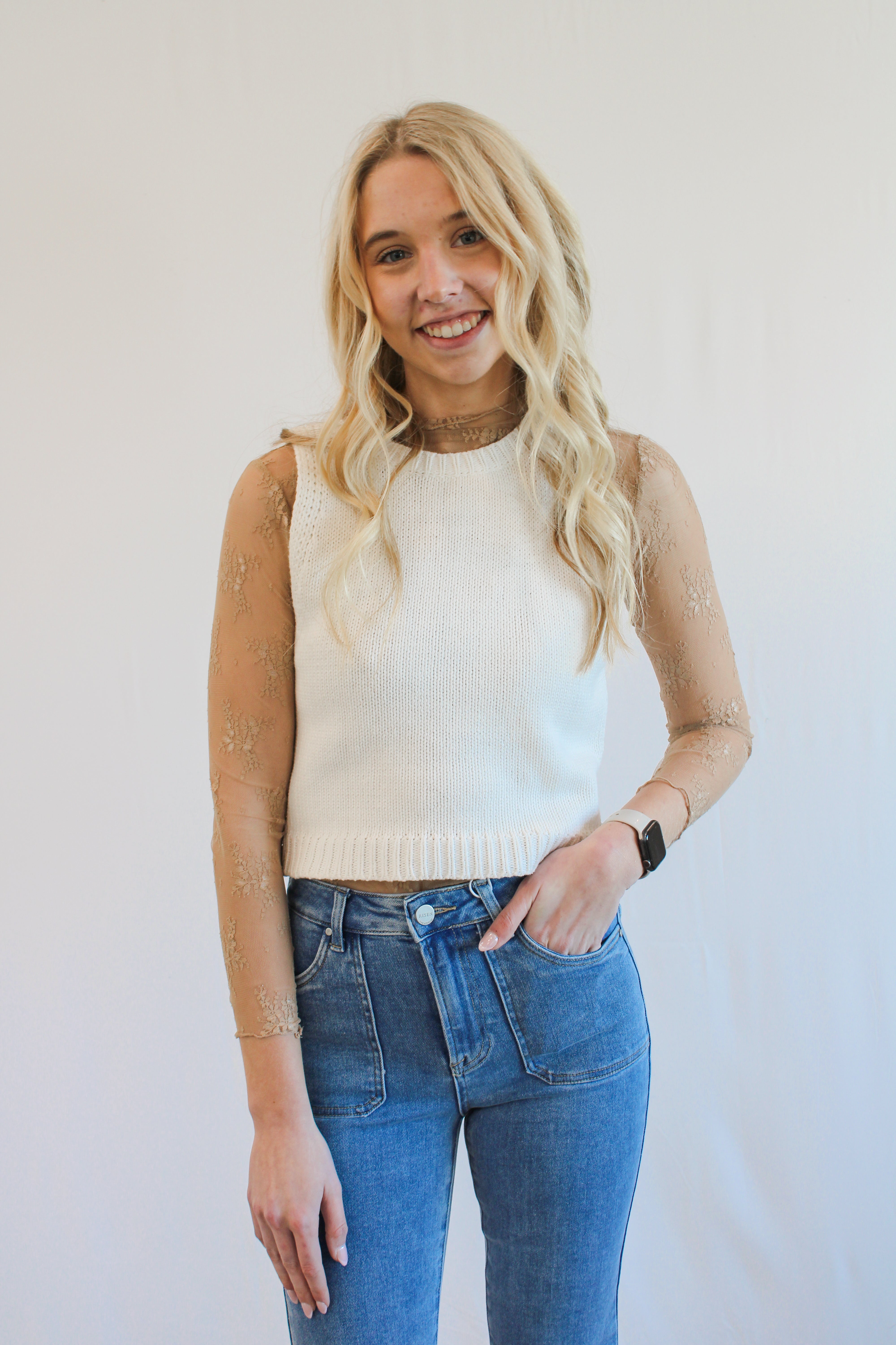 ZOE MAUVE CROCHET SLEEVE KNIT SWEATER BY IVY & CO