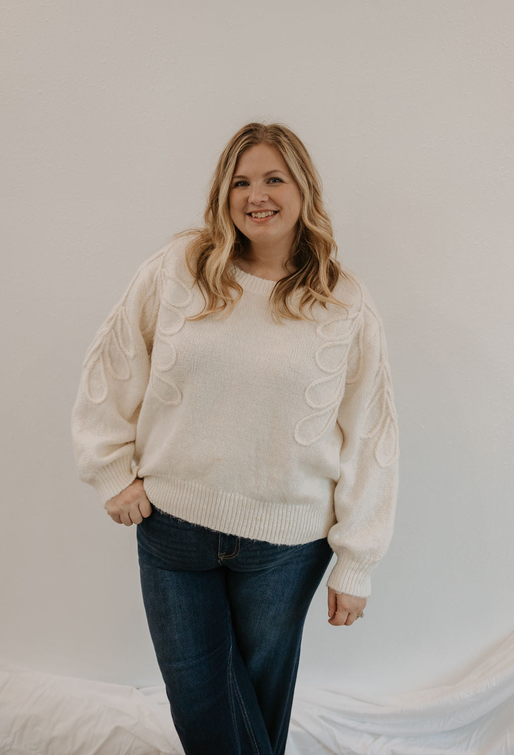 ALIANNA REG/CURVY FLORAL STITCHED SWEATER