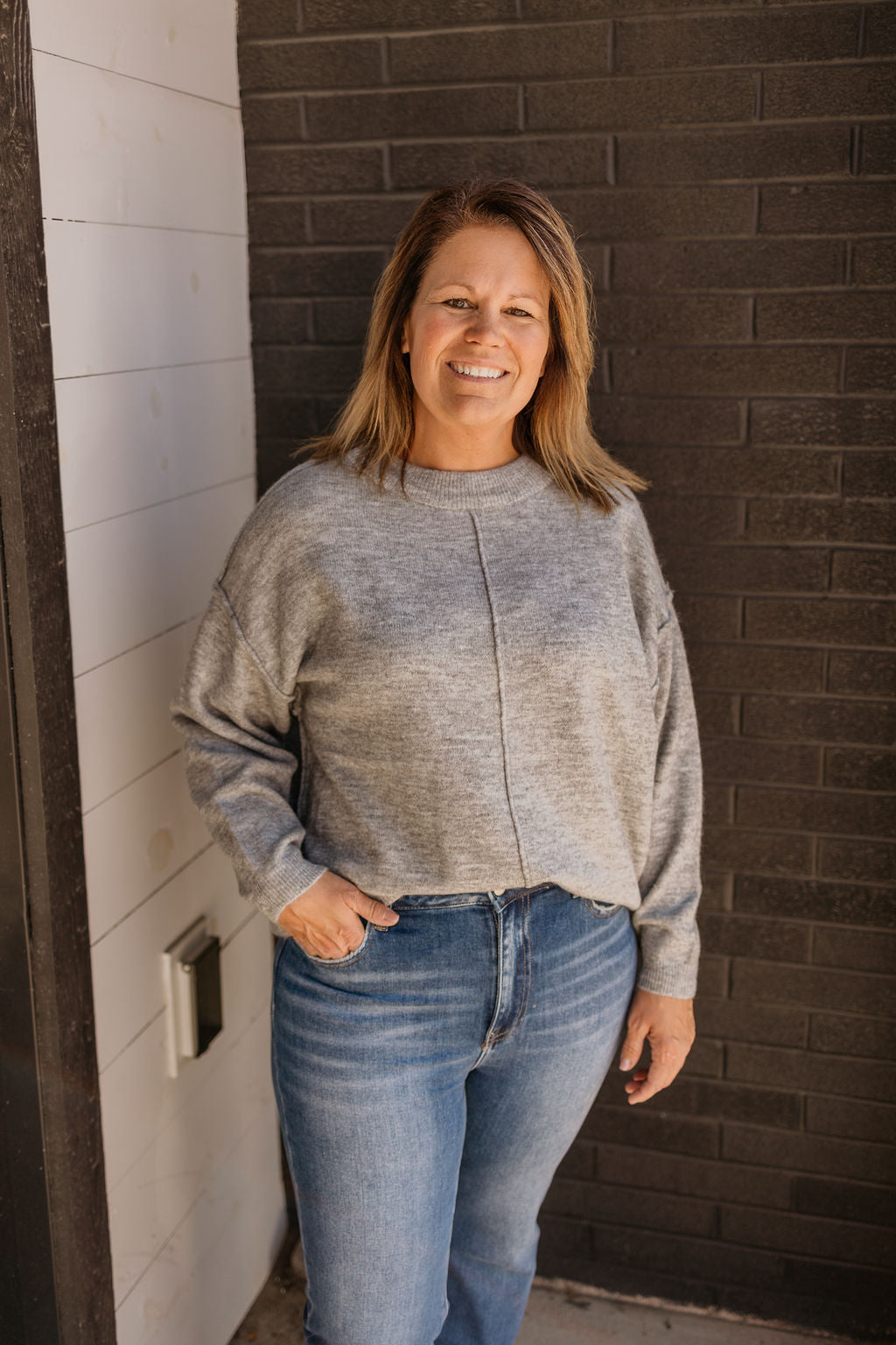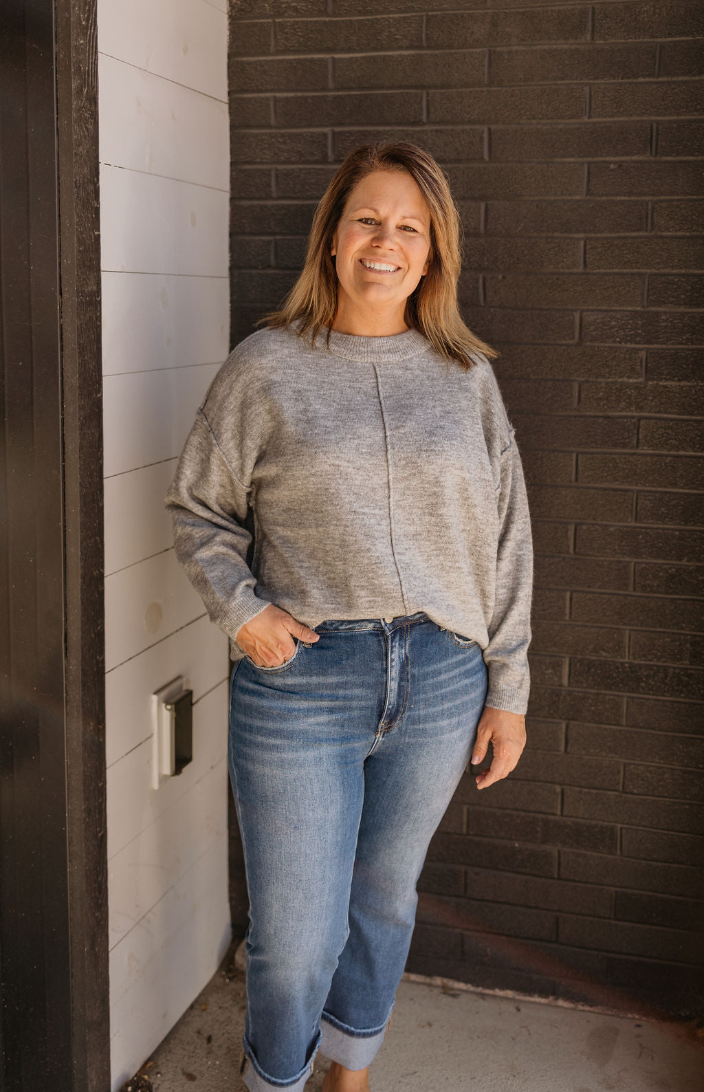 LUCEN MELANGE FRONT SEAM SWEATER