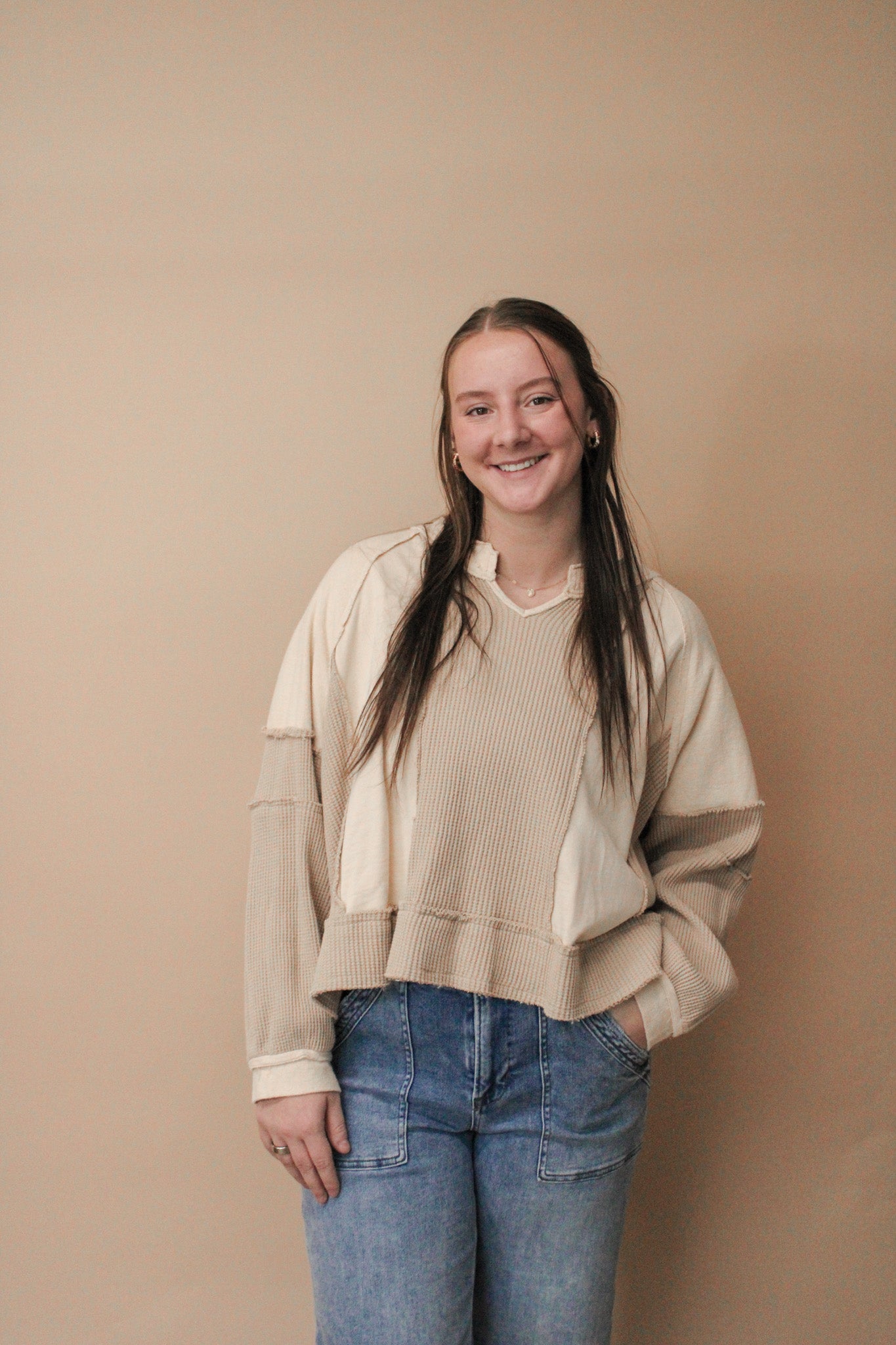 SAFFRON NOTCHED NECK KNIT TOP