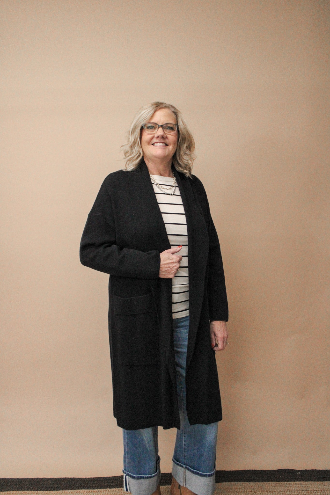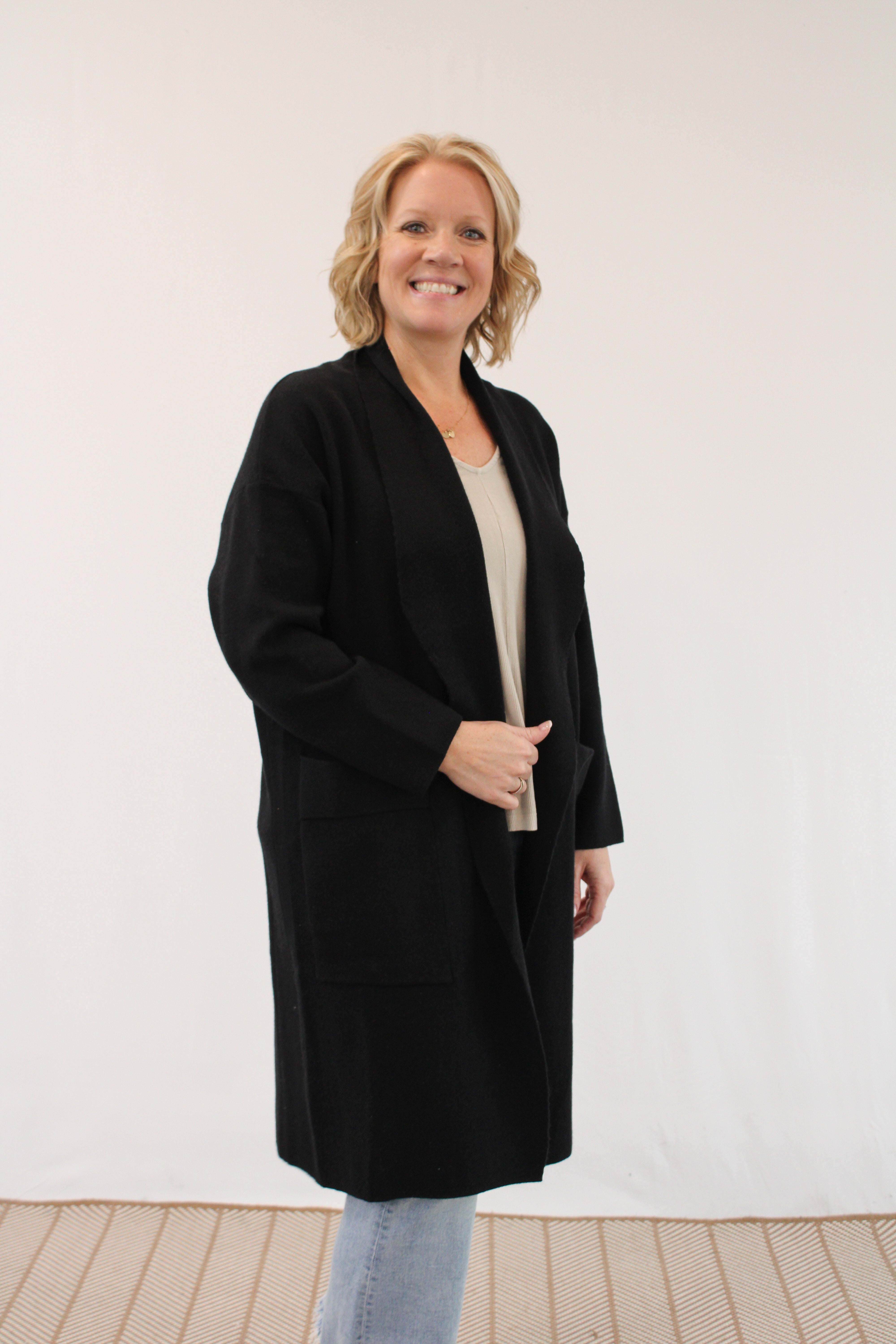 BENNIE REG/CURVY MIXED MEDIA CARDIGAN