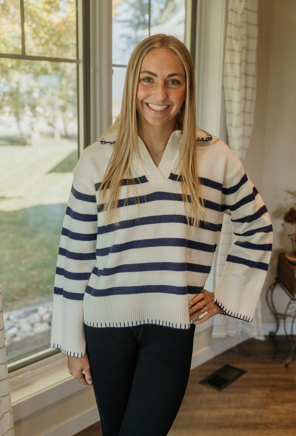 SAILOR WIDE STRIPE COLLAR SWEATER
