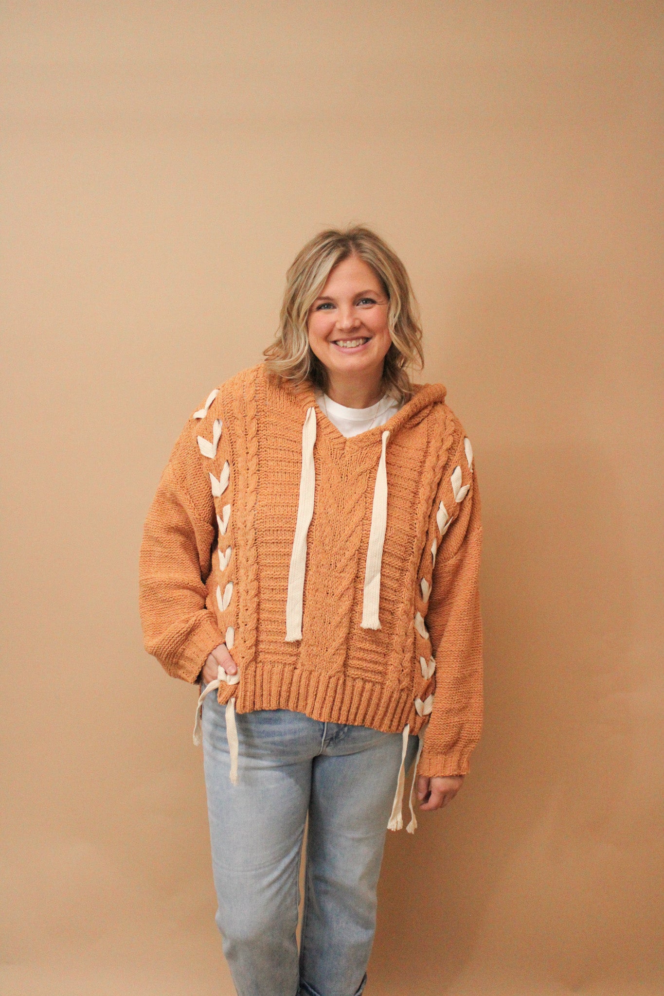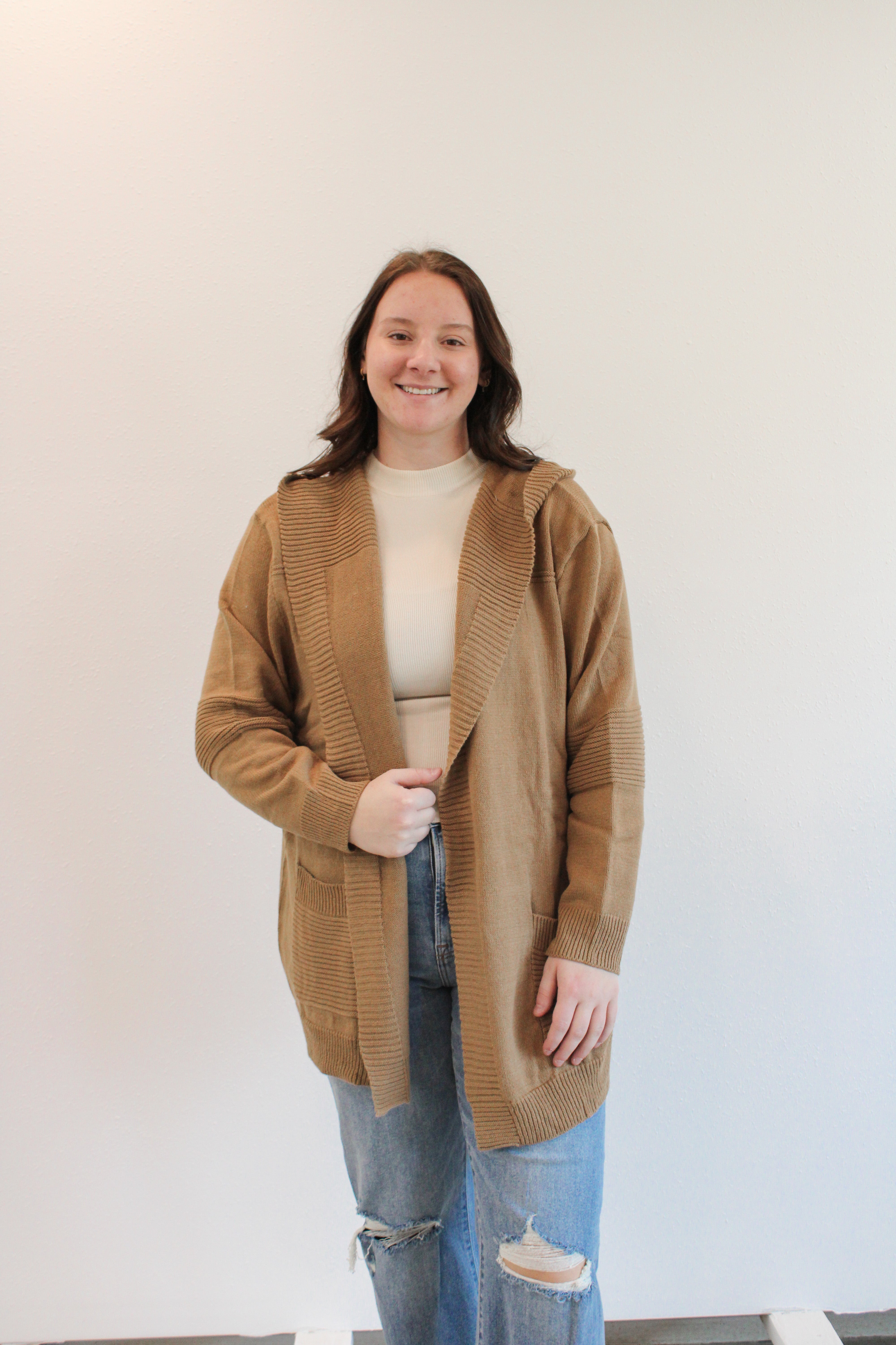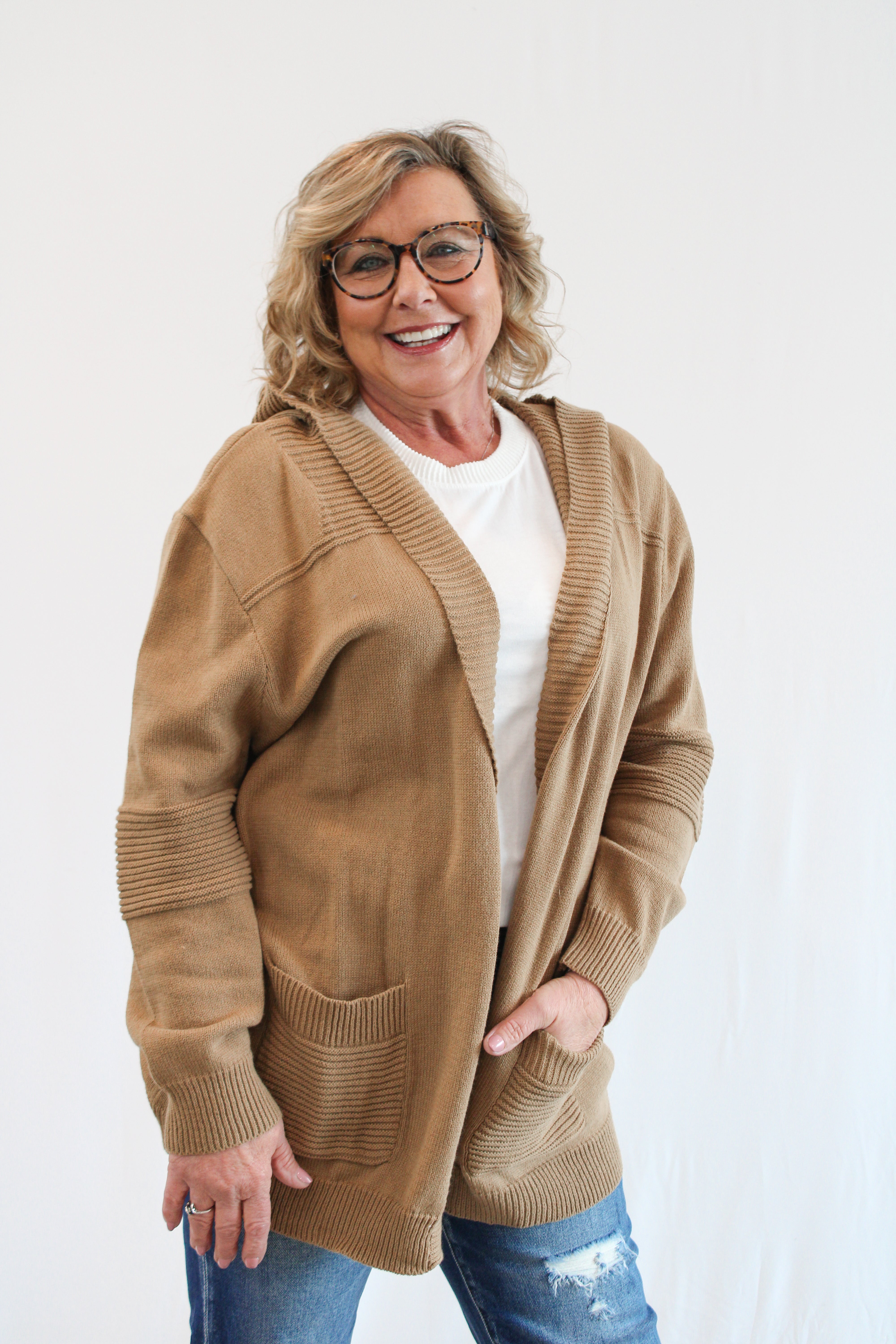 KAMELO REG/CURVY KNIT HOODED CARDIGAN
