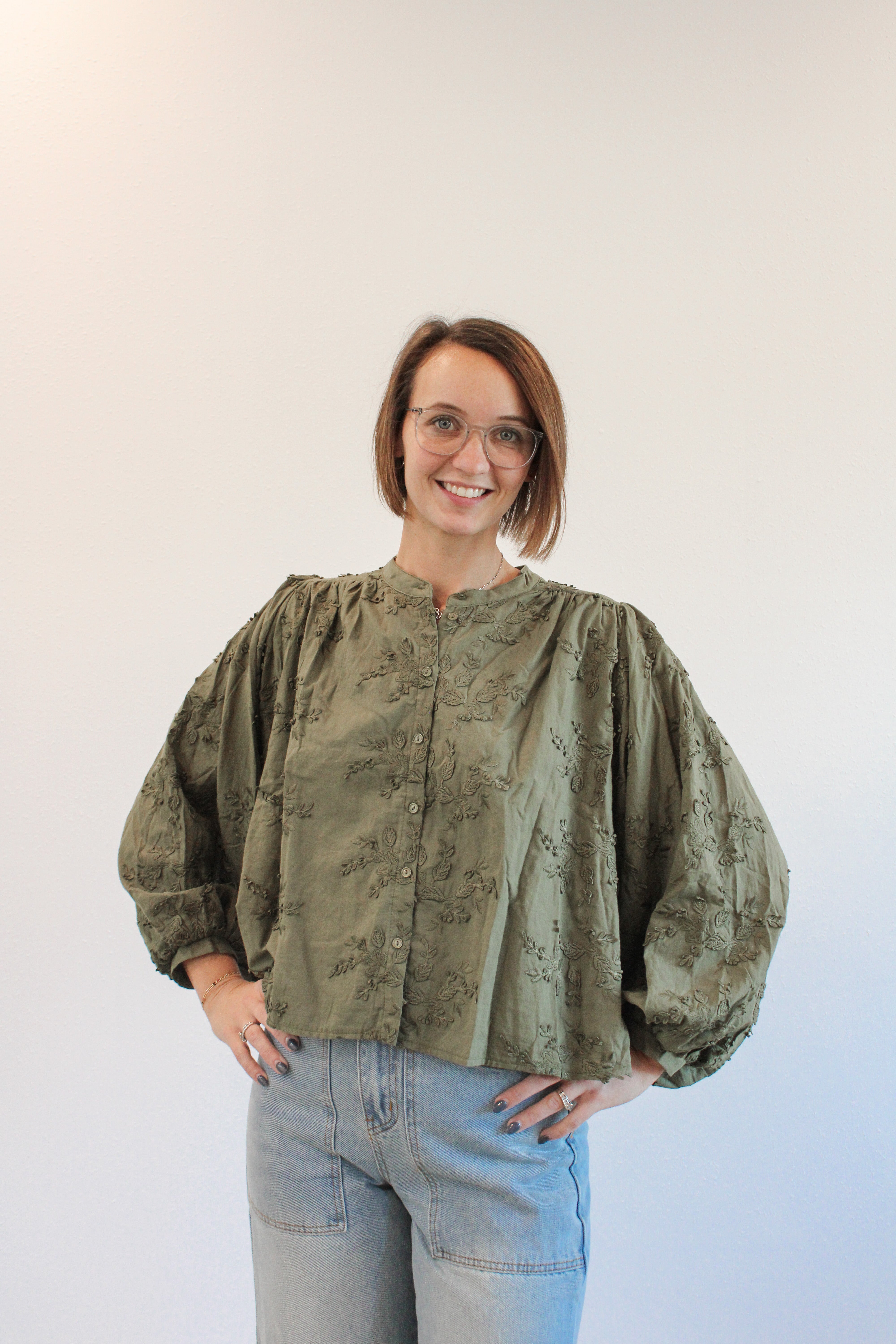 MEGHAN FLORAL APPLIQUE BLOUSE