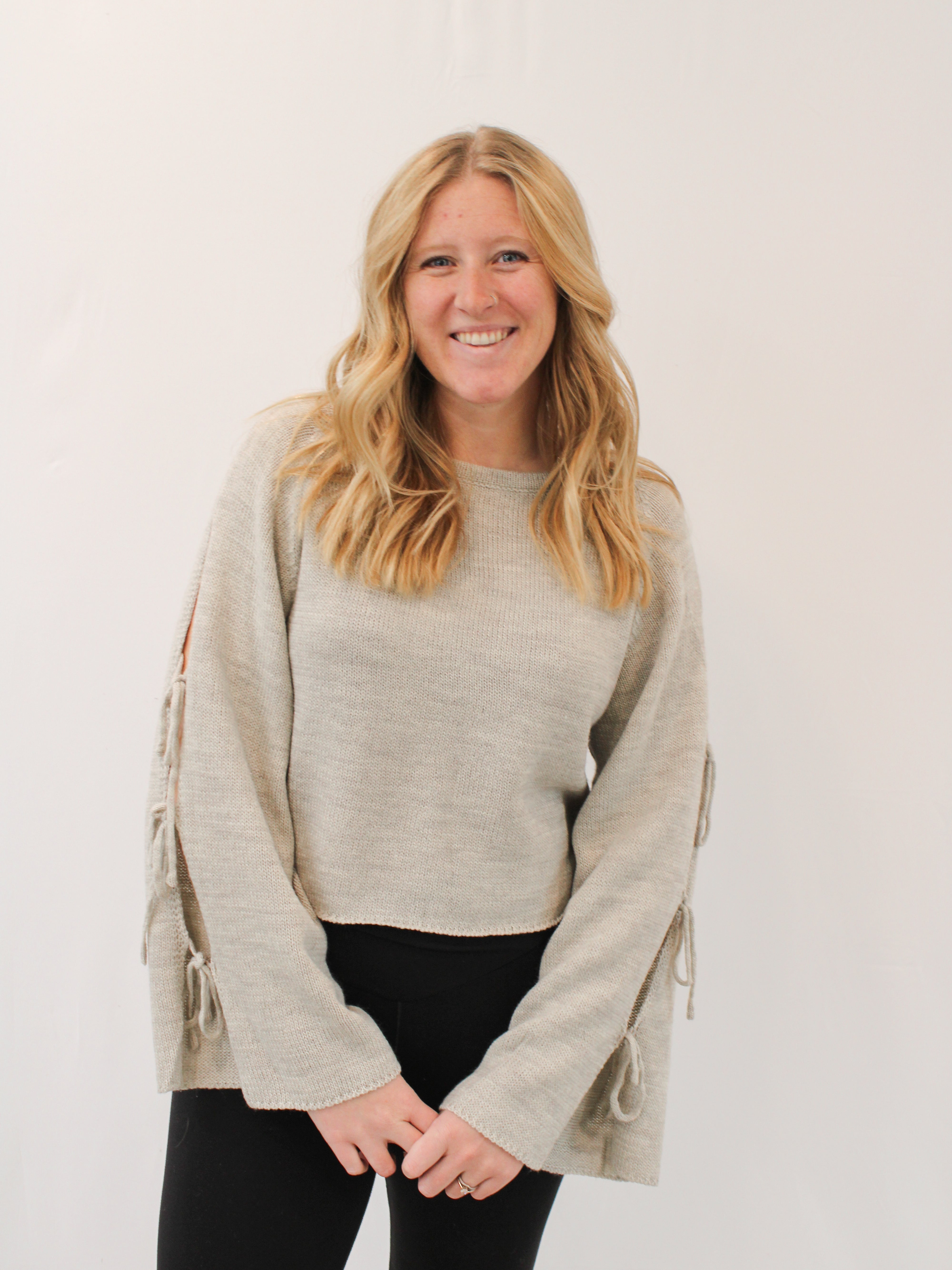 HEATHER RIBBON TIE SLEEVE SWEATER BY IVY & CO