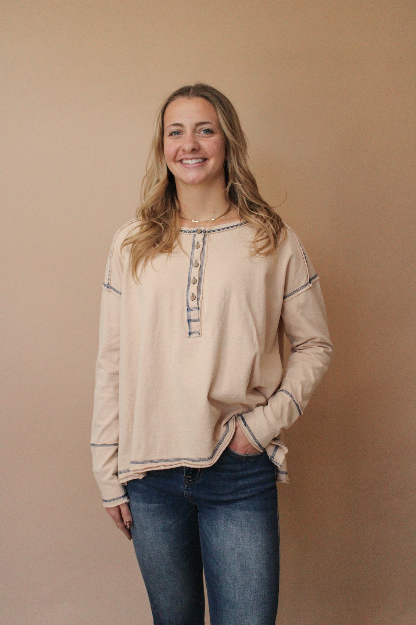 RACHELLE STITCHED HENLEY