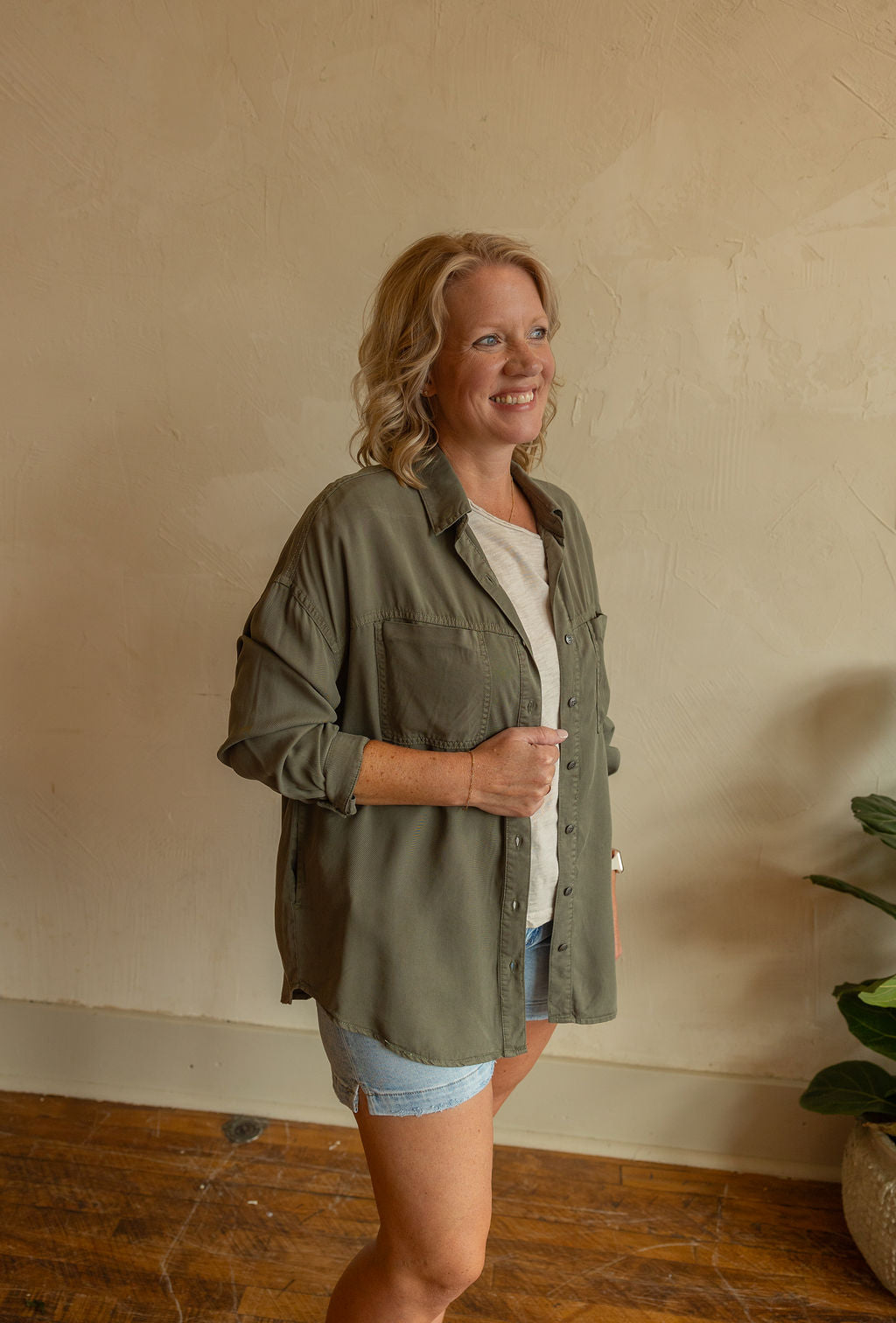 ERICA OVERSIZED TENCEL BUTTON DOWN TOP
