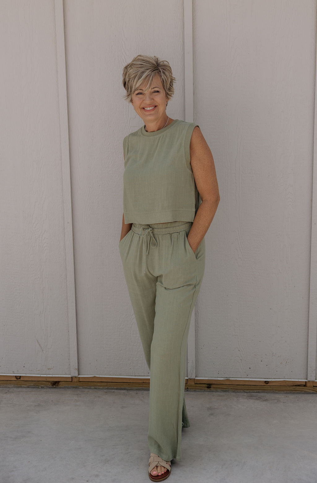 ELAINE SAGE LINEN TOP AND BOTTOM SET