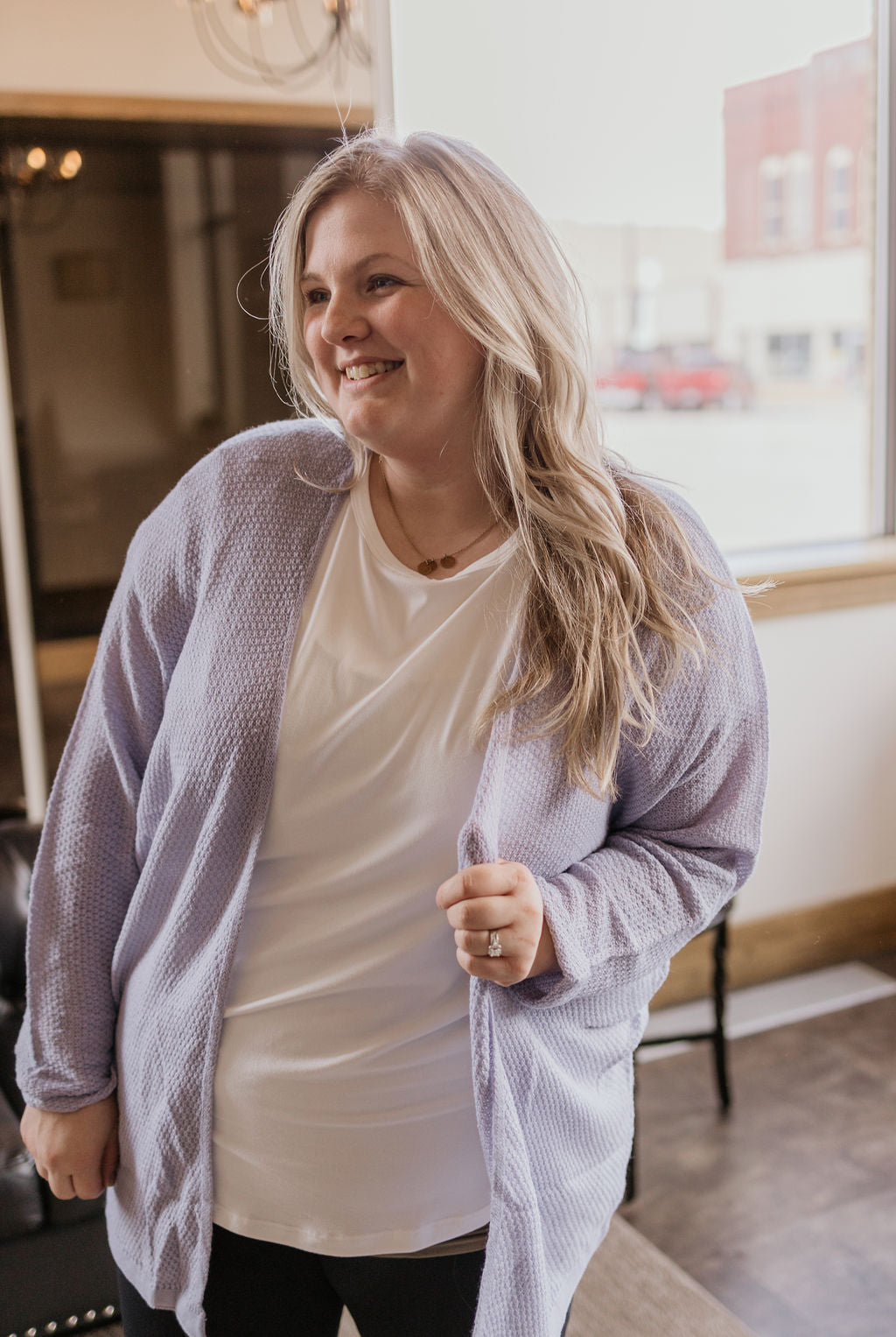 JUSTINE LAVENDER KNITTED TEXTURED CARDIGAN