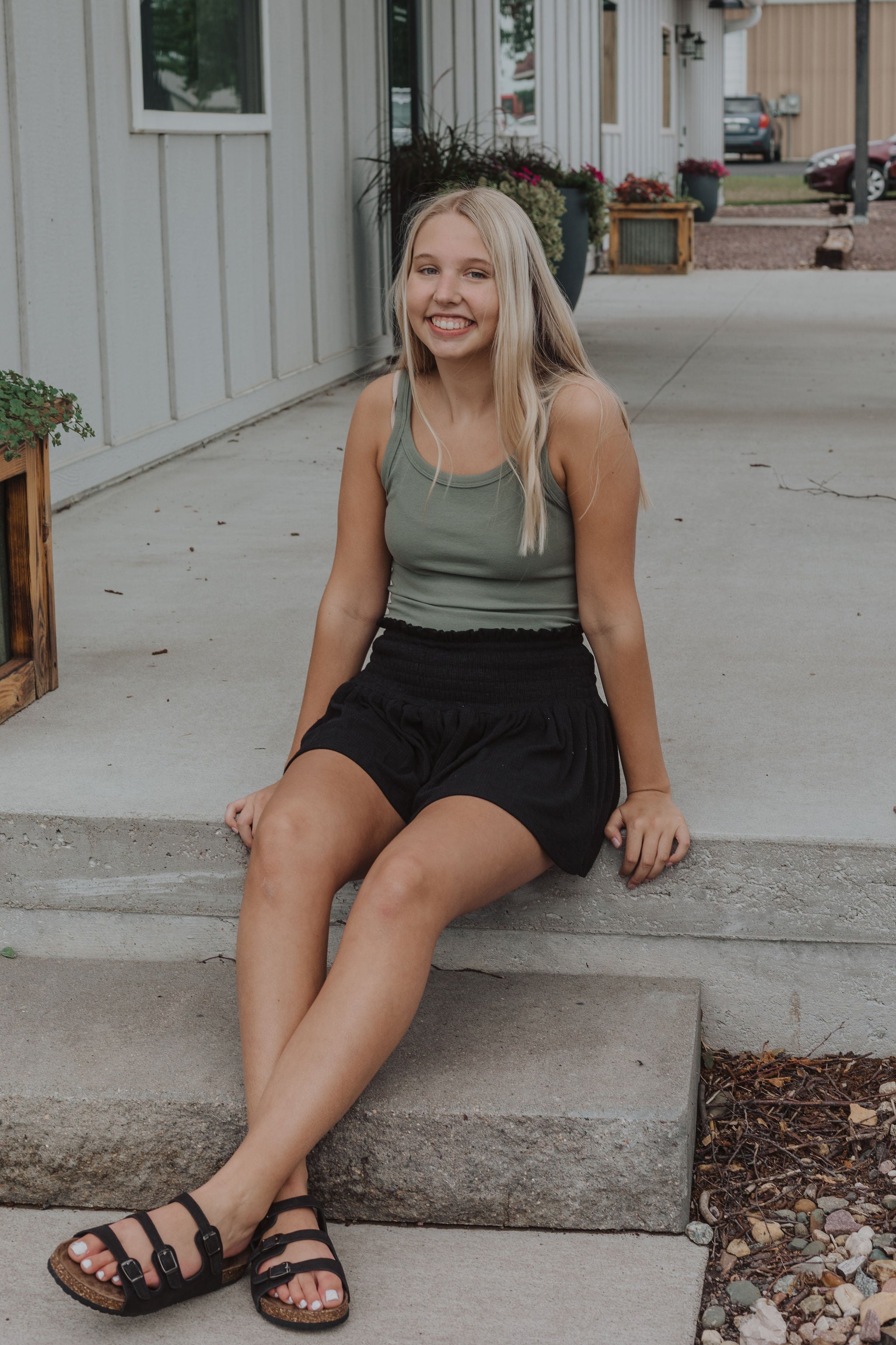 Girls tiered pleated strap tank top 2 color options