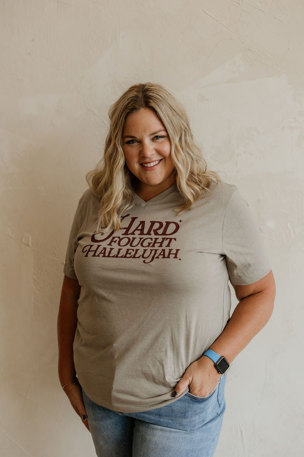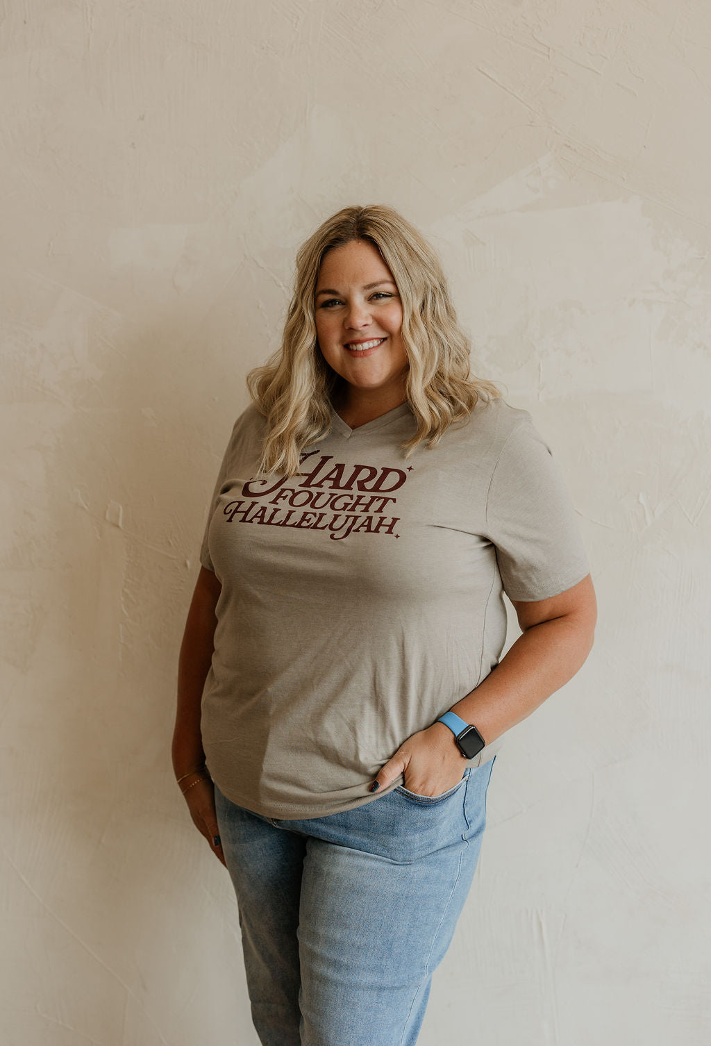 HARD FOUGHT HALLELUJAH REG/CURVY V-NECK GRAPHIC TEE