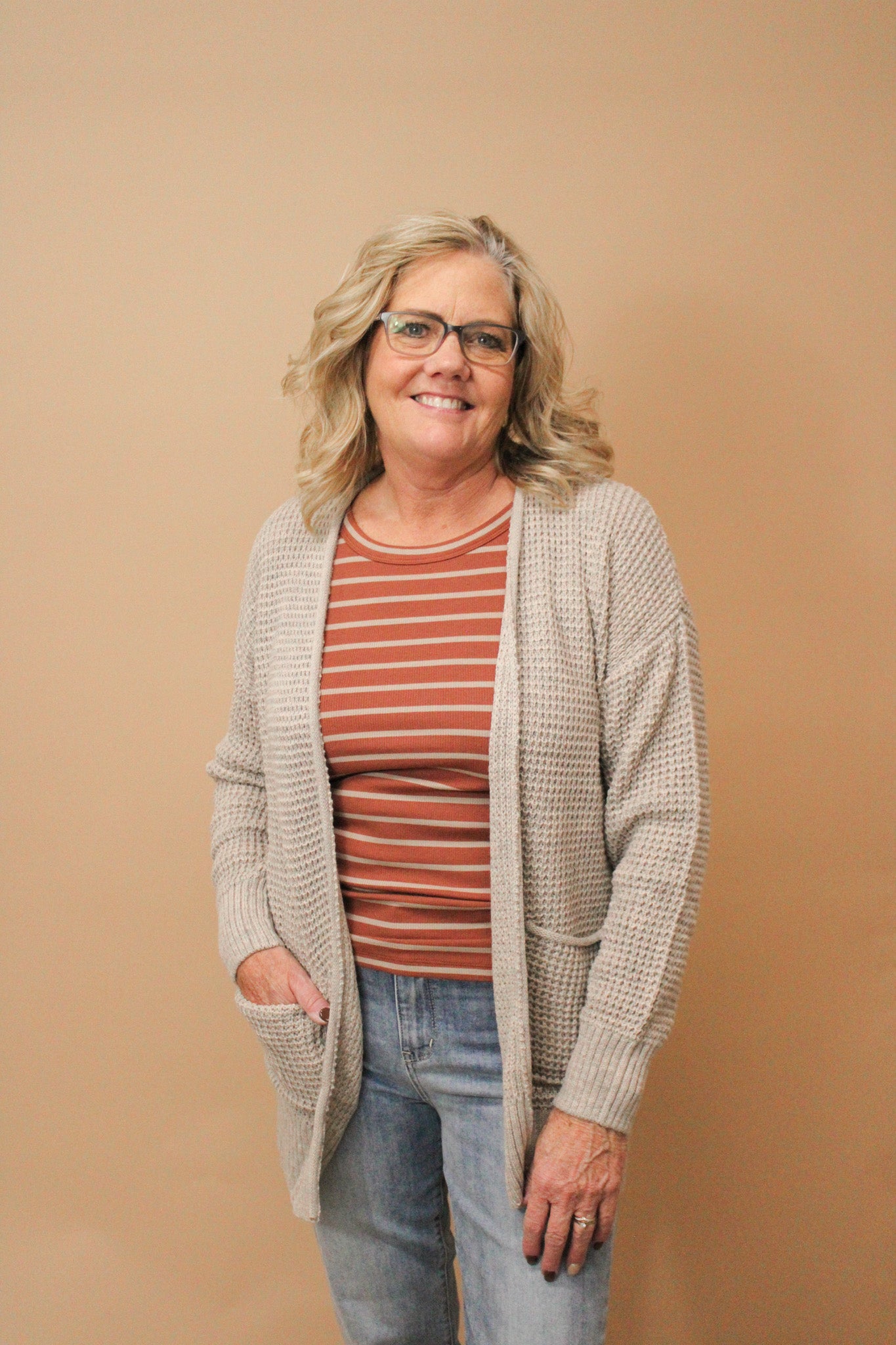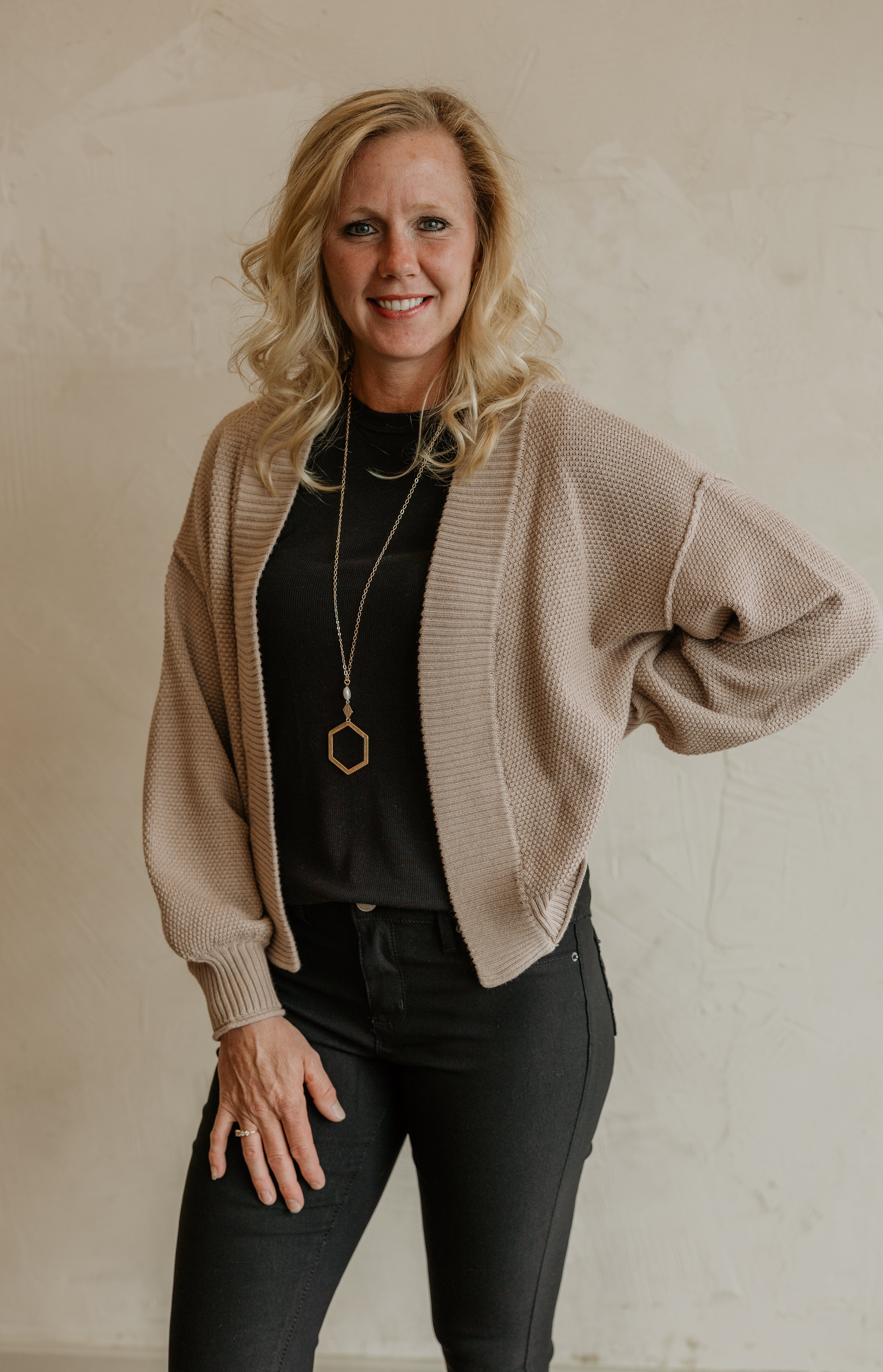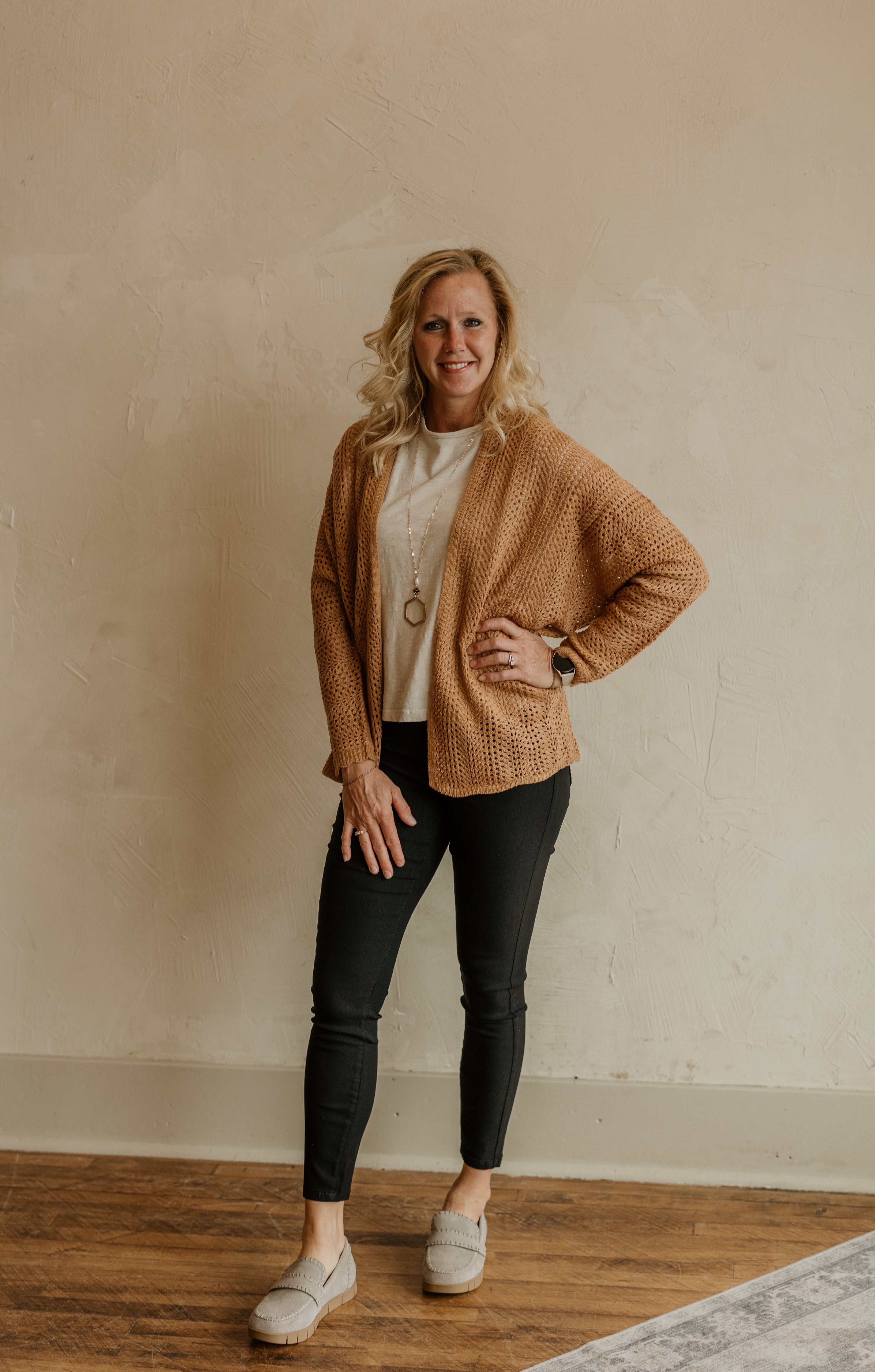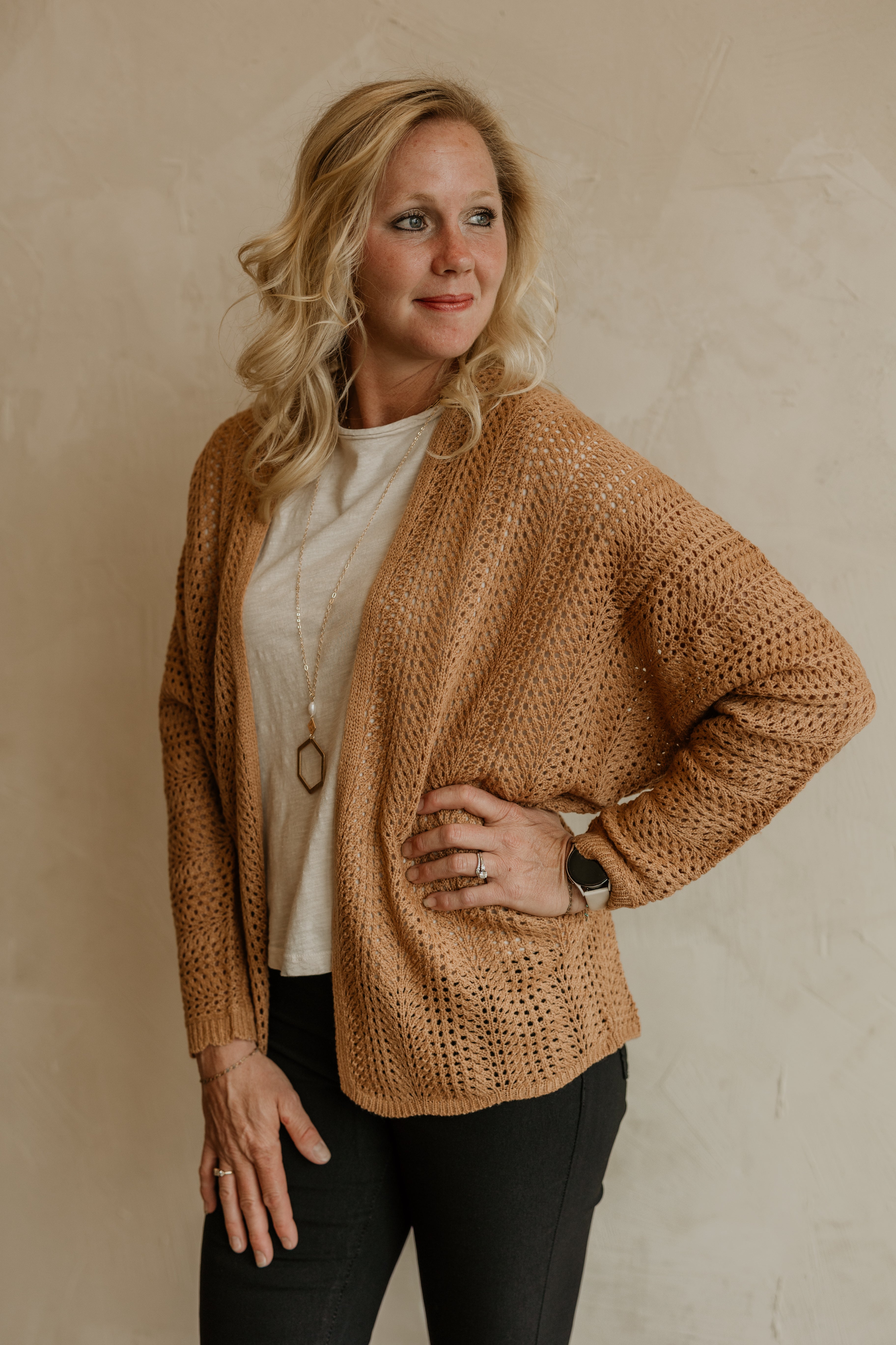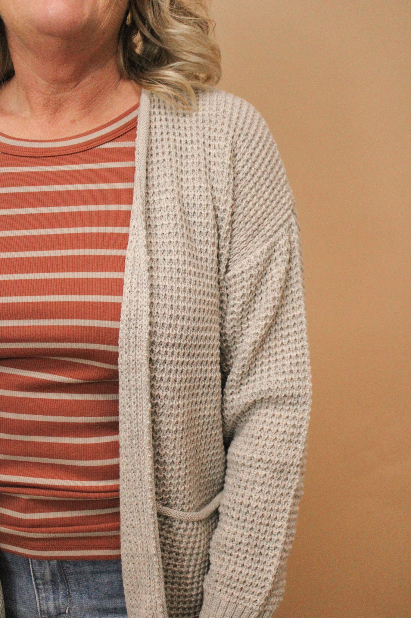 TRACI REG/CURVY WAFFLE OPEN CARDIGAN
