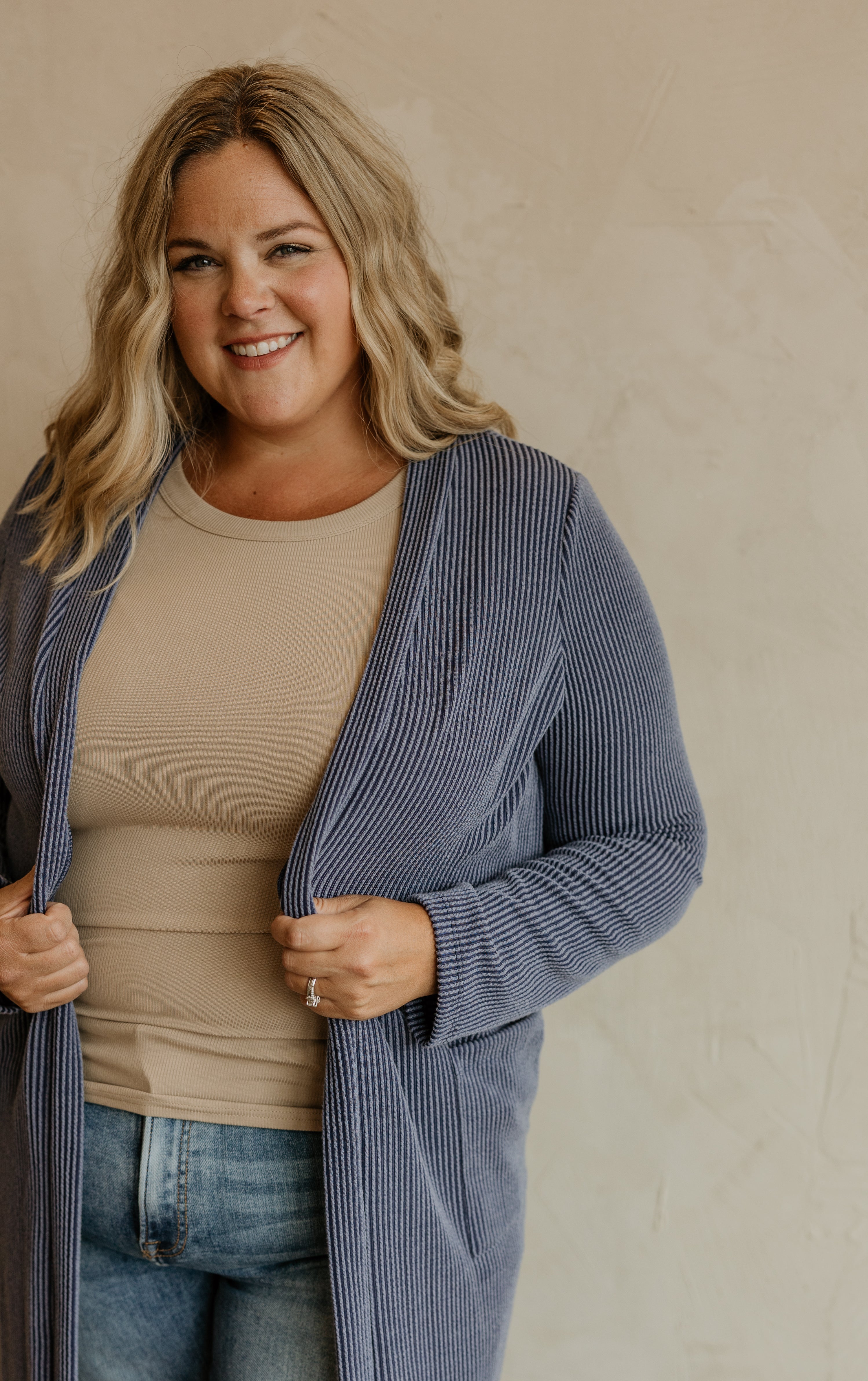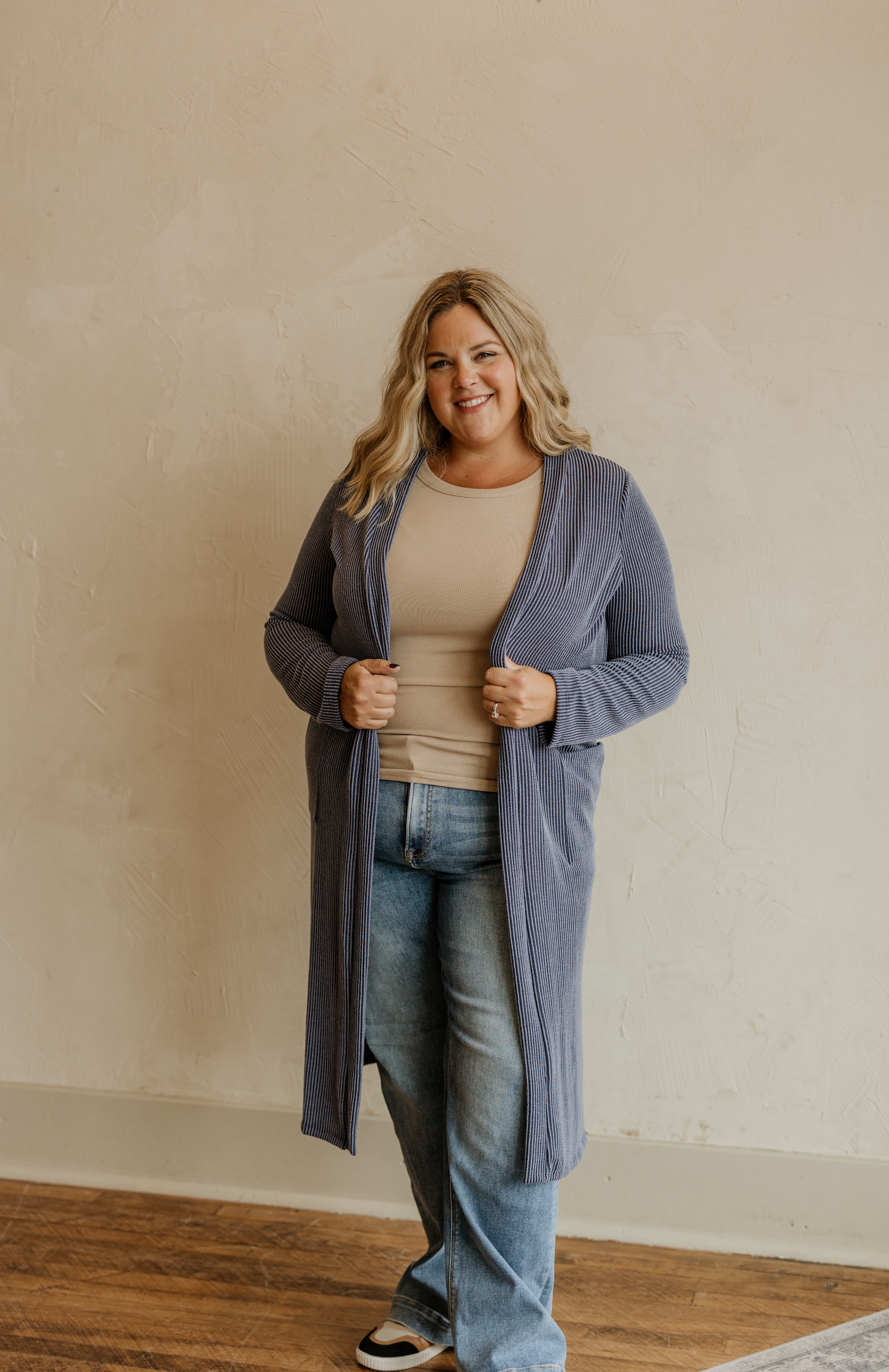 MARLO REG/CURVY RIBBED MAXI CARDIGAN