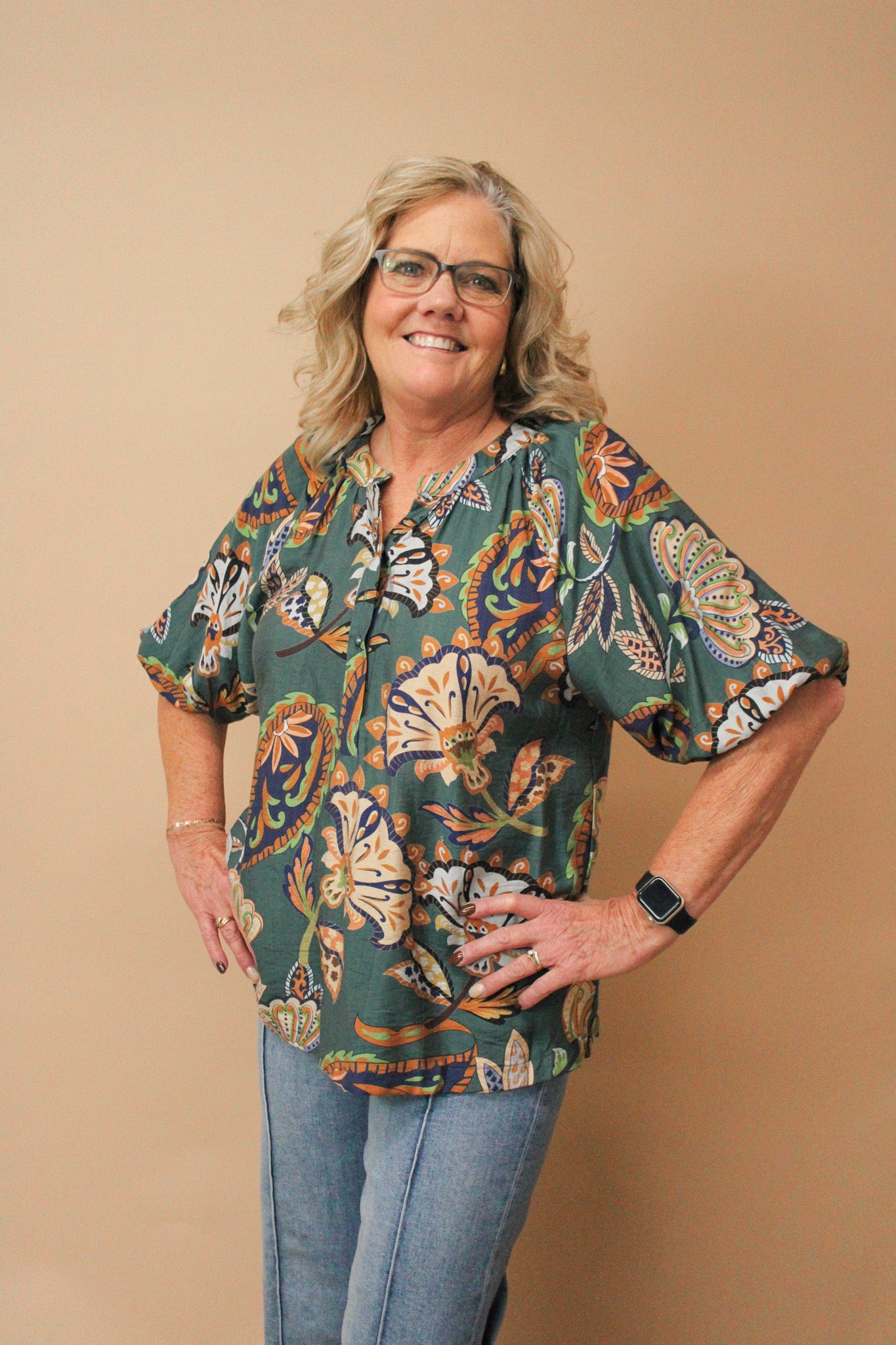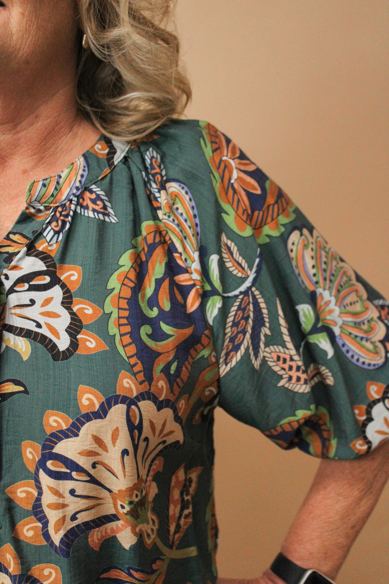 PAISLEY REG/CURVY PUFF SLEEVE BLOUSE