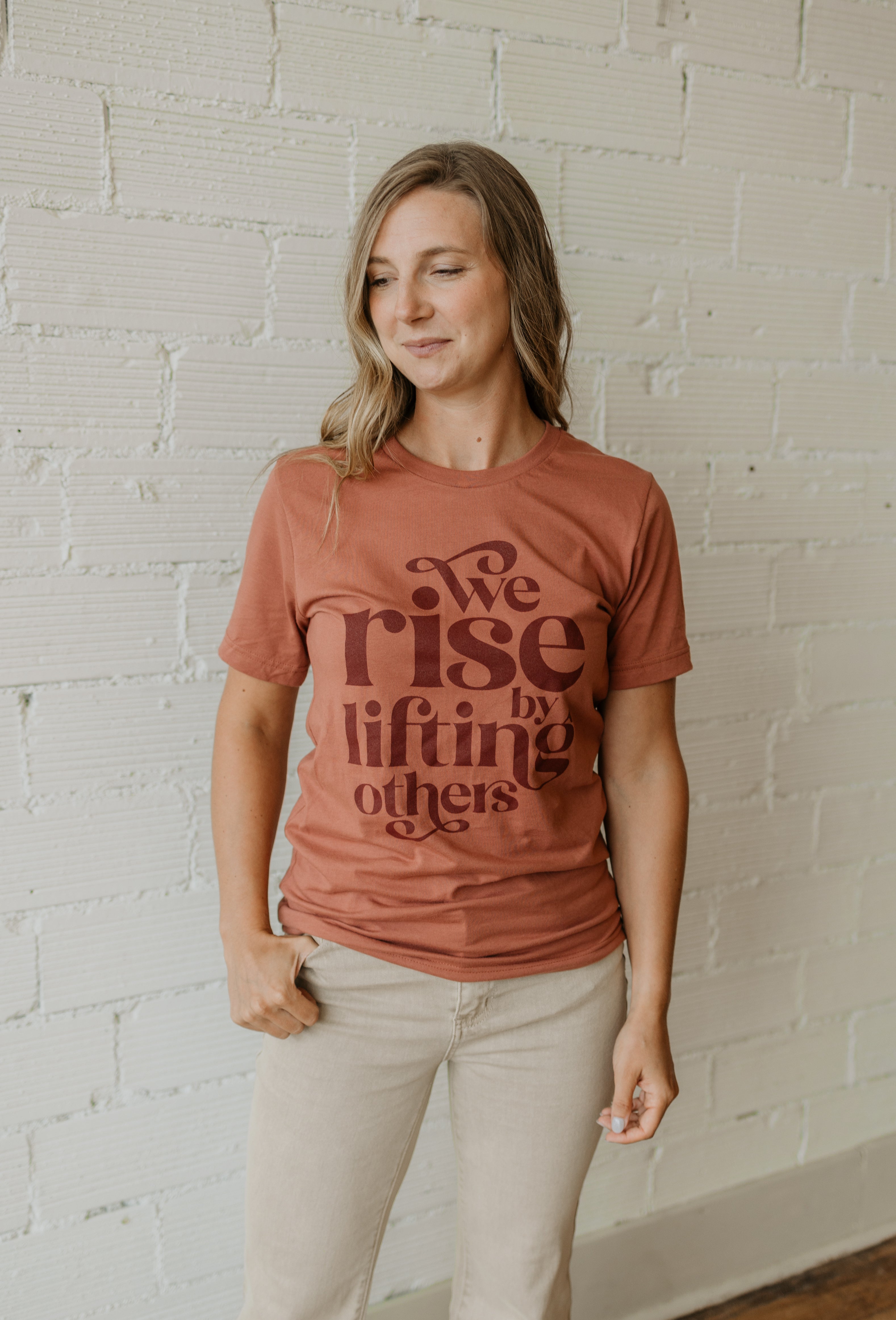 WE RISE BY LIFTING OTHERS REG/CURVY GRAPHIC TEE